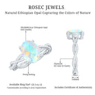 Ethiopian rainbow opal is valued for its dynamic display of color that can shift under different lighting. Each gemstone carries unique patterns and flashes, making every ring one of a kind. For engagement wear, careful handling and periodic inspection of the setting are recommended to help maintain the stone’s appearance over time.