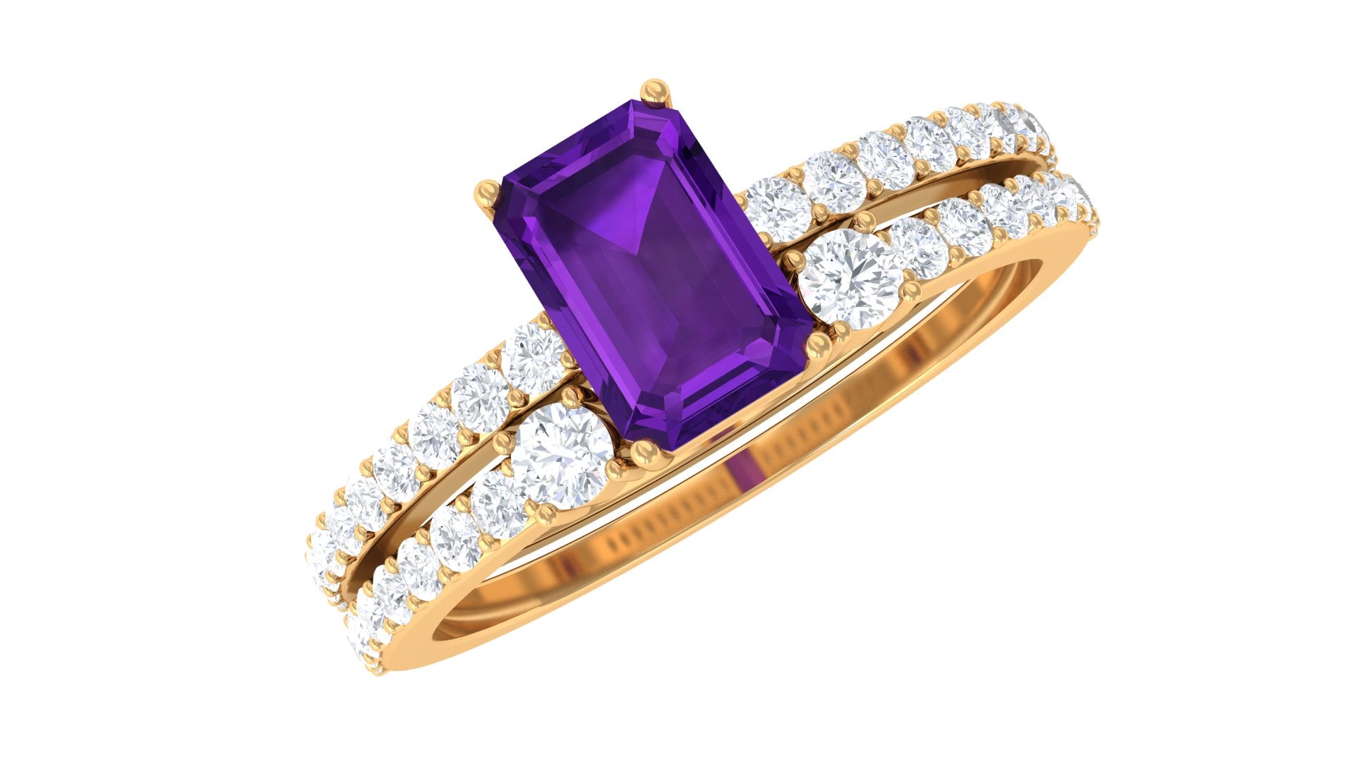 A captivating union of elegance and radiance, this Solitaire Ring Set is adorned with Amethyst complemented by the brilliance of Diamond gemstones.