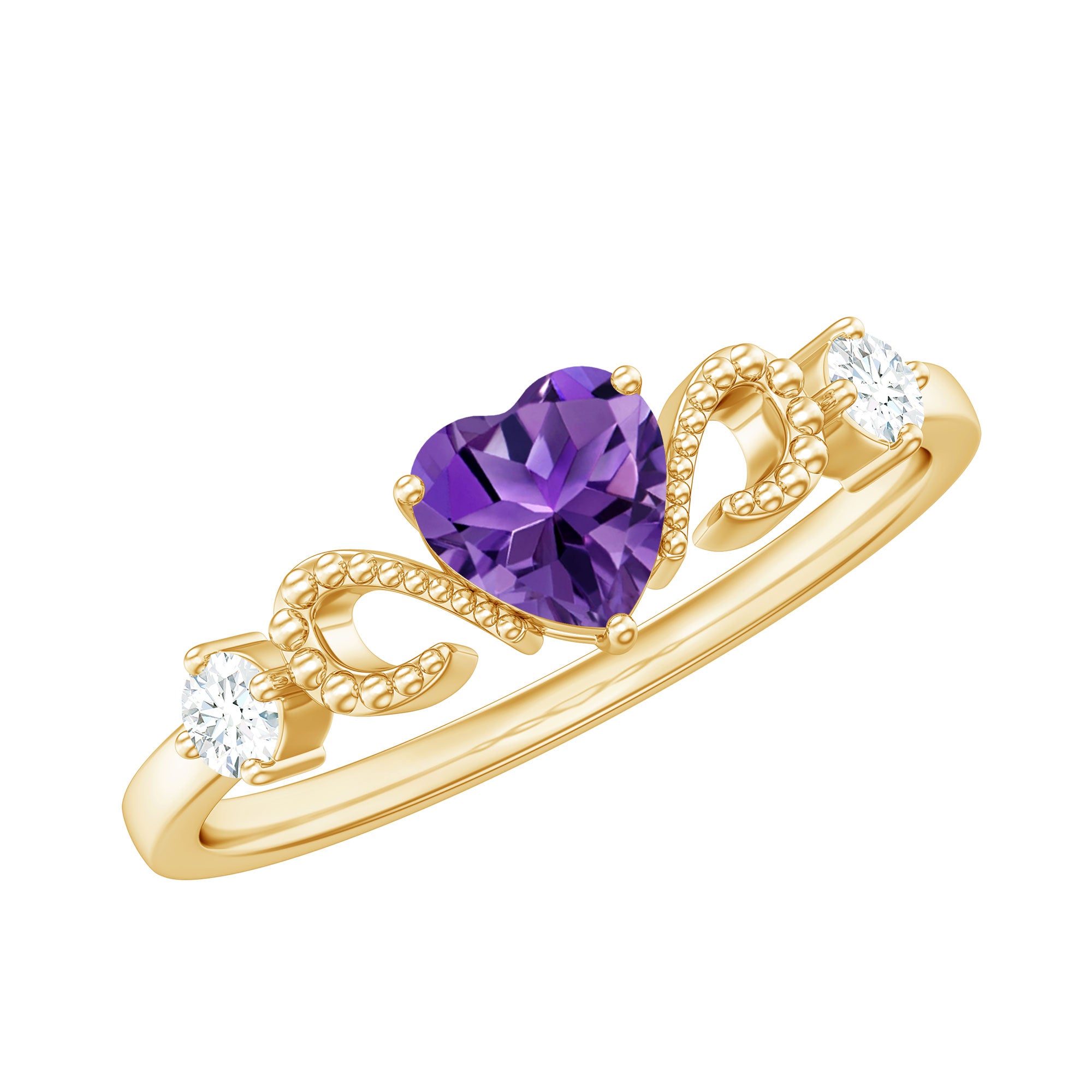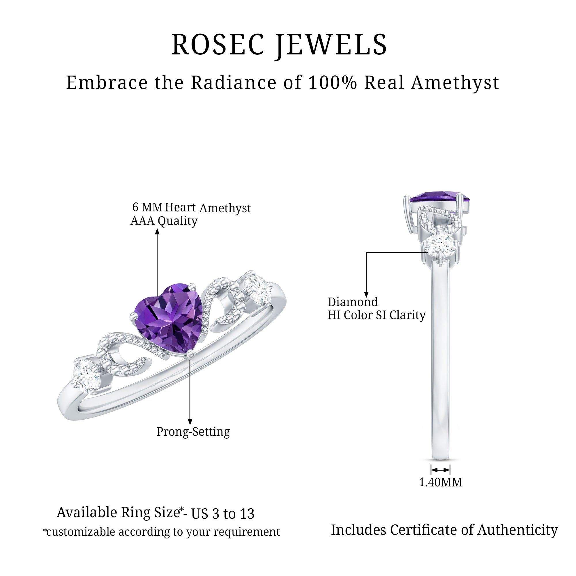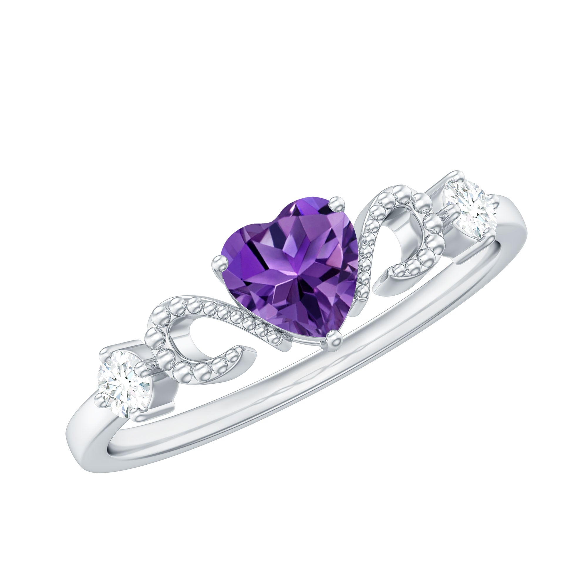 Give this astonishing Heart Promise Ring to your special person. Embellished with an elegant Heart Shaped Amethyst secured in Prong Setting while dainty Round Diamond studded on the shank. Let your partner fall in love with you a little more by gifting her this mesmerizing Heart Amethyst Ring as a Birthday or Anniversary Gift for Her!