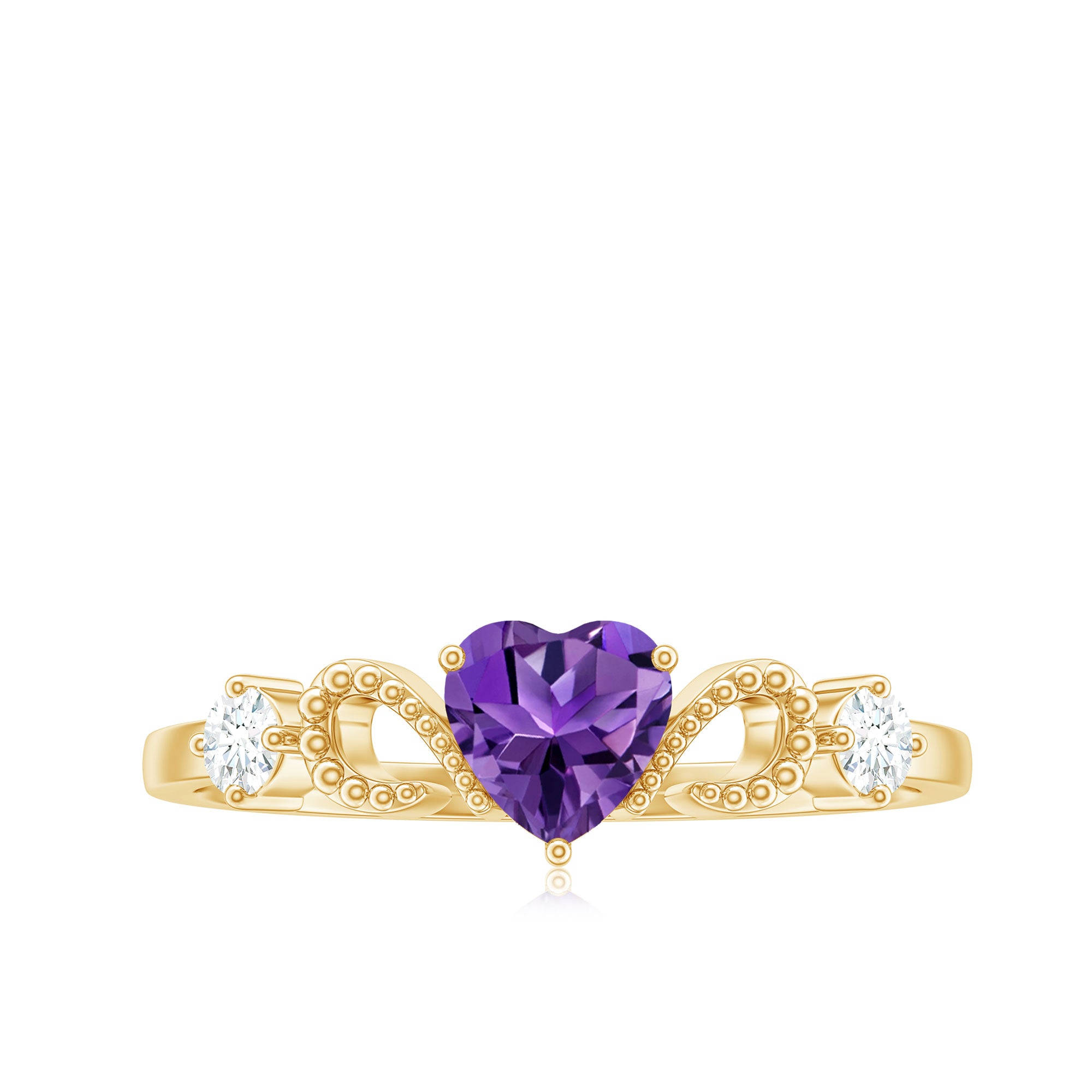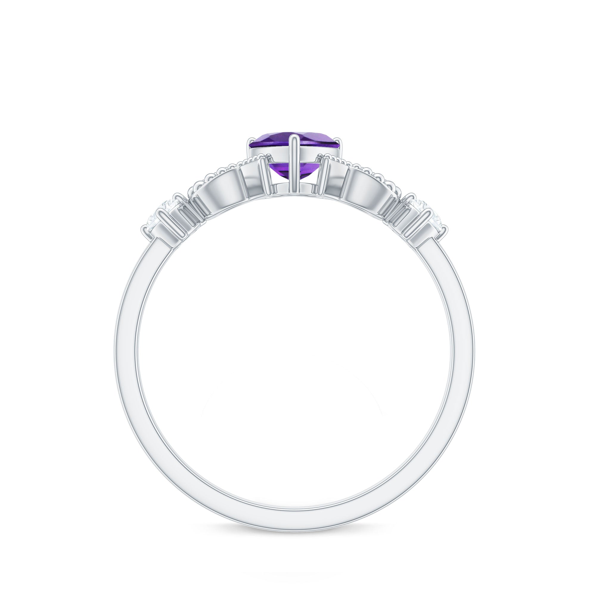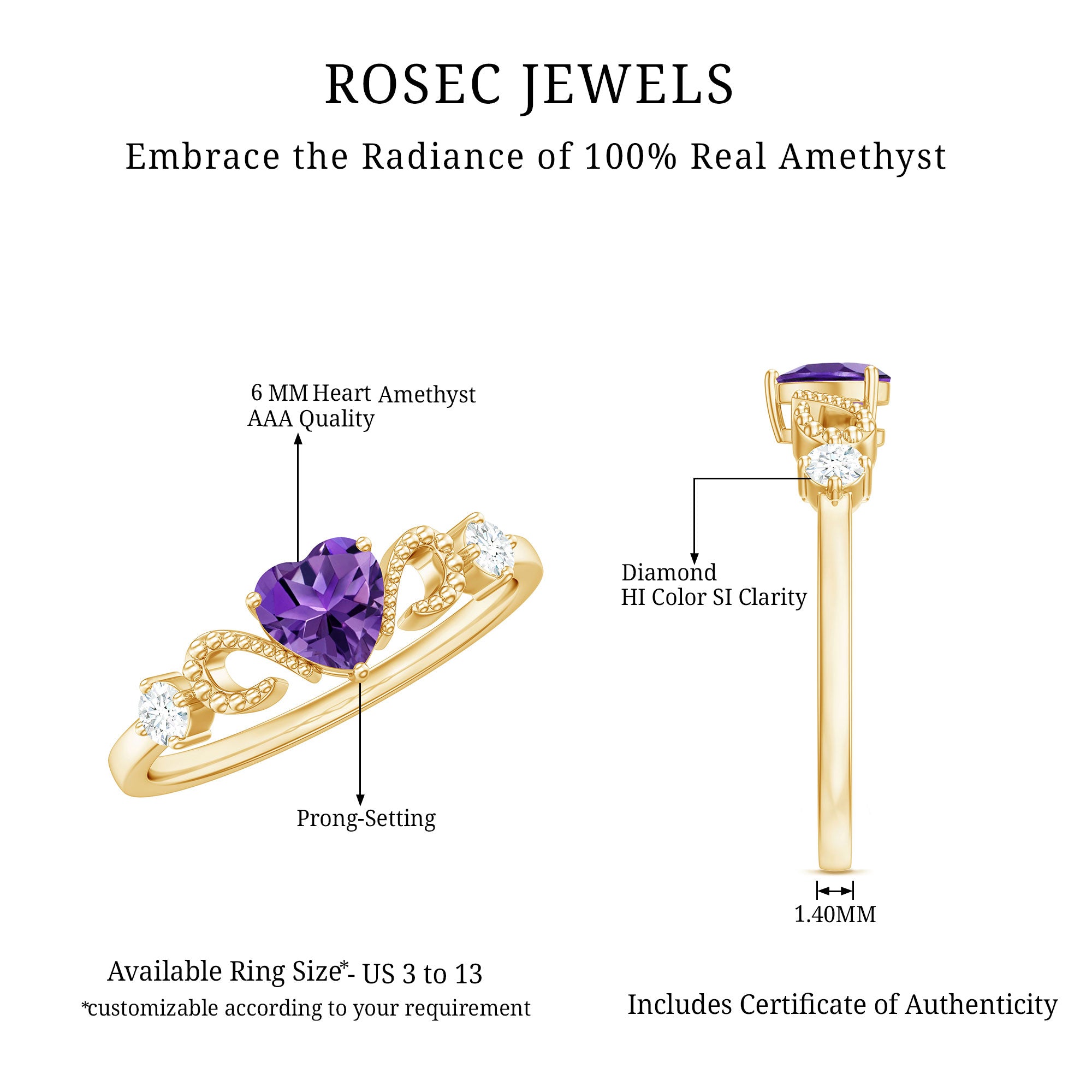 Give this astonishing Heart Promise Ring to your special person. Embellished with an elegant Heart Shaped Amethyst secured in Prong Setting while dainty Round Diamond studded on the shank. Let your partner fall in love with you a little more by gifting her this mesmerizing Heart Amethyst Ring as a Birthday or Anniversary Gift for Her!