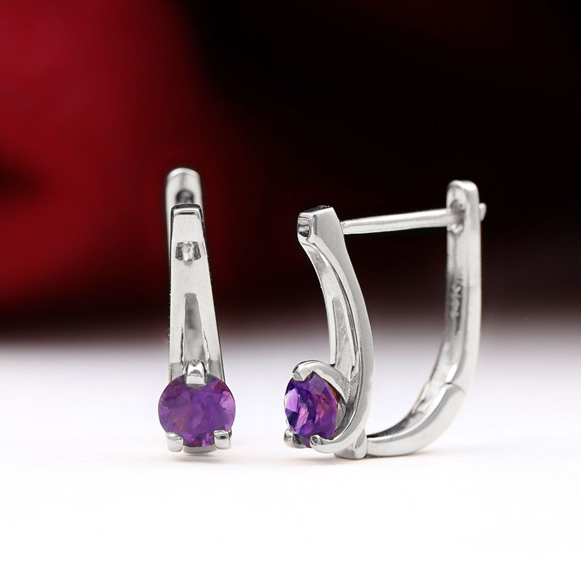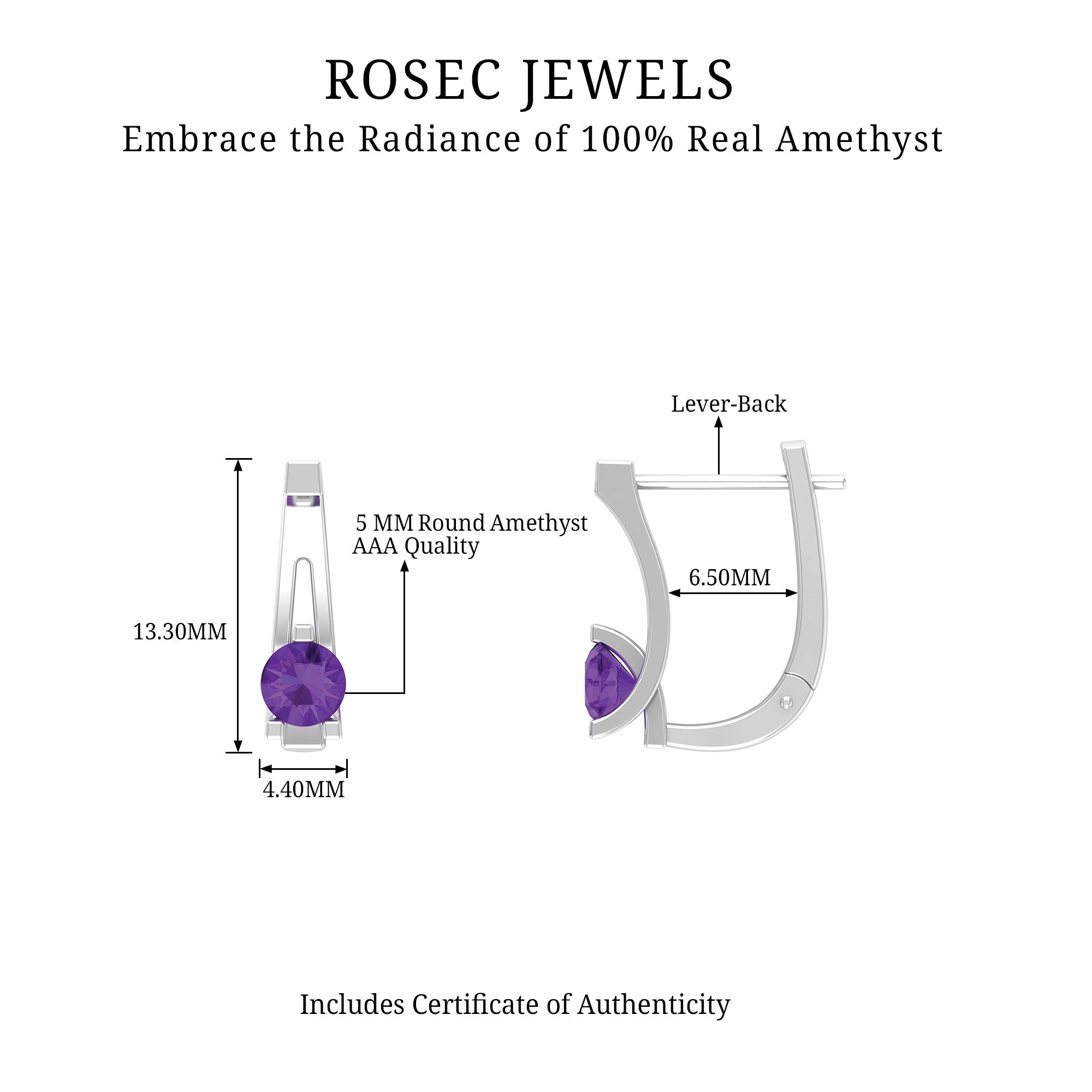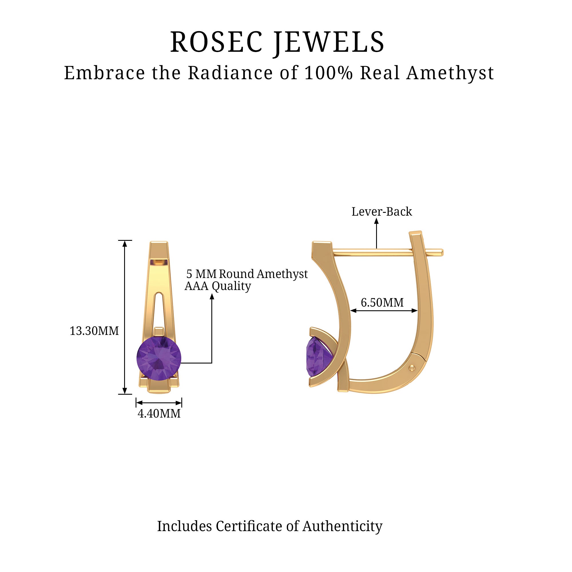 Our Amethyst Lever Back Earrings will be a lovely addition to your evening looks. A pair designed to be worn for a lifetime, adorned with scintillating Round Shape Amethyst secured by 3 Prong Setting. The Lever Back Closure will keep your Amethyst Earrings secured in their place. Get these mesmerizing Solitaire Earrings as an anniversary gift for her and get a precious smile on her face.