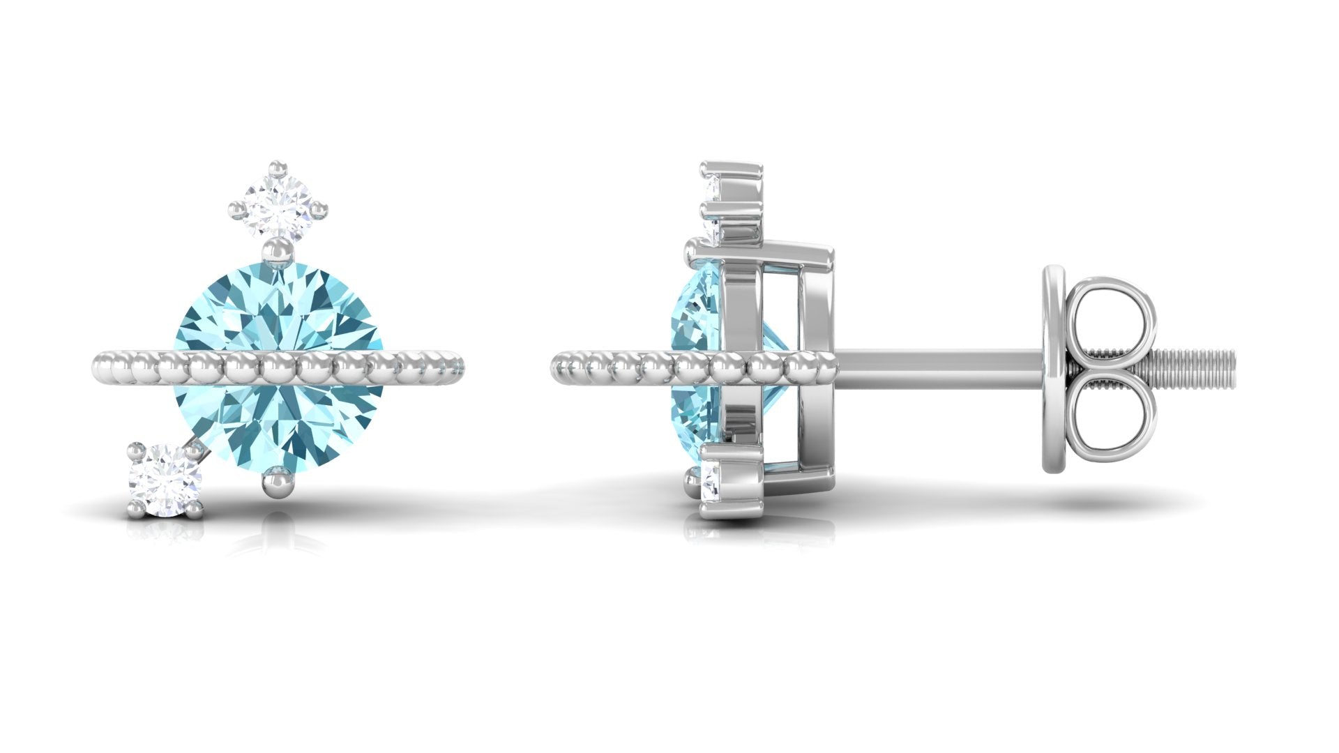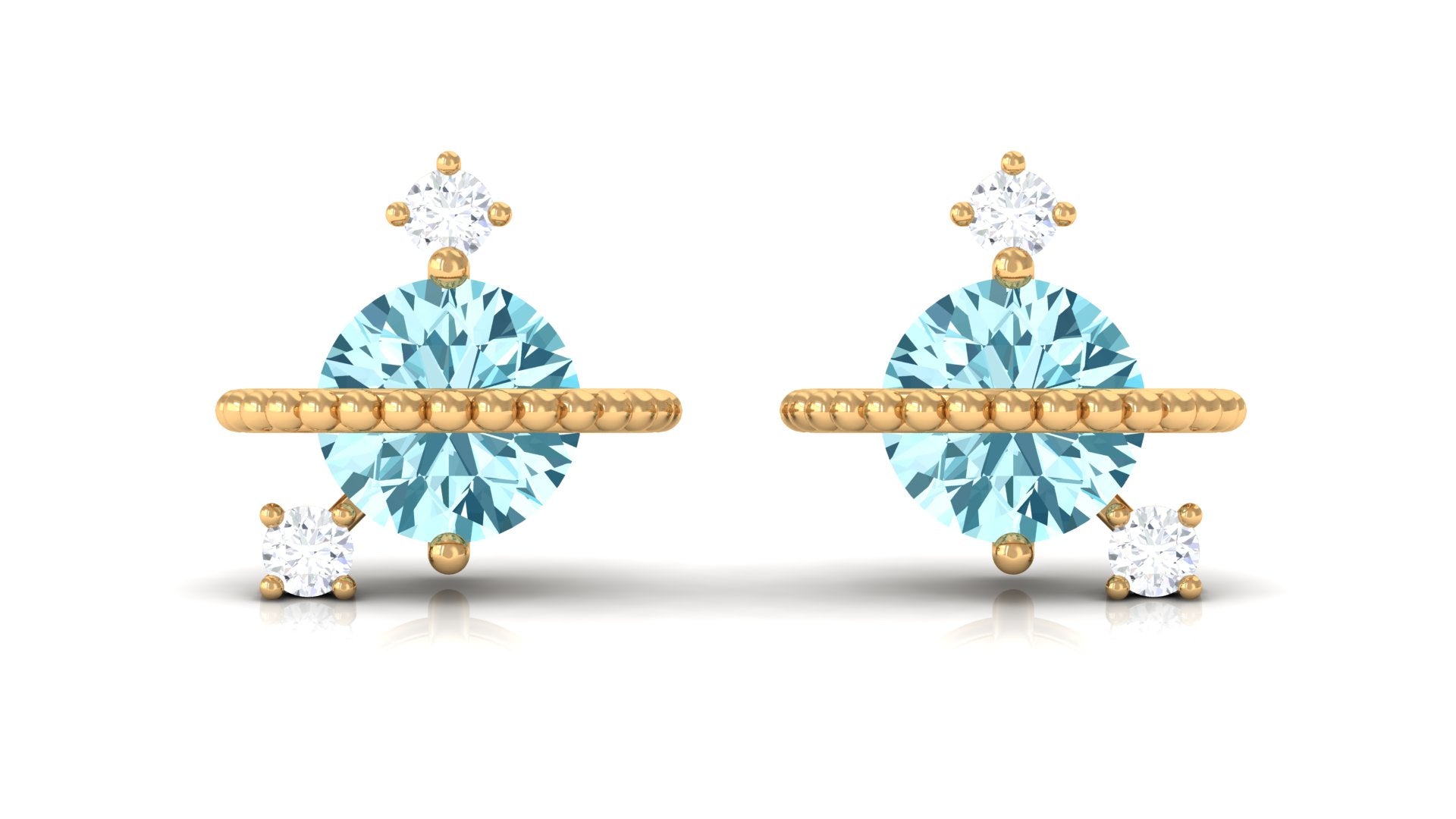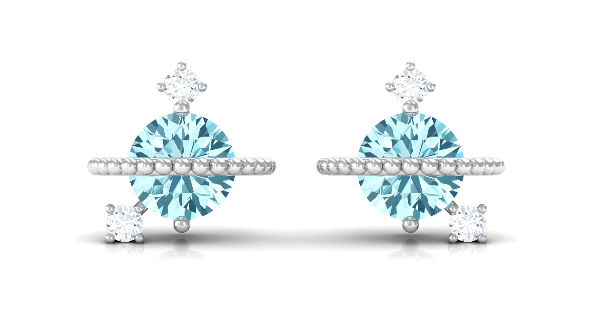 Feel even more glamorous and flex your style with these Celestial Stud earrings, encased with Round Shape Aquamarine gemstone and Diamond.