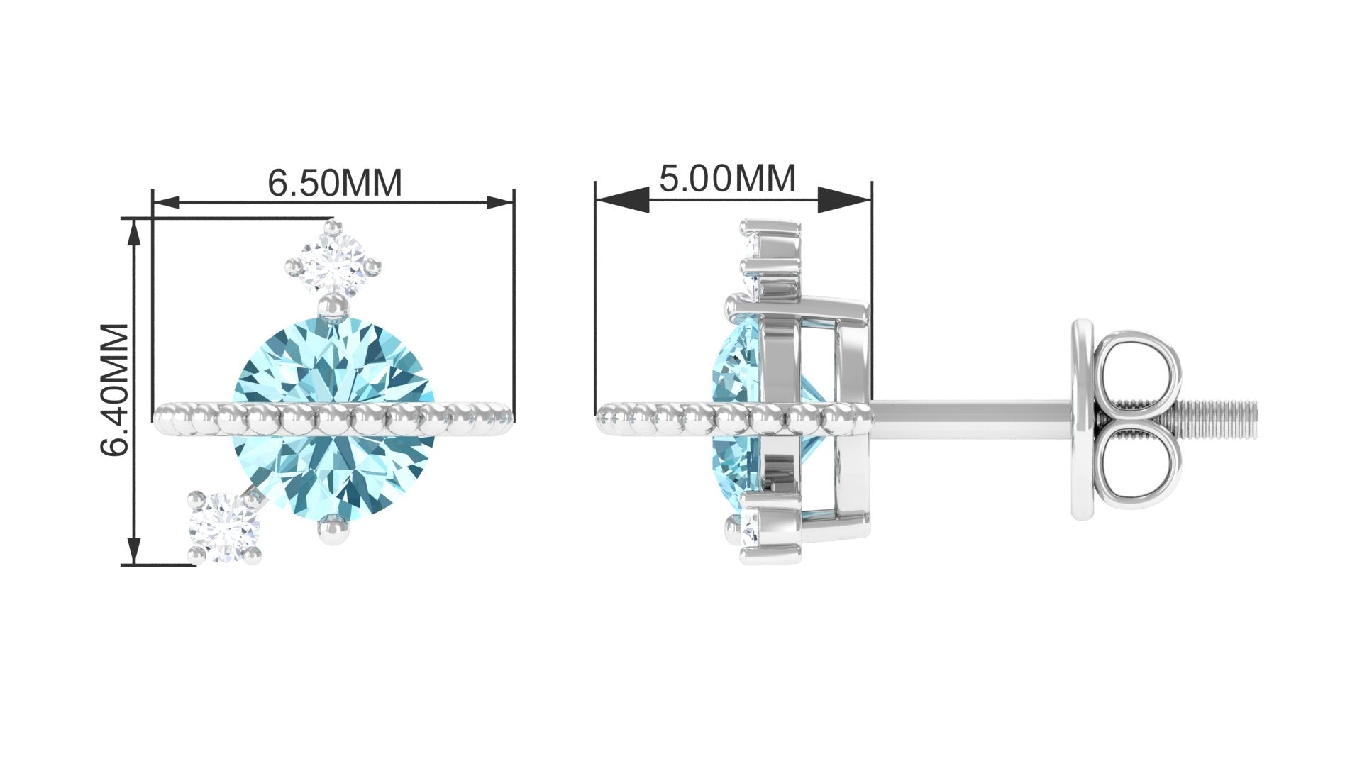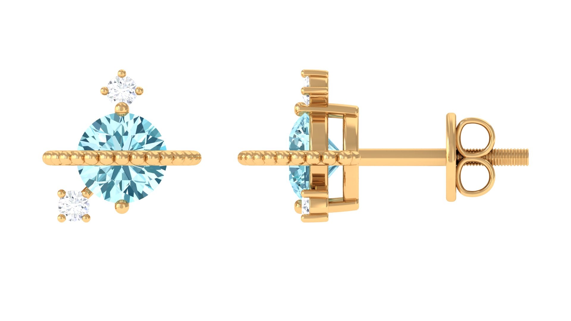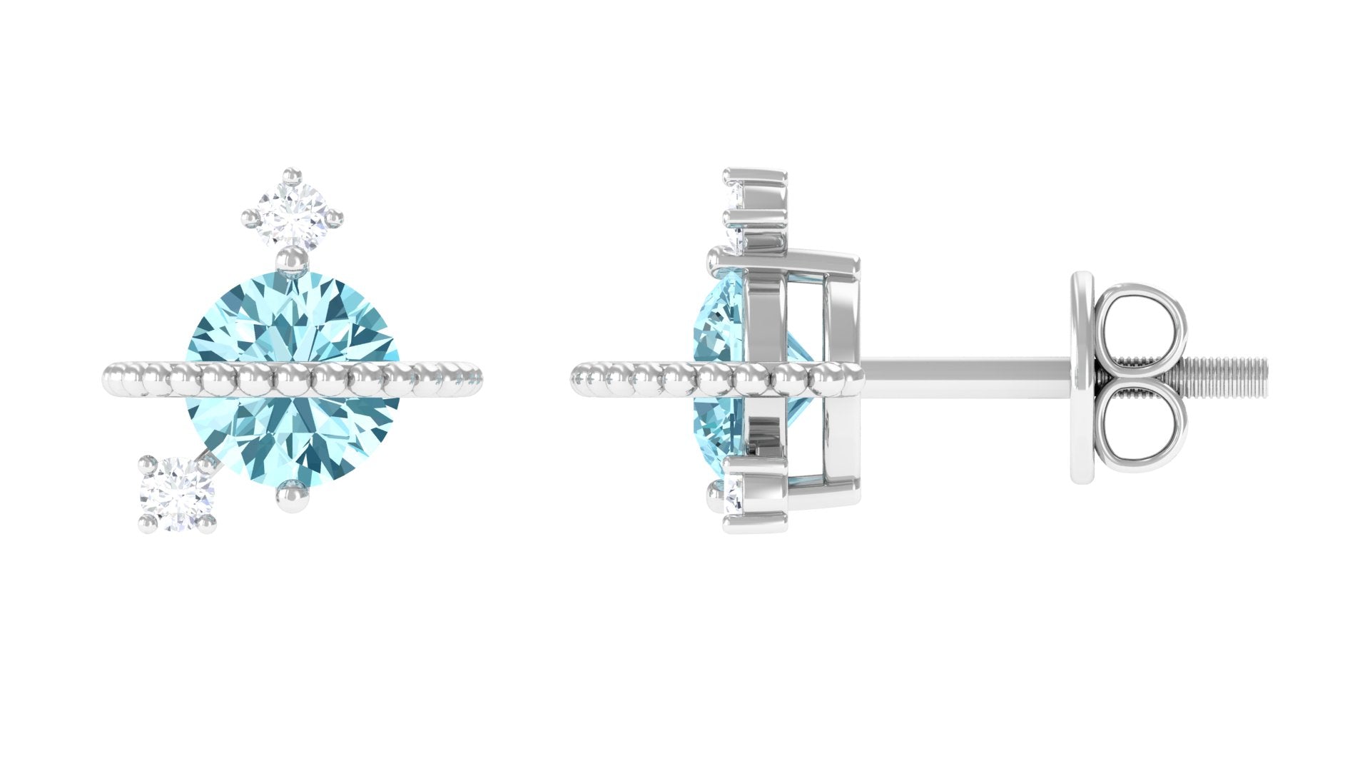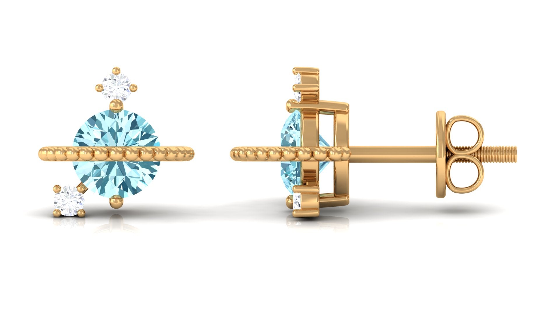 Feel even more glamorous and flex your style with these Celestial Stud earrings, encased with Round Shape Aquamarine gemstone and Diamond.