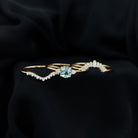 Real Aquamarine Designer Trio Wedding Ring Set with Diamond