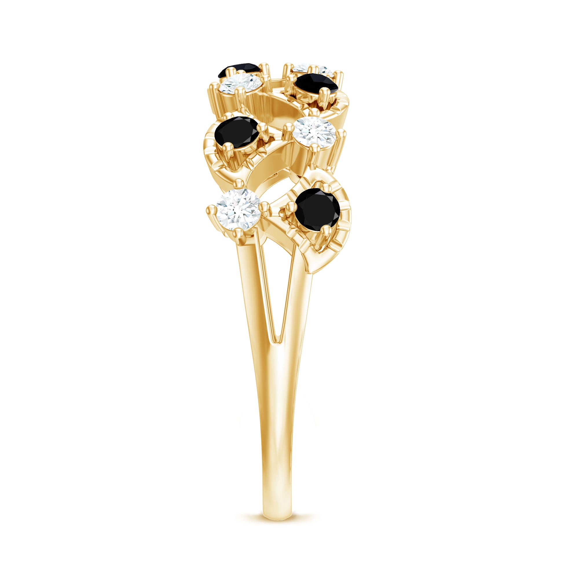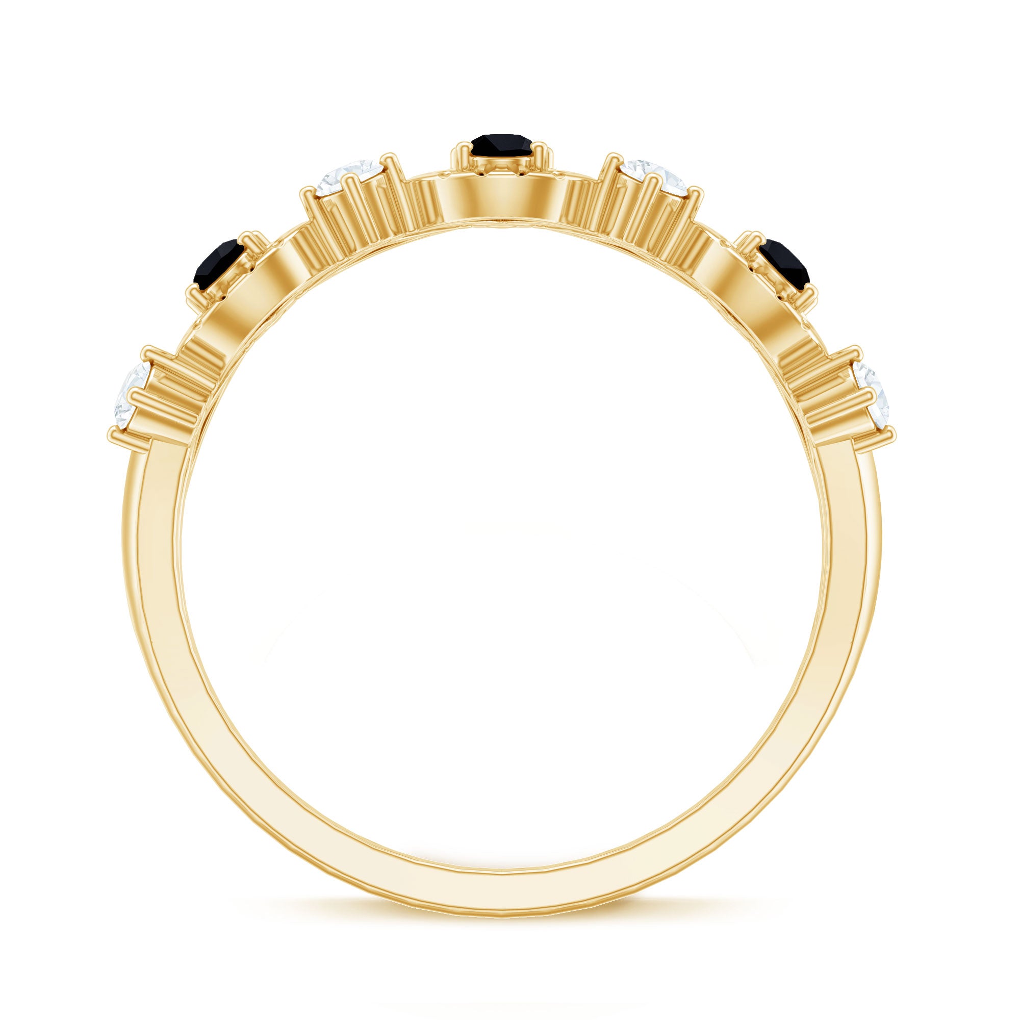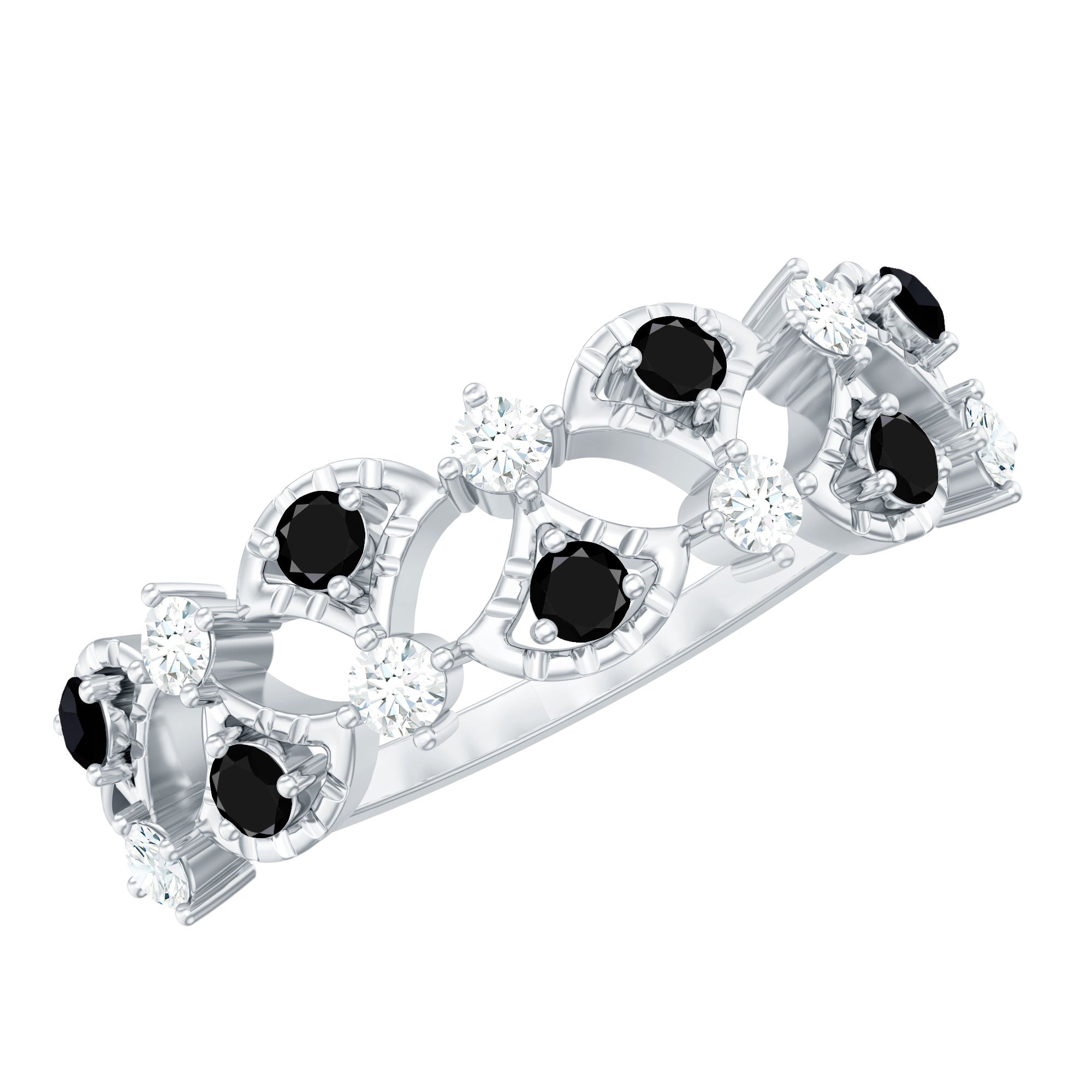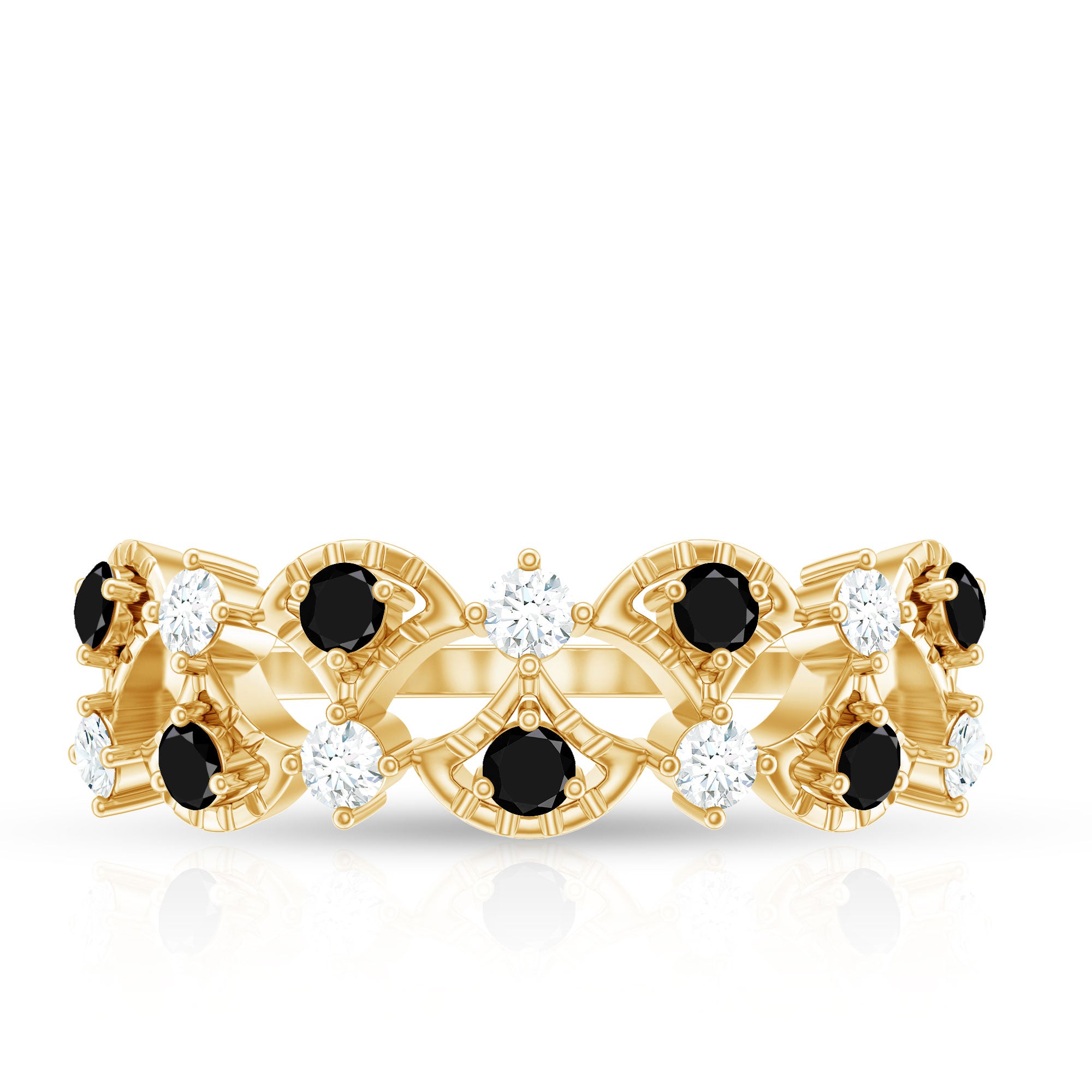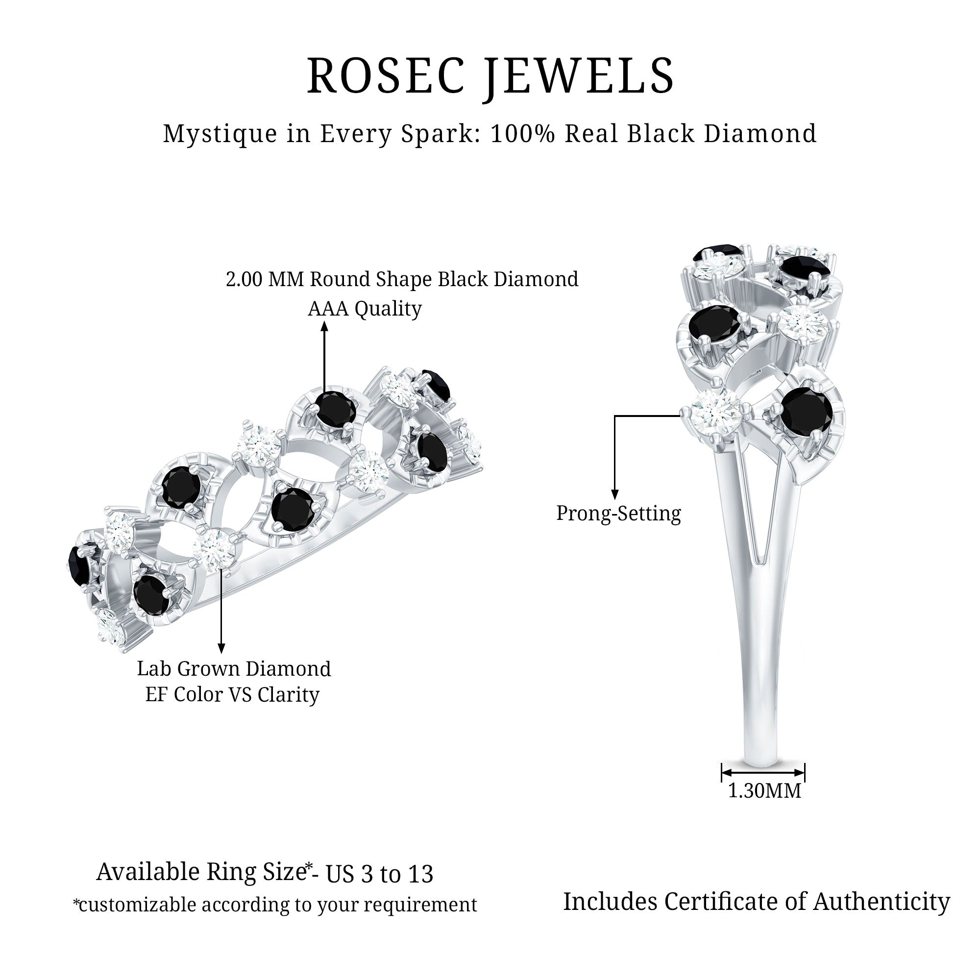 Celebrate love, commitment, and timeless beauty with this Black Diamond Wedding Band, a truly unique piece that effortlessly blends elegance with bold charm. Whether you are marking a milestone anniversary or presenting it as a birthday gift, this Half Eternity Band brings a fresh twist to traditional wedding bands. It features a striking combination of Round Cut Black Diamonds and Lab Grown White Diamonds, perfectly placed in an alternating pattern that creates a stunning contrast. The diamonds are prong set and securely nestled within intricate textured frames that give the design a luxurious and vintage inspired feel. The Black and White Diamond Band comes with a certificate of authenticity and is packaged in a premium quality box for an unforgettable experience. It is available in a range of ring sizes for a comfortable and custom fit. This Designer Wedding Band is not only a stunning symbol of eternal love, but also makes a perfect anniversary ring or stackable fashion piece for daily wear. Bold, meaningful, and beautifully detailed, it is a band that tells your love story in style.