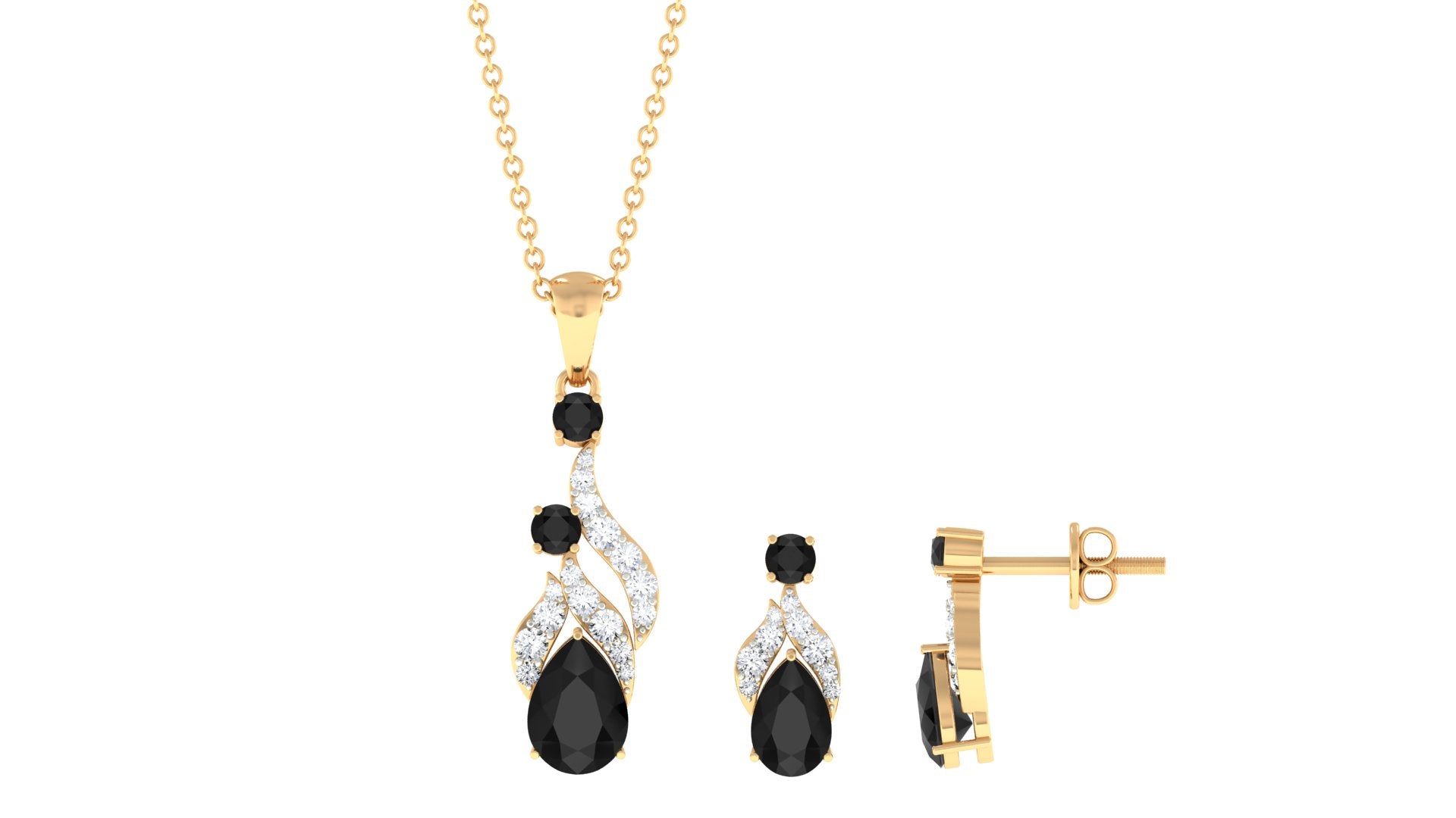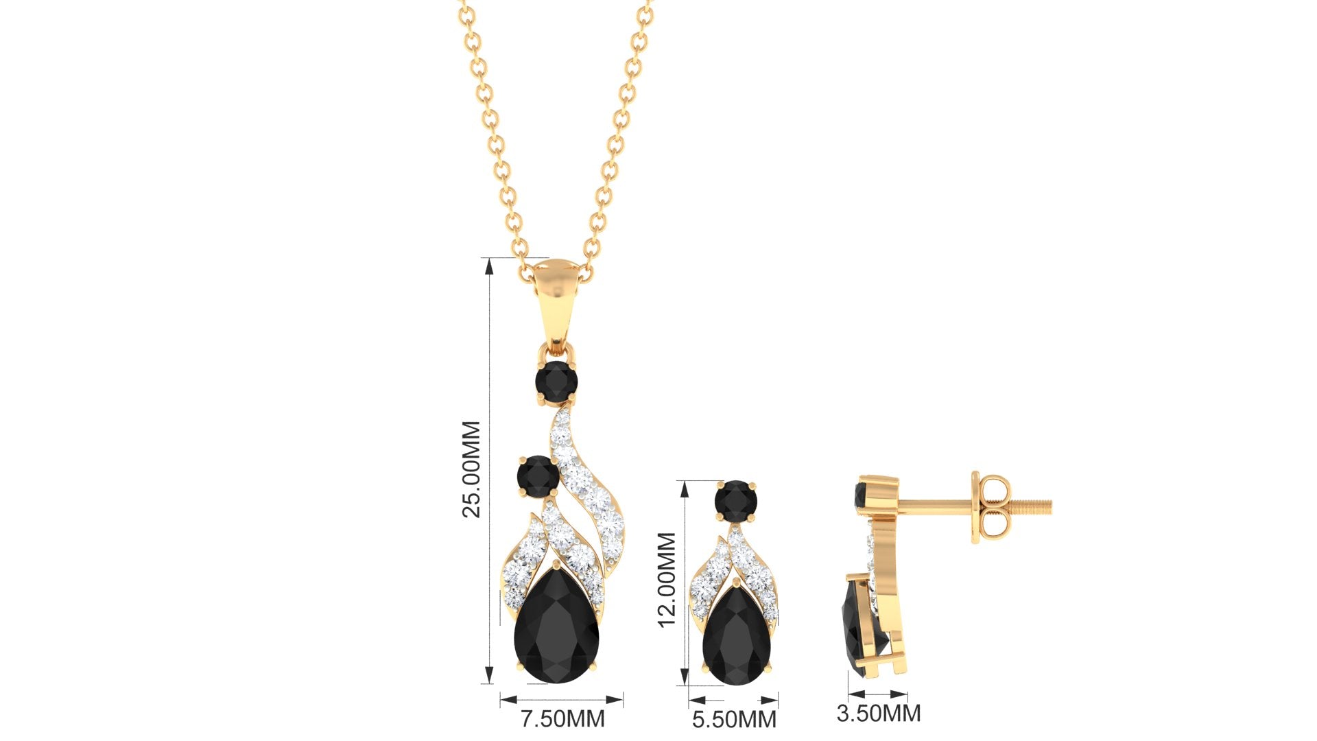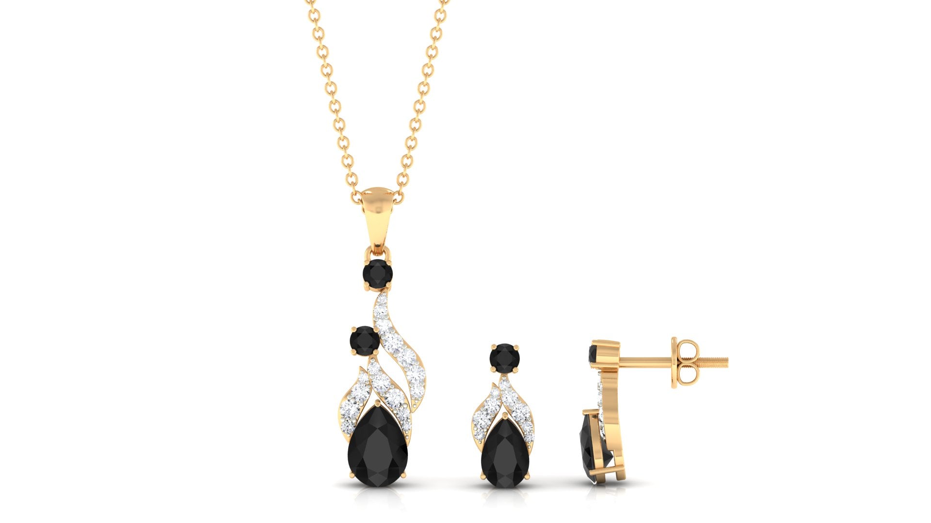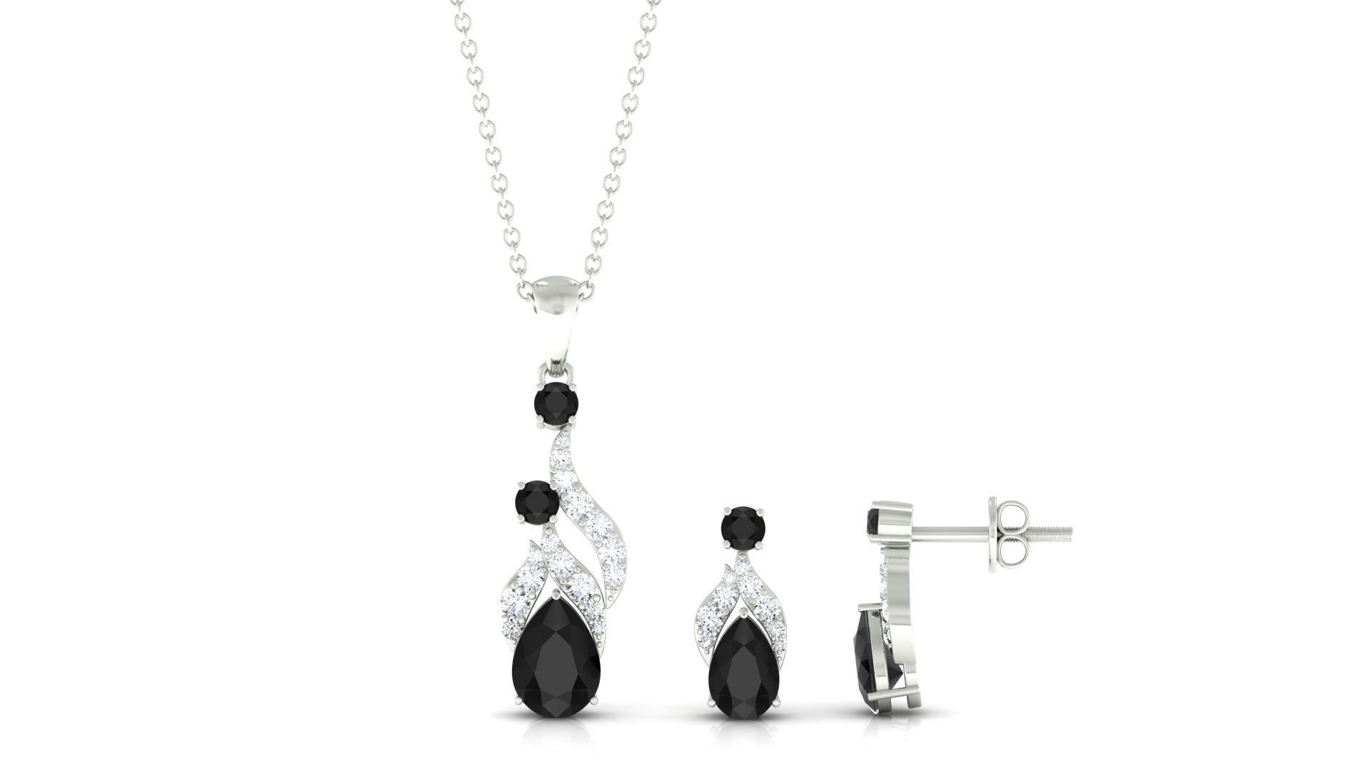 Get this Bridal Jewelry Set for your beloved one. Showcasing Pear and Round Shape Black Onyx secured in Prong Setting while dainty Round Shape Diamonds studded in Pave Setting. Flaunt this Black Onyx Jewelry Set with your special attire to stand out from the crowd and make everyone a fan of your style.