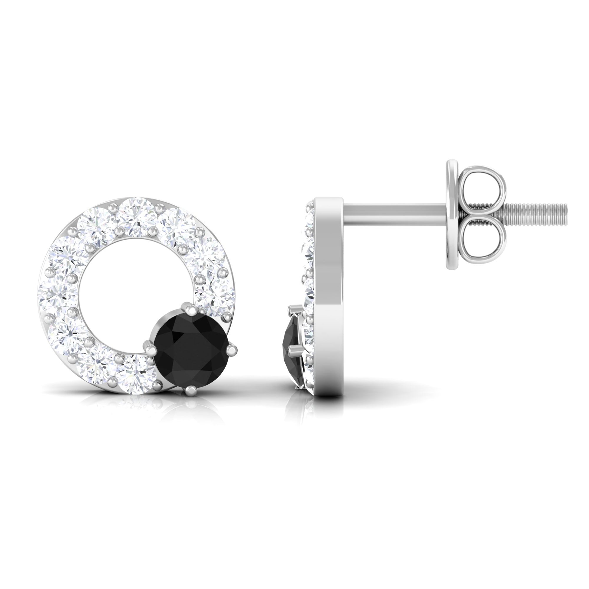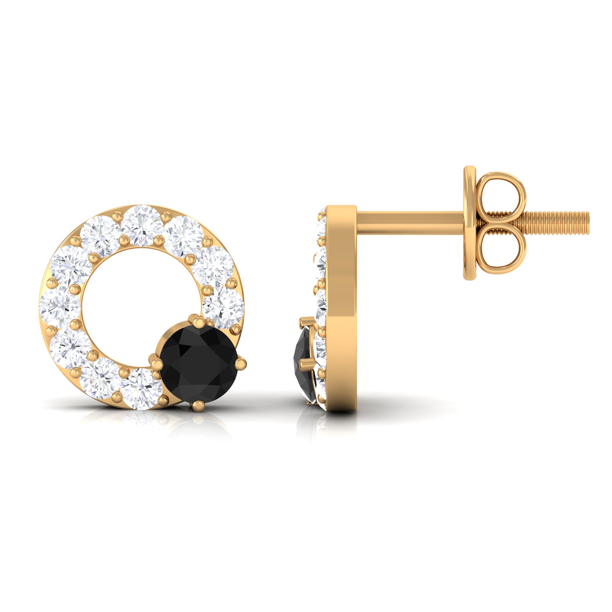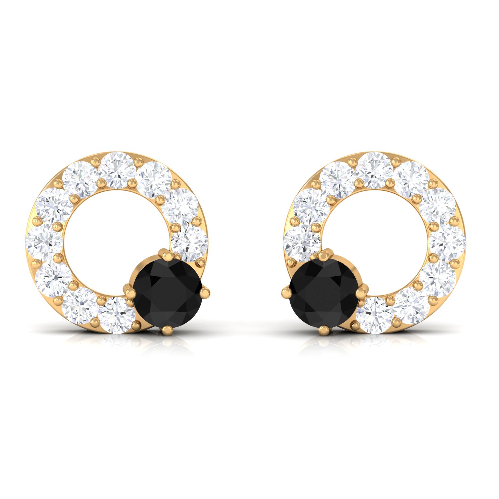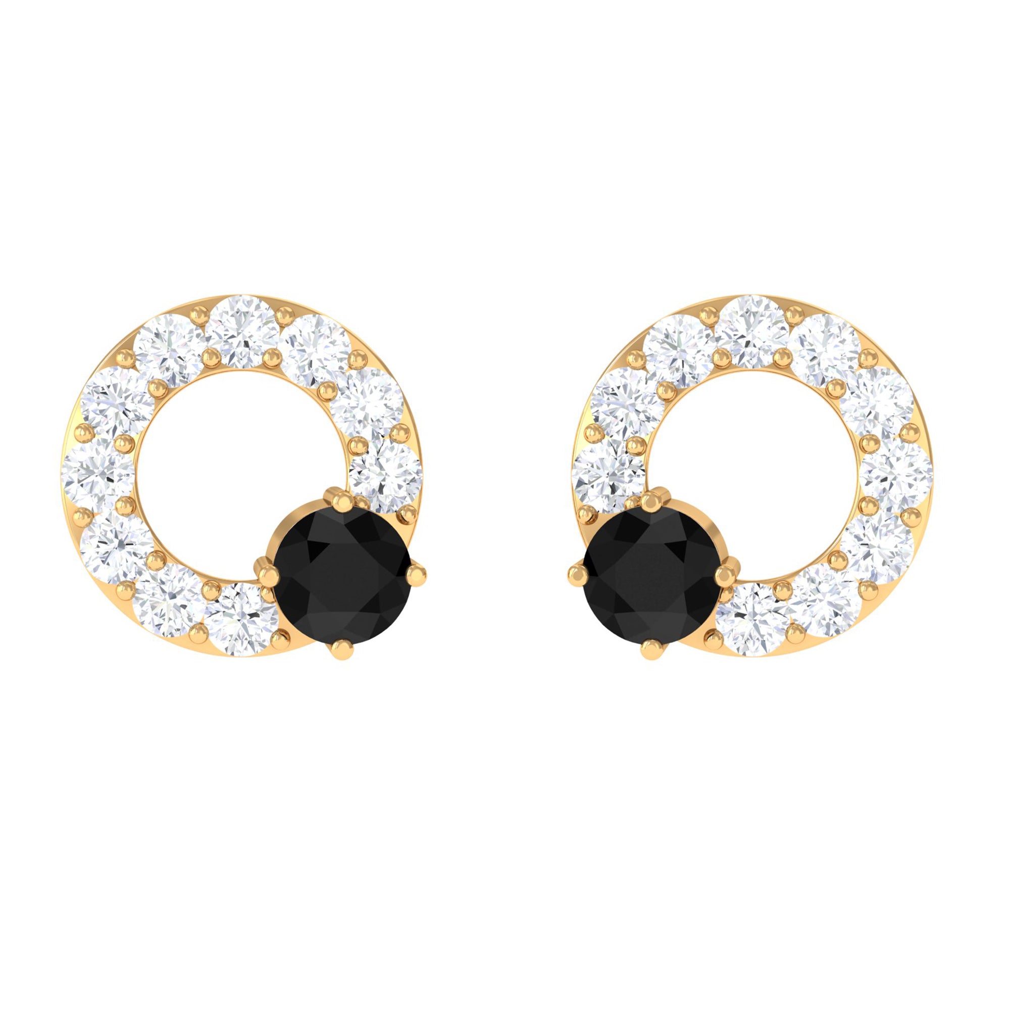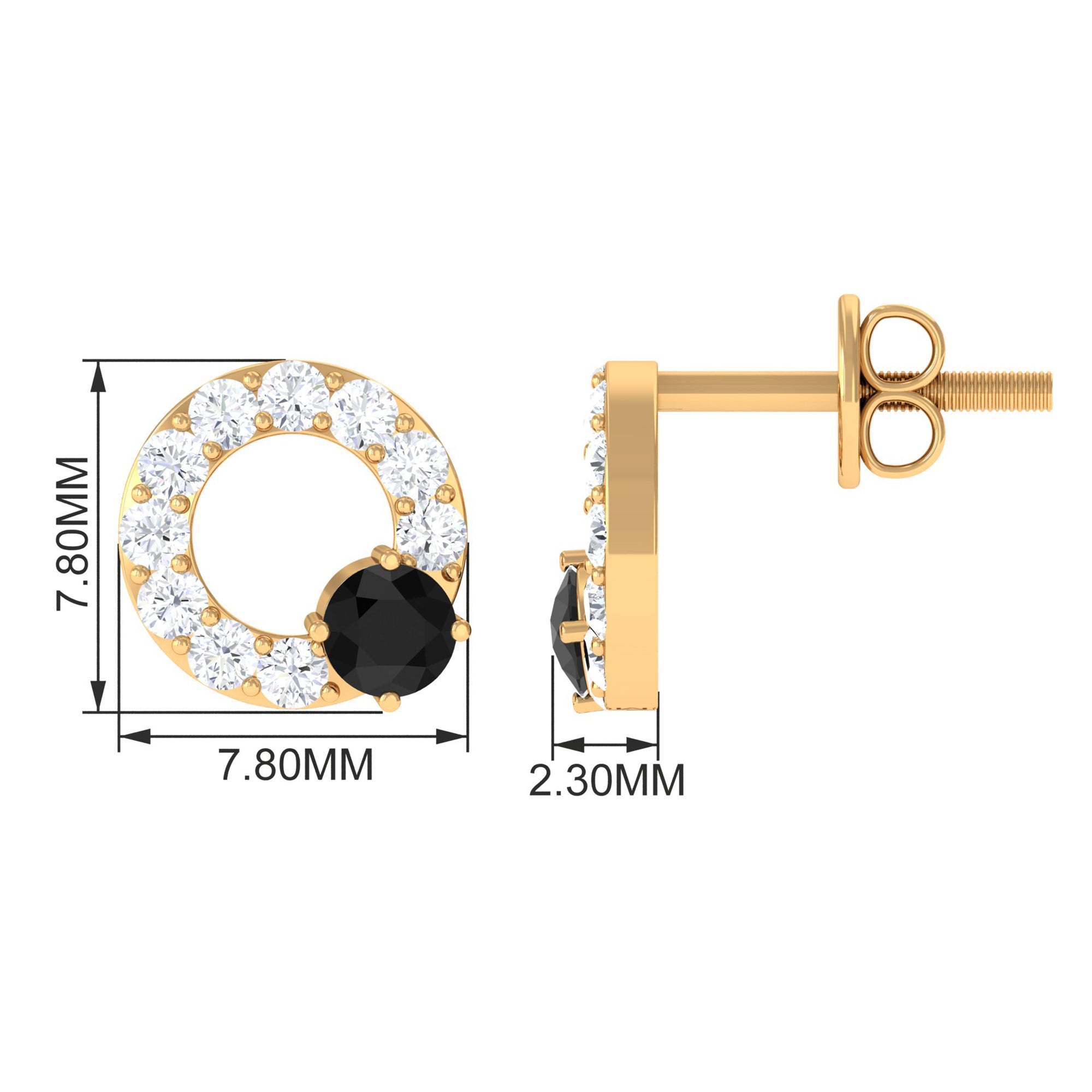 Capture monochrome charm with these Circle Stud Earrings, a modern twist on timeless elegance. Each Earring features a 3 mm Round Shape Black Onyx delicately placed on one side of an open circle, surrounded by sparkling Diamond stones that add a subtle yet striking brilliance. The contrast between the deep, mysterious AAA Quality Black Onyx and the shimmering HI-SI Diamond stones creates a harmonious balance of boldness and sophistication, making them perfect for both everyday wear and special occasions. Crafted with perfection and finished with Secure Screw Back Closure, these Black Onyx Earrings ensure comfort while keeping you stylish all day long. Their minimalist yet eye-catching design allows them to effortlessly complement any outfit, from casual chic to elegant evening looks. Thoughtfully presented in a signature jewelry box, they are ready to gift to someone special or to treat yourself to a standout piece that elevates your jewelry collection. Capturing attention with every glance, these Black Onyx Studs are perfect for the woman who loves jewelry with character.