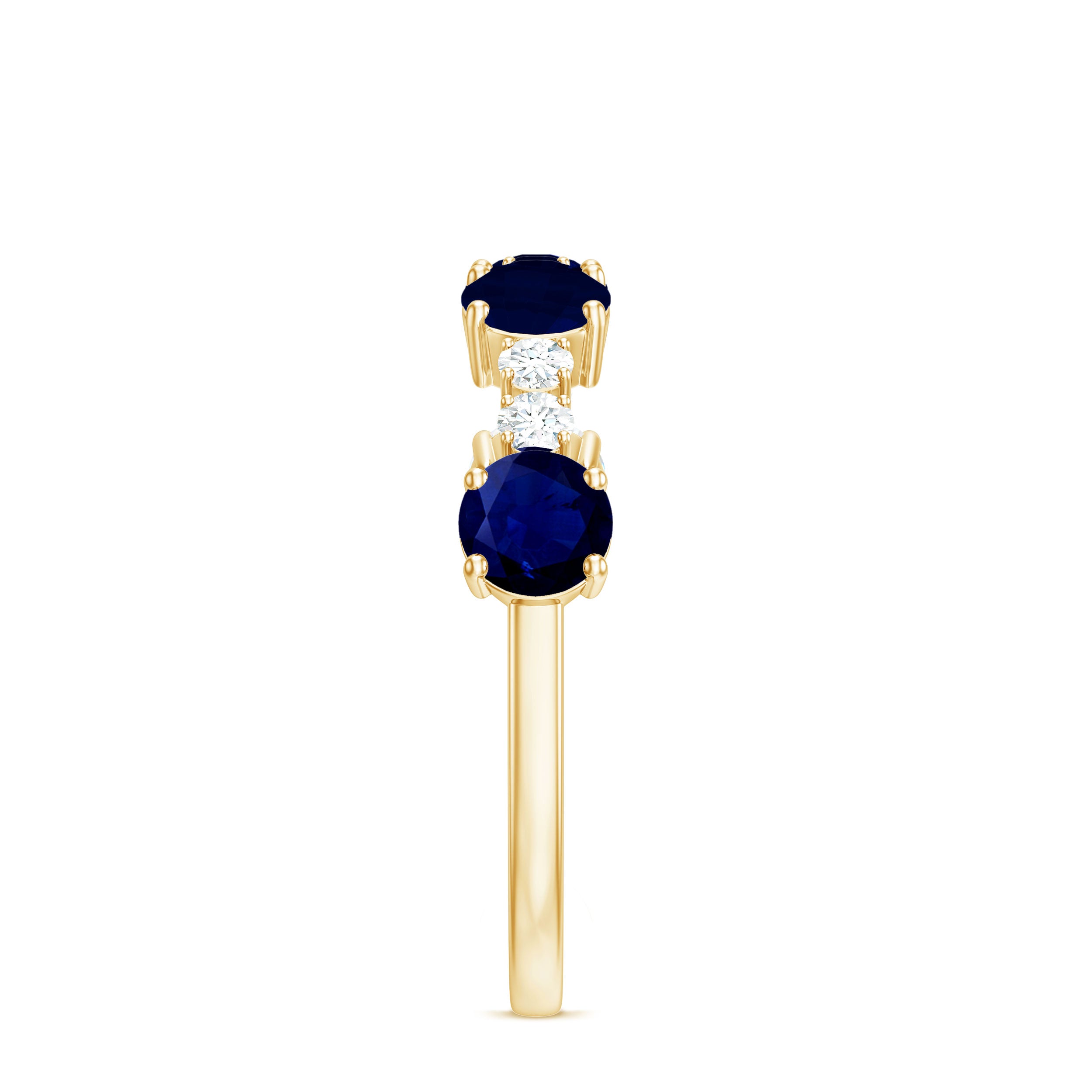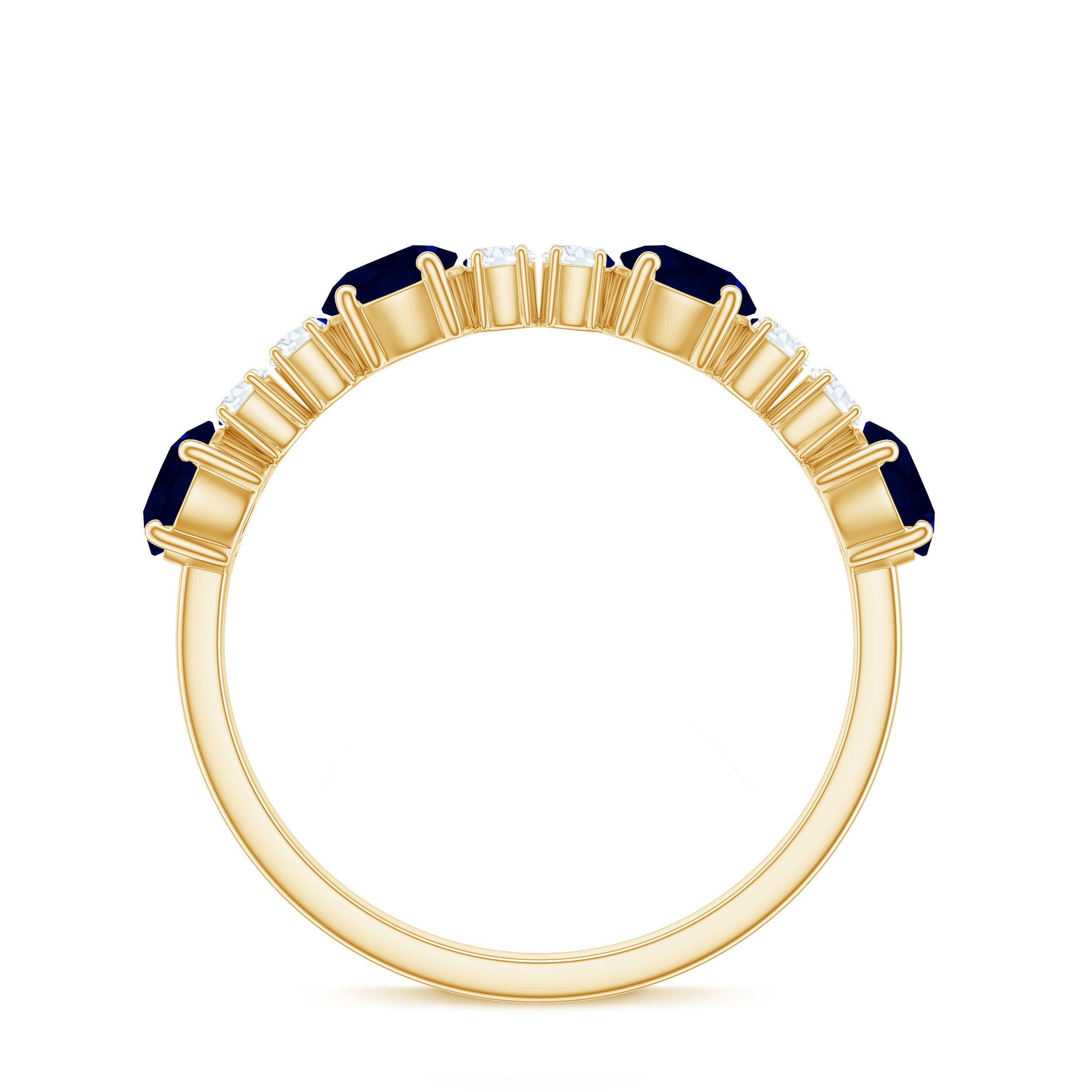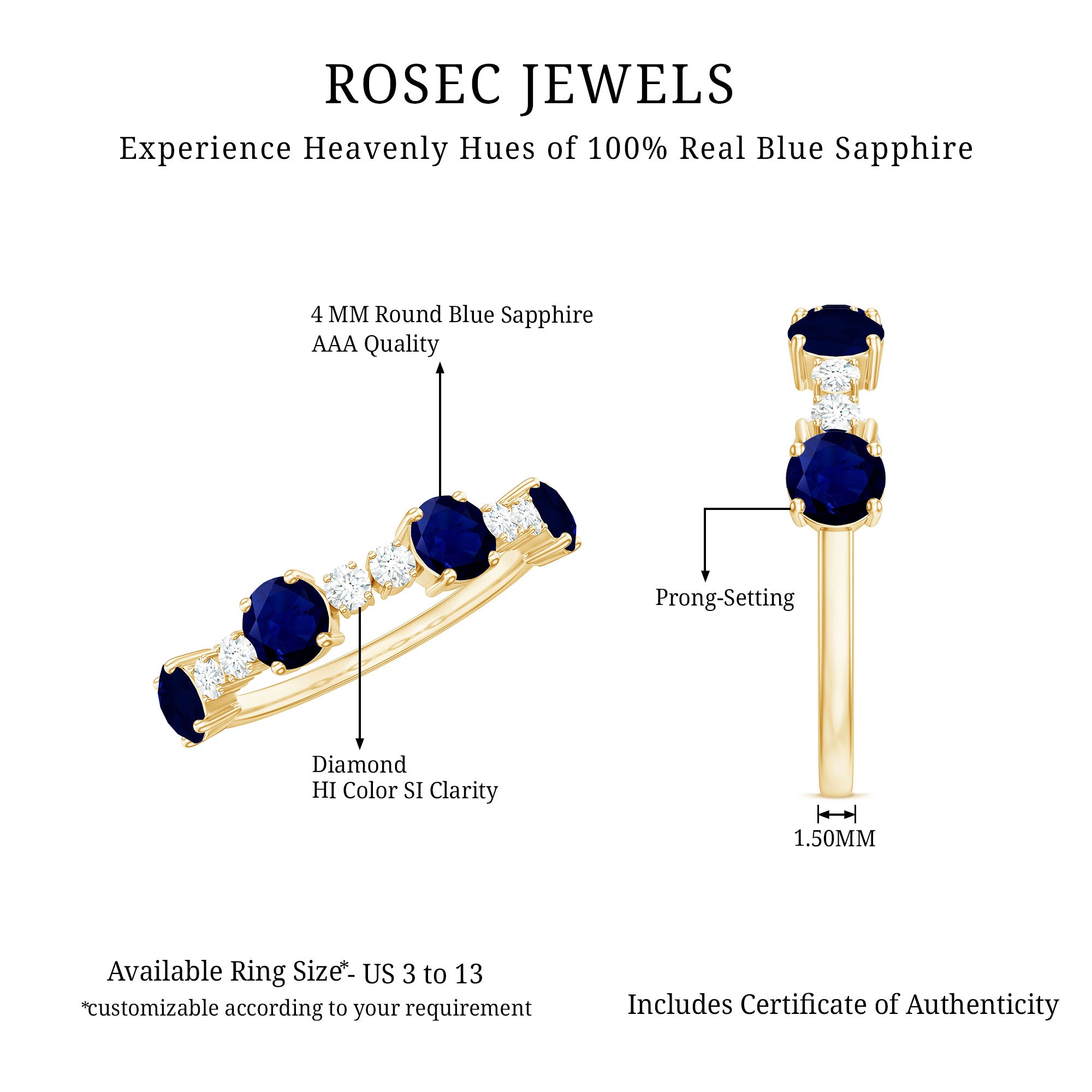 The Round Shape Blue Sapphire in Prong Setting with Diamond on Half Eternity Band is an elegant jewelry. Treat yourself with this Blue Sapphire Band.