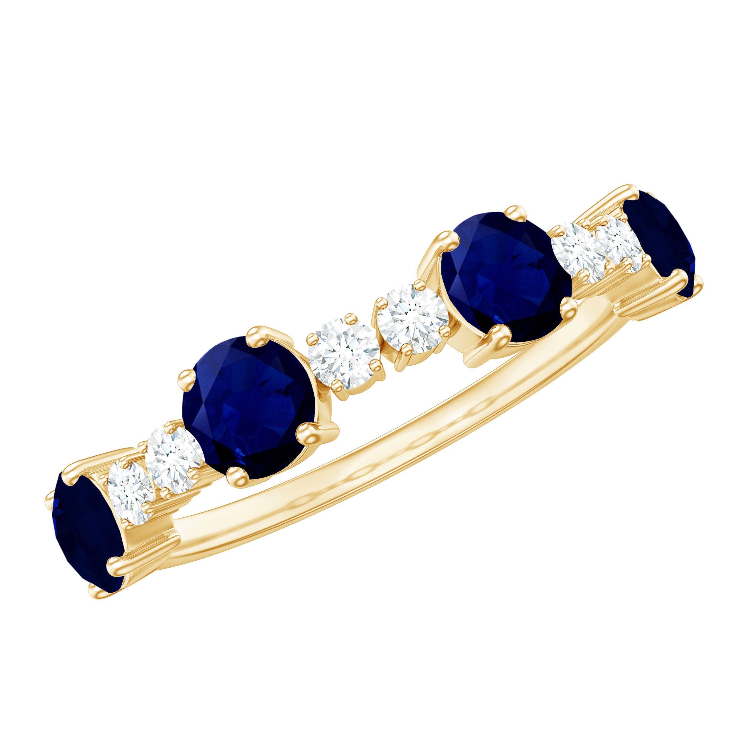 The Round Shape Blue Sapphire in Prong Setting with Diamond on Half Eternity Band is an elegant jewelry. Treat yourself with this Blue Sapphire Band.