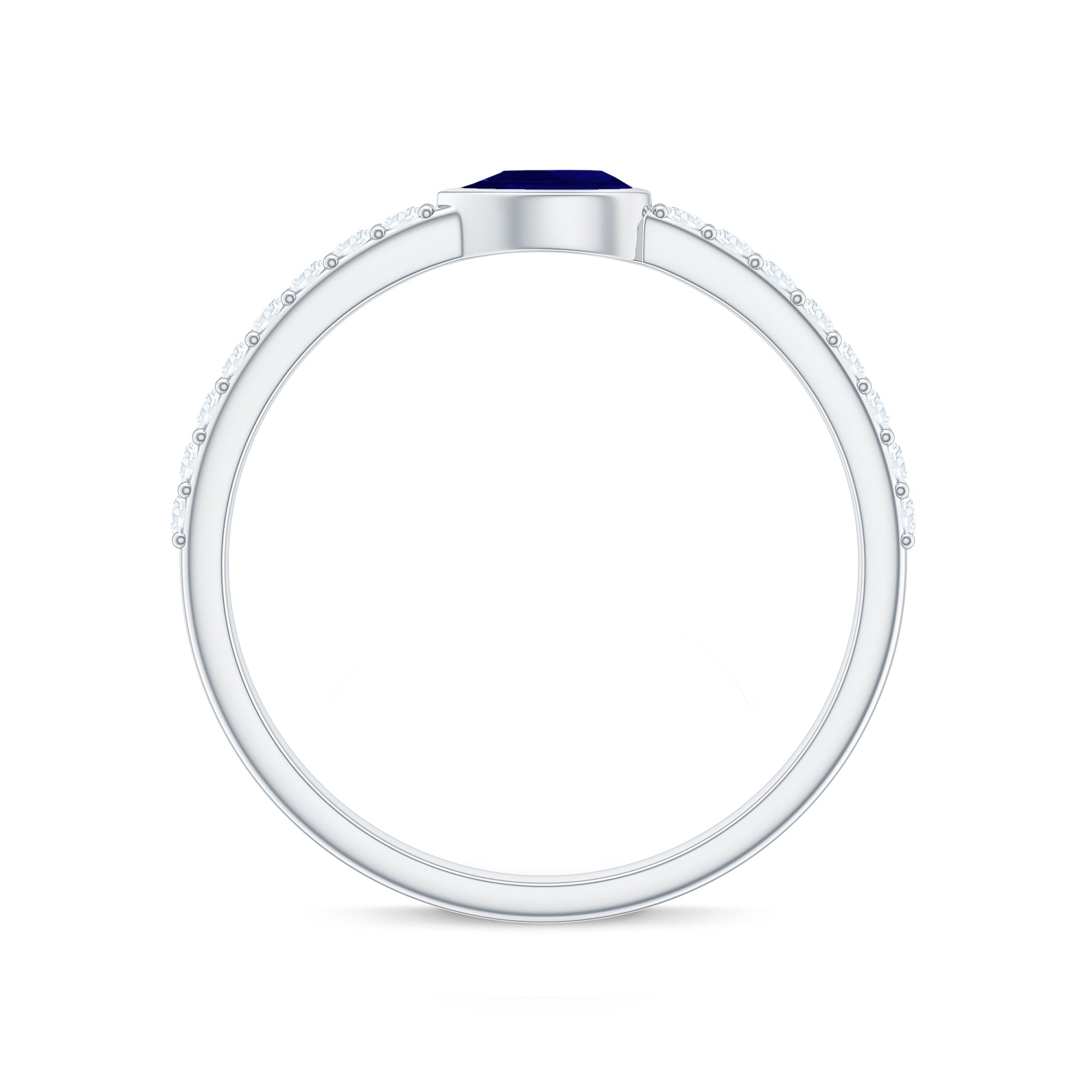 Real Blue Sapphire East West Promise Ring with Diamond