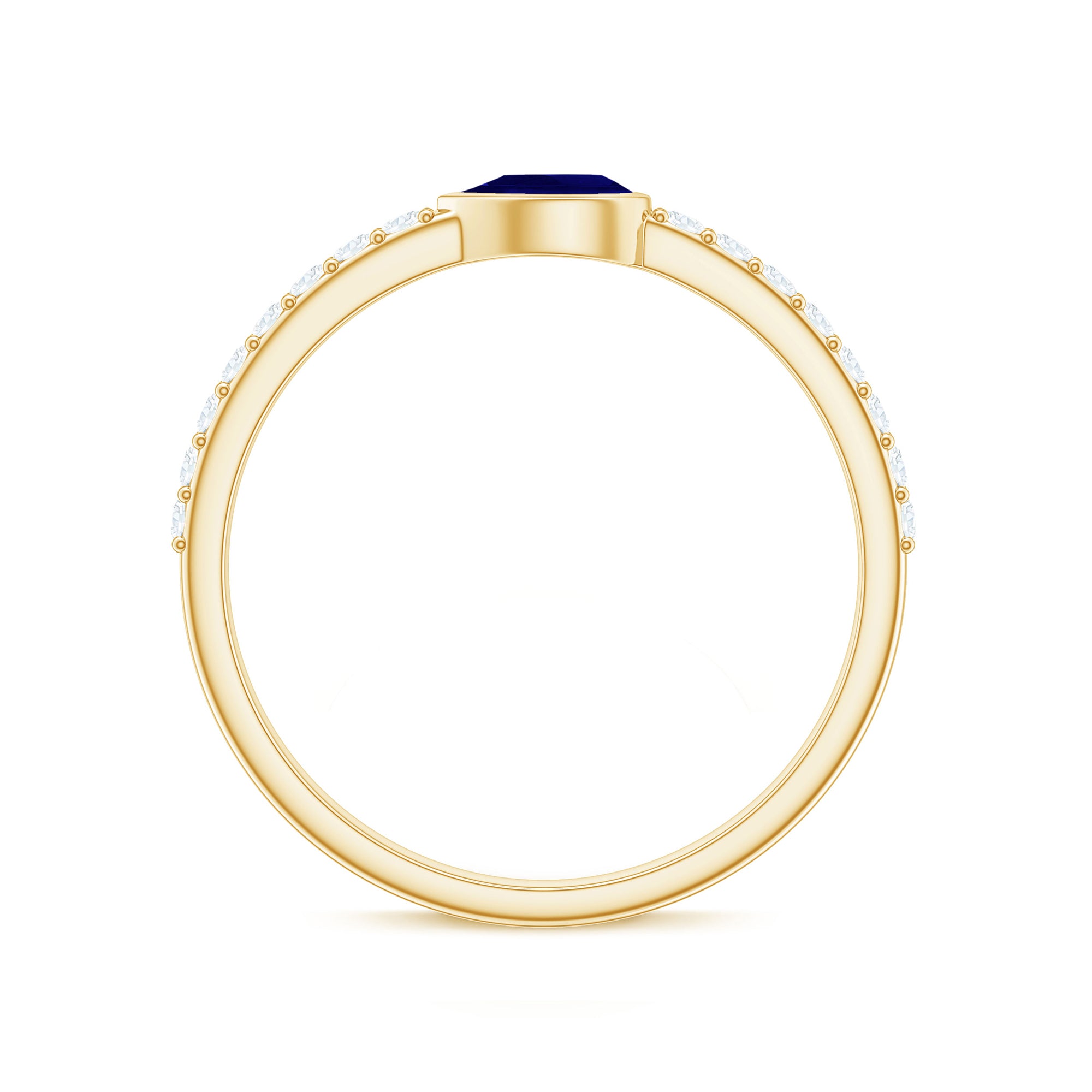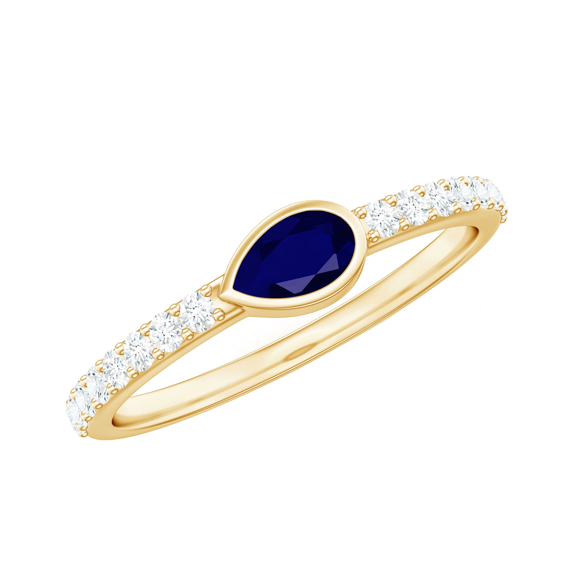 Securely held in Bezel Setting this Pear Shape Blue Sapphire as East West and Diamond as Side Stones on Promise Ring is a perfect commitment jewelry.