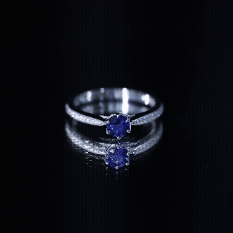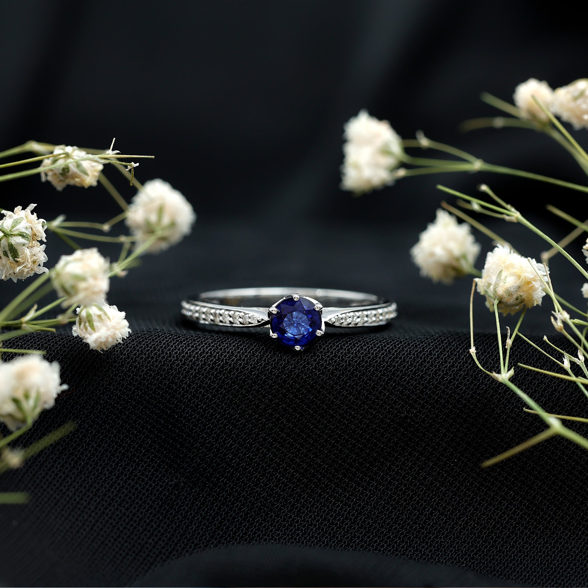 Real Blue Sapphire Solitaire Engagement Ring with Diamond