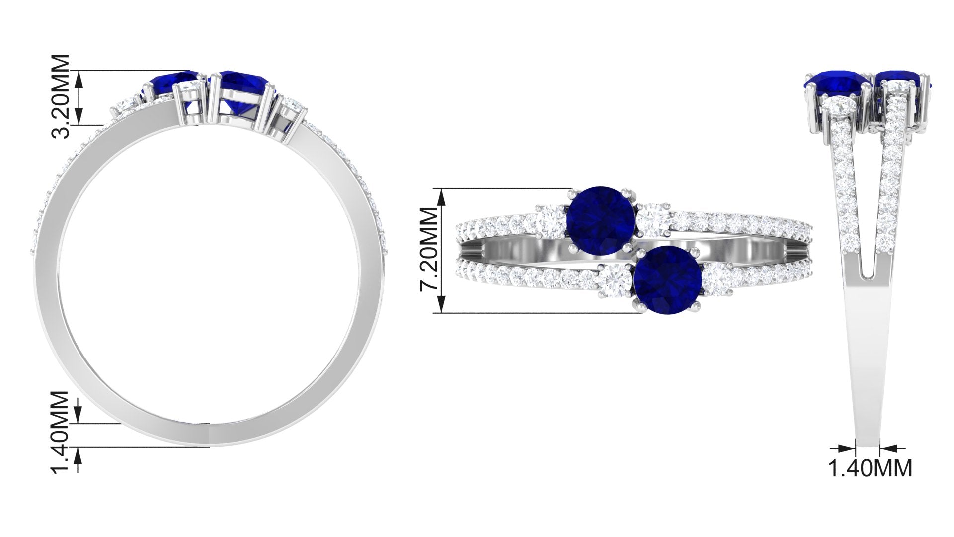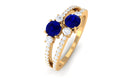 Real Blue Sapphire Two Stone Anniversary Ring with Diamond