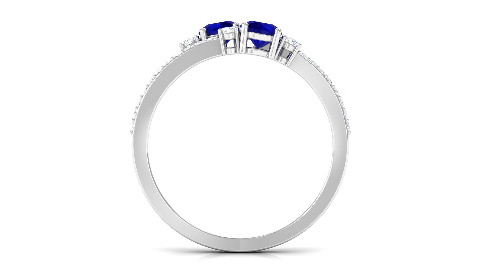 Real Blue Sapphire Two Stone Anniversary Ring with Diamond