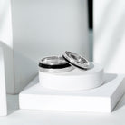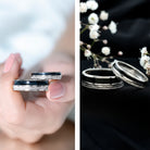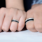 This elegant Couple Wedding Band Set blends modern sophistication with timeless symbolism, creating a perfect pairing for partners who appreciate classy style. The men’s band features a striking combination of sleek black enamel and textured detailing. The contrast between the smooth enamel and the texture creates a unique design that stands out. The women’s band mirrors the men’s with its matching black enamel accents, creating a harmonious and coordinated look between the two rings. Adding a touch of brilliance and femininity, the women’s band ring showcases a full row of genuine and sparkling diamonds set in pinpoint setting. Together, these Wedding Bands for Him and Her symbolize unity through contrast, strength and softness, boldness and beauty, making them a meaningful choice for couples looking to celebrate their bond with matching rings that feel both modern and timeless. These Black Matching Wedding Bands are ideal for those who want a distinctive and stylish expression of their commitment.