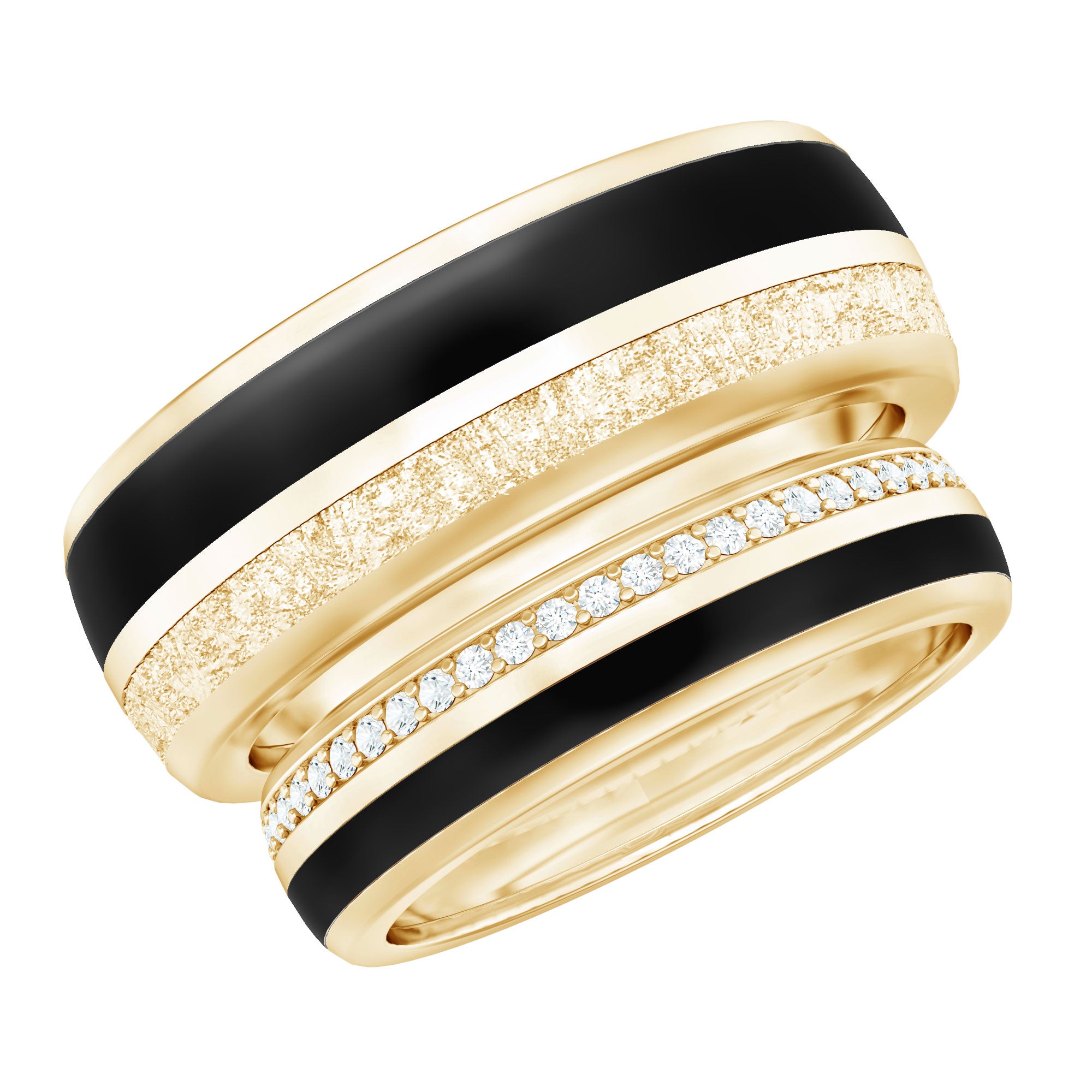 Real Diamond Couple Band Ring Set with Black Enamel
