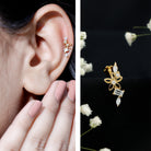 - You can wear this diamond climber earring on your helix, cartilage, or upper lobe piercing. The flat back closure will keep it secured in place.