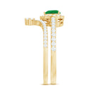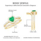 Real Emerald and Diamond Heart Wedding Ring Set with Certificate
