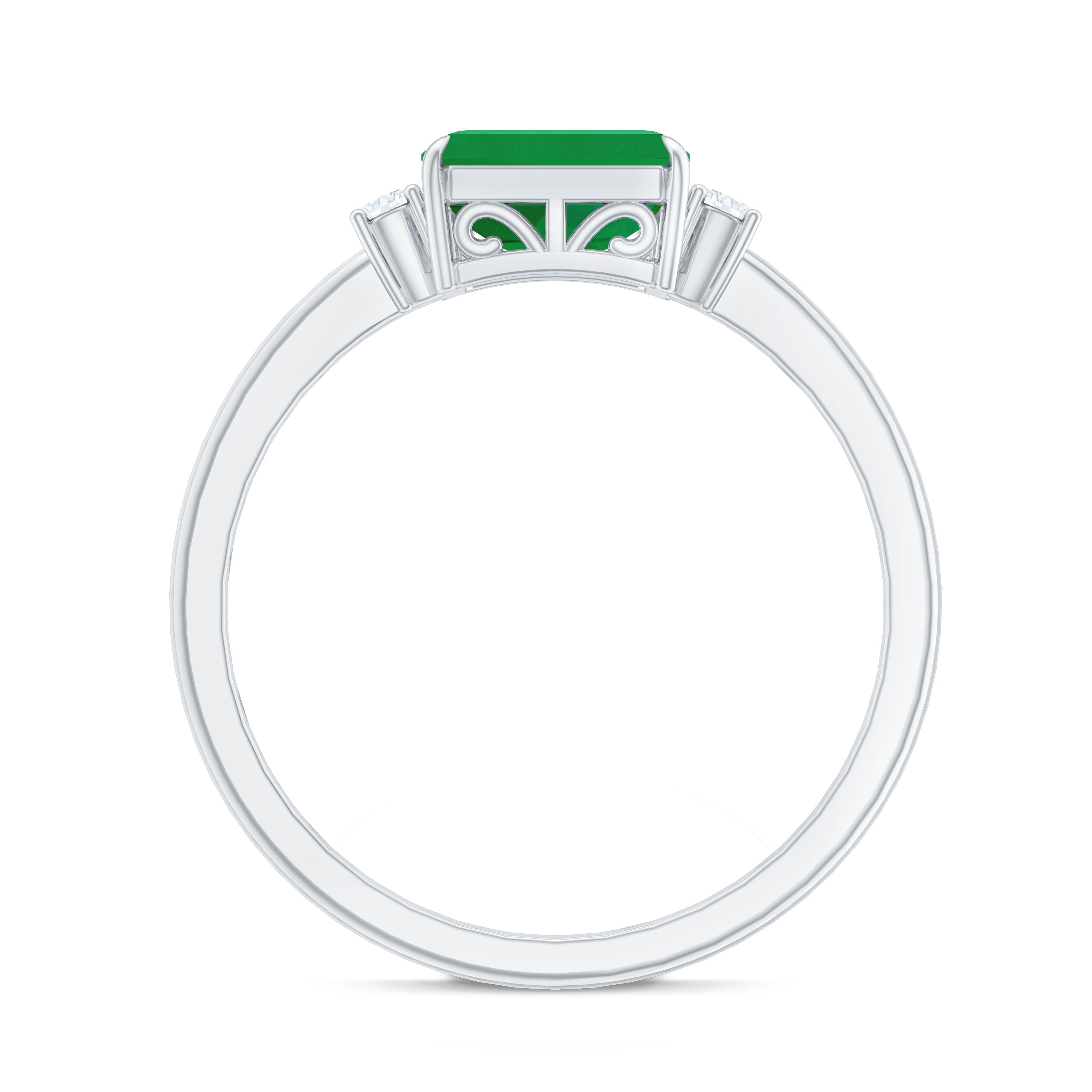 Real Emerald Cut Emerald East West Engagement Ring with Diamond