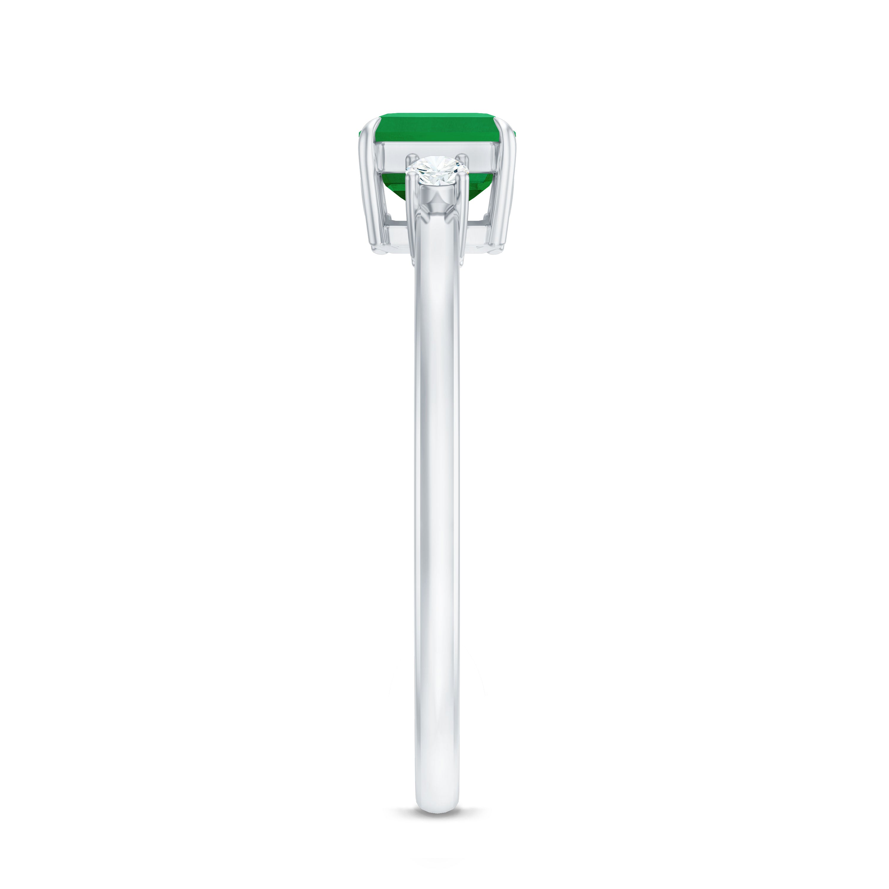Commemorate your special day with this Emerald Cut Engagement Ring, a design that merges timeless sophistication with modern flair. This Solitaire Ring for Engagement features a striking 5X7 mm Emerald Cut Emerald center stone, set horizontally in Claw Setting, radiates a vivid green brilliance that captures the eye and the heart. Flanked by a sparkling Diamond stone on either side, this East West Engagement Ring shimmers with subtle elegance, each stone reflecting the promise and shared moments of a lasting relationship. Ideal for engagements, anniversaries or as a meaningful expression of love, this Emerald Diamond Engagement Ring transforms a precious moment into a lifelong memory. Presented in a signature jewelry box and available in various sizes, this Emerald Ring for Women is designed to be worn and cherished every day.