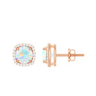 Real Ethiopian Opal and Diamond Halo Stud Earrings