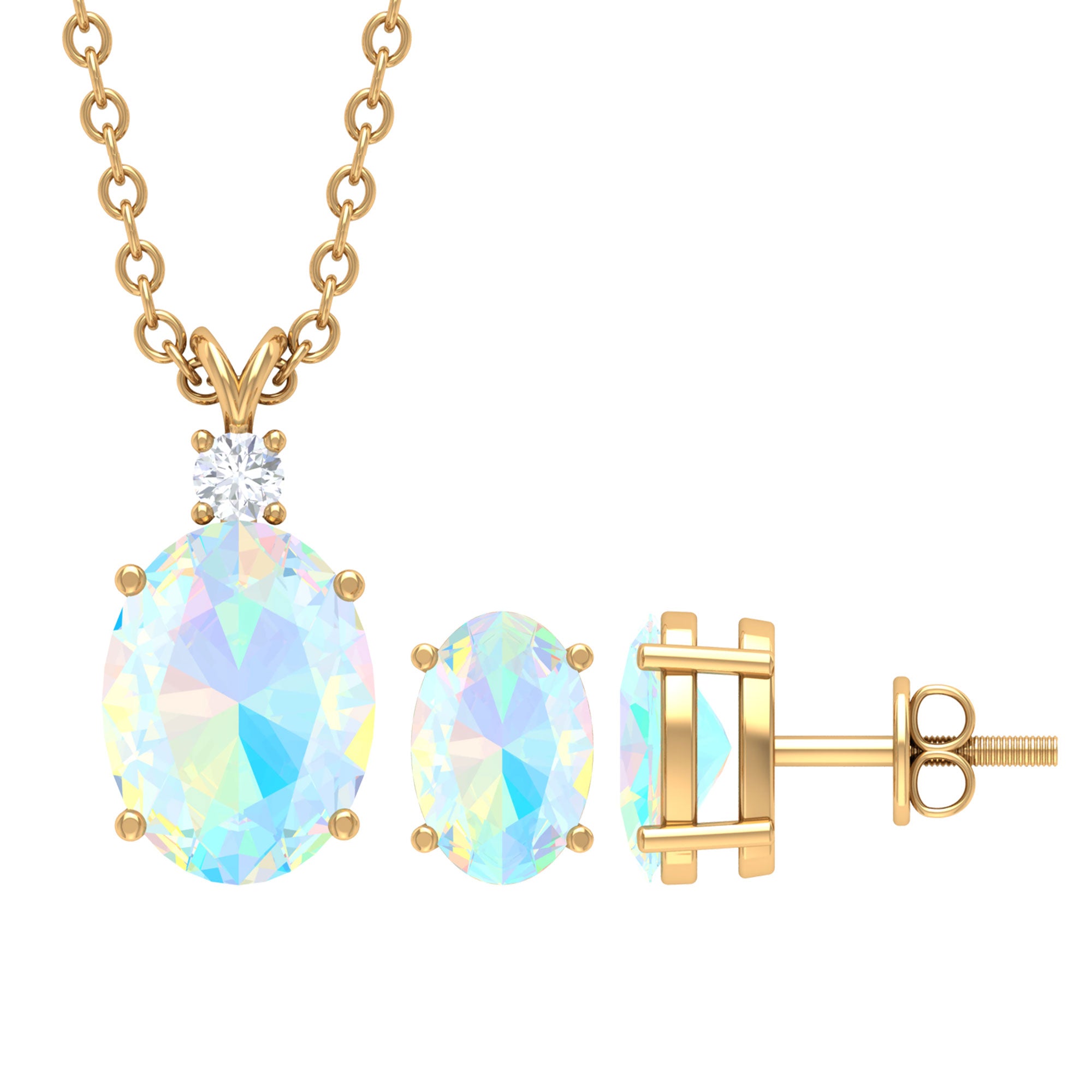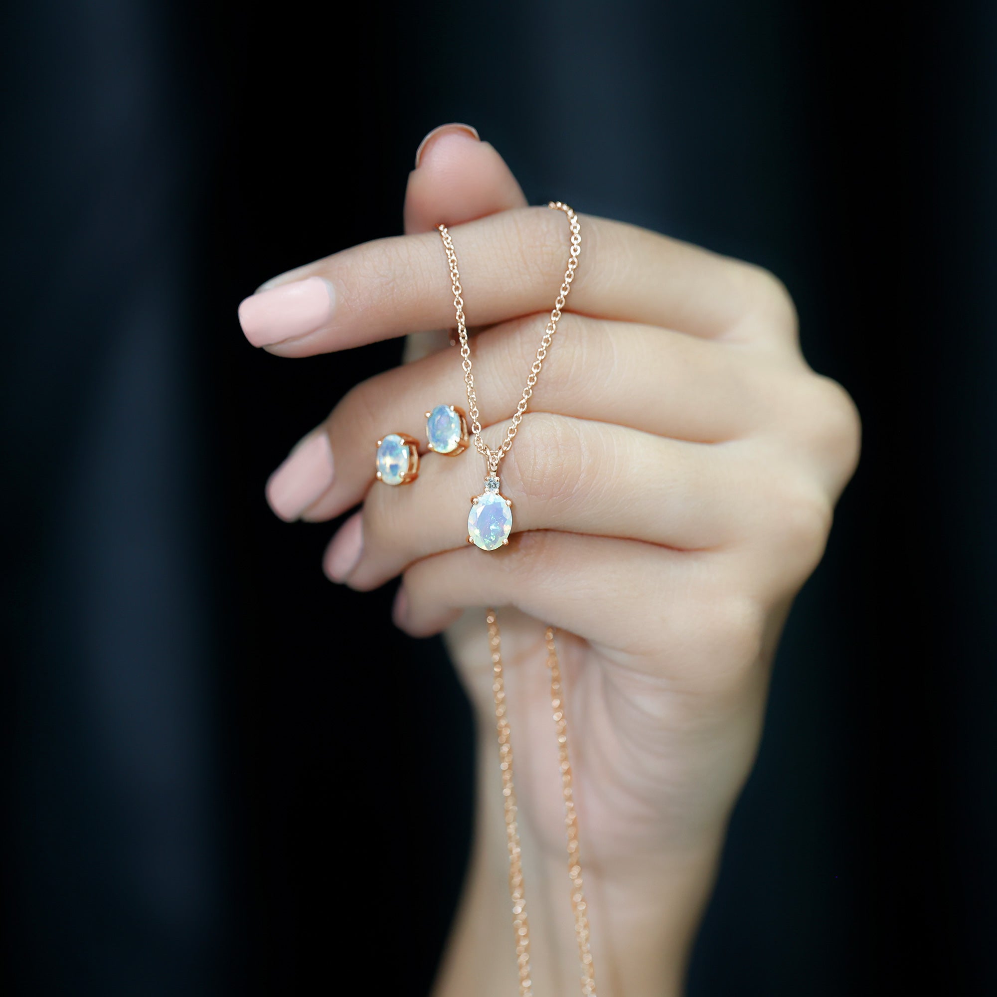 The real Ethiopian opal solitaire jewelry set with diamonds is perfect for any occasion or a casual day out to a formal event. This stunning jewelry set features a real Ethiopian opal solitaire necklace and a pair of matching stud earrings along with a sparkling 2 mm diamond on top. The opal is a beautiful gemstone with a unique play of color, and the diamond adds a touch of luxury. It is also a great choice for an engagement or wedding ring set.