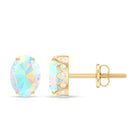 She is your soul and heart express what you feel about her while presenting these rainbow-radiating Ethiopian Opal Stud Earrings. The Oval Shape Ethiopian Opal sits as Solitaire in Prong Setting with Diamond studded beautifully on these Opal Earrings. Giving an enchanting appeal to these Solitaire Studs with a great combination of Opal and Diamond. Make your collection even more brighter with these everyday fit Solitaire Earrings.