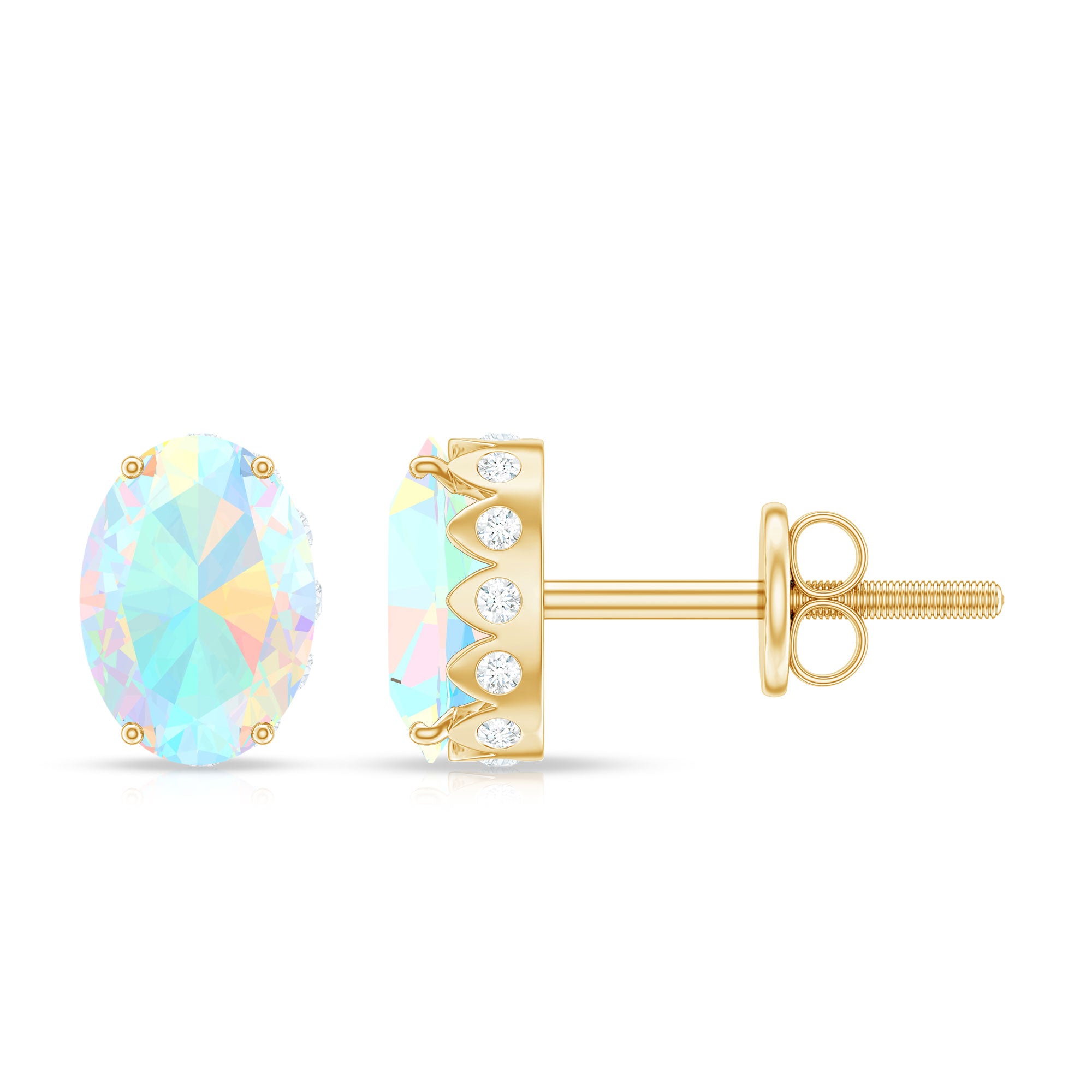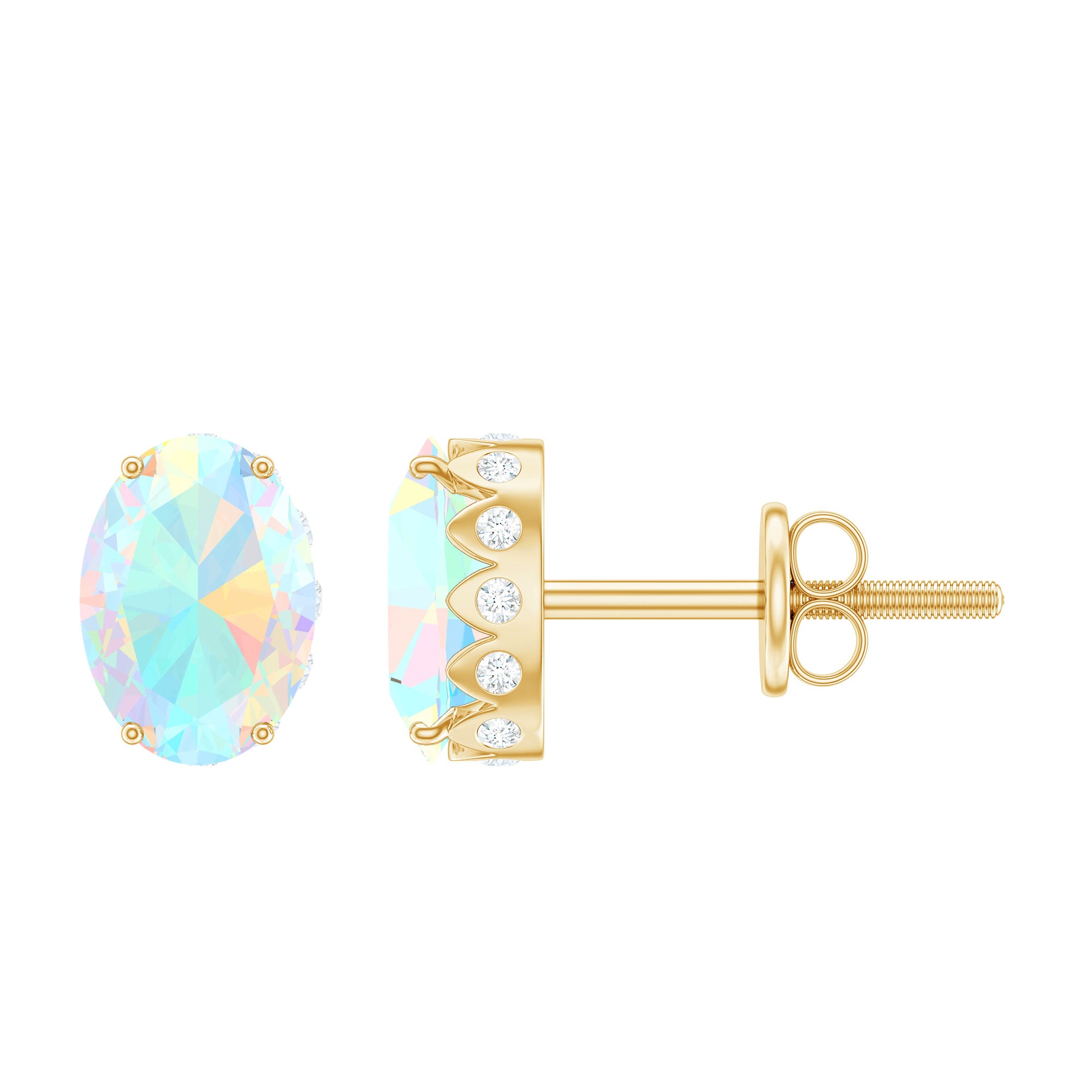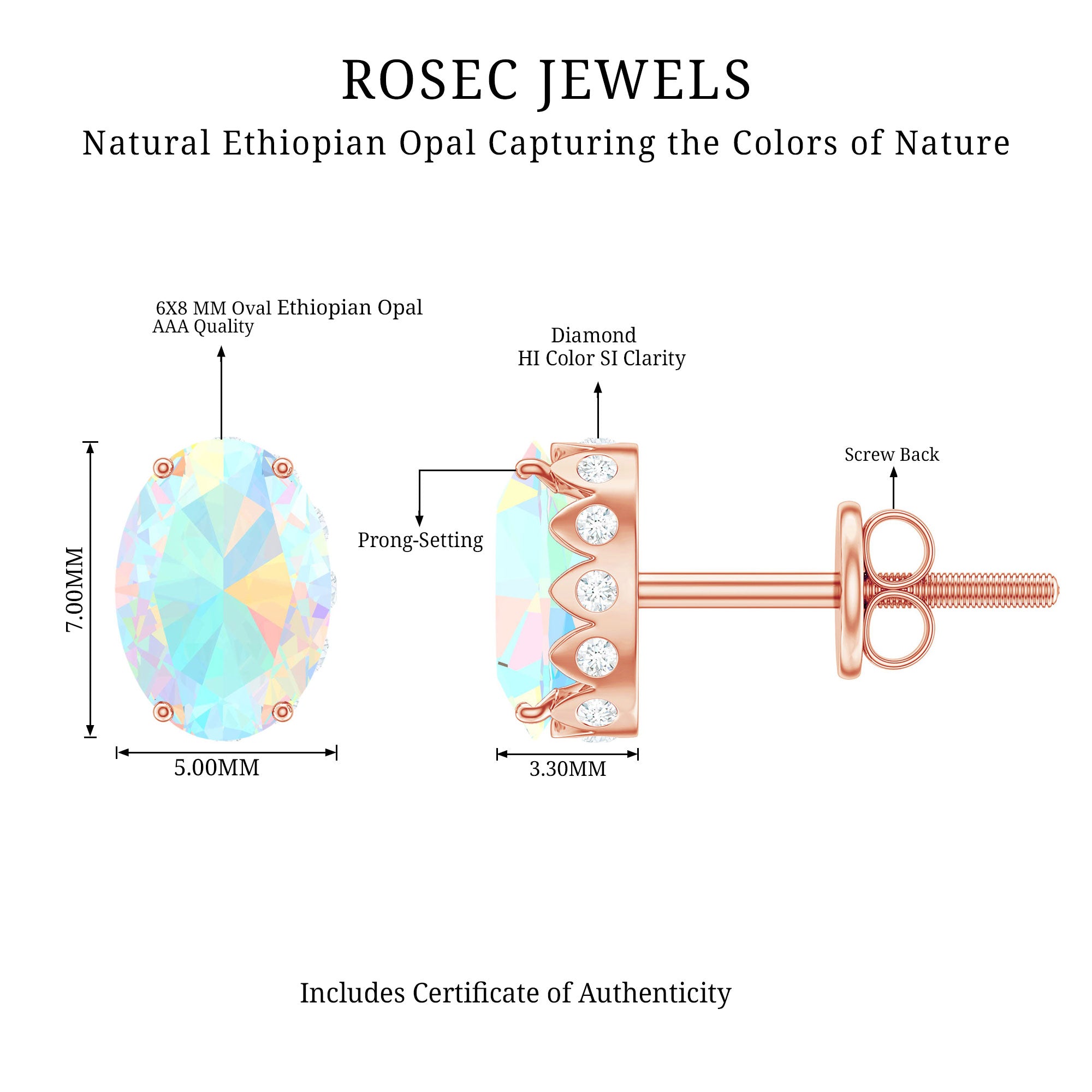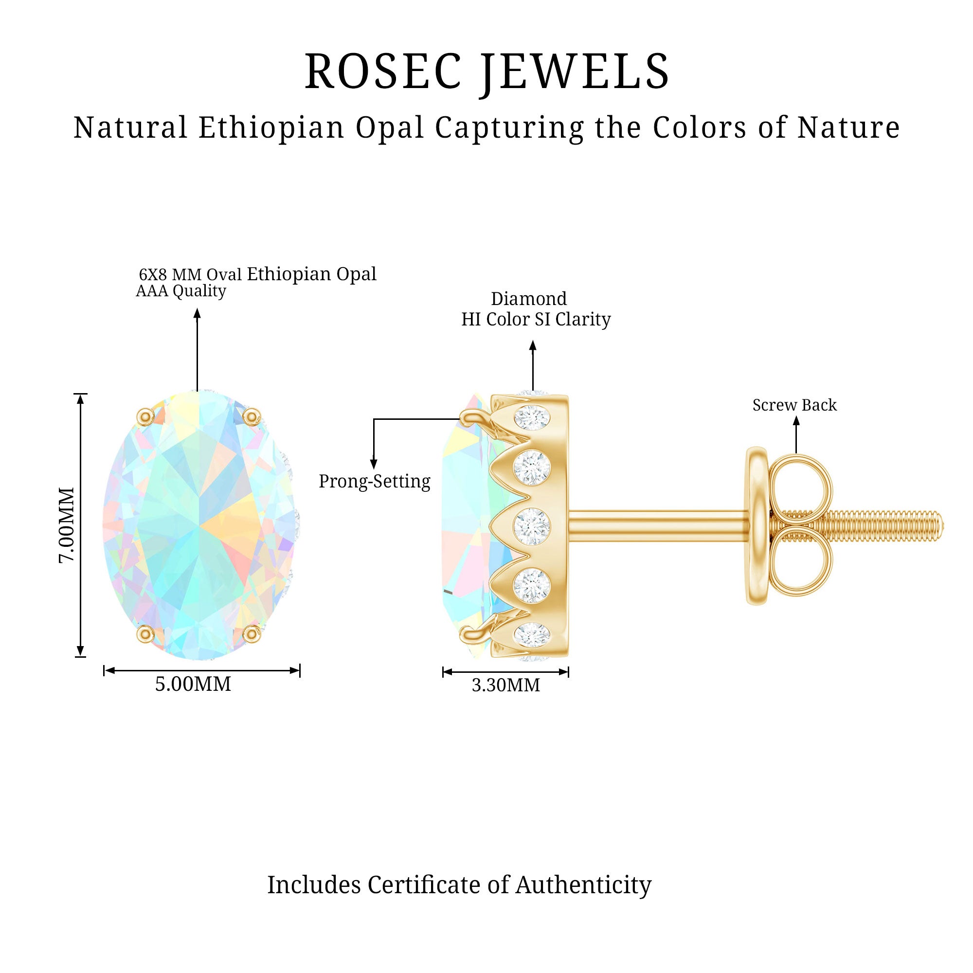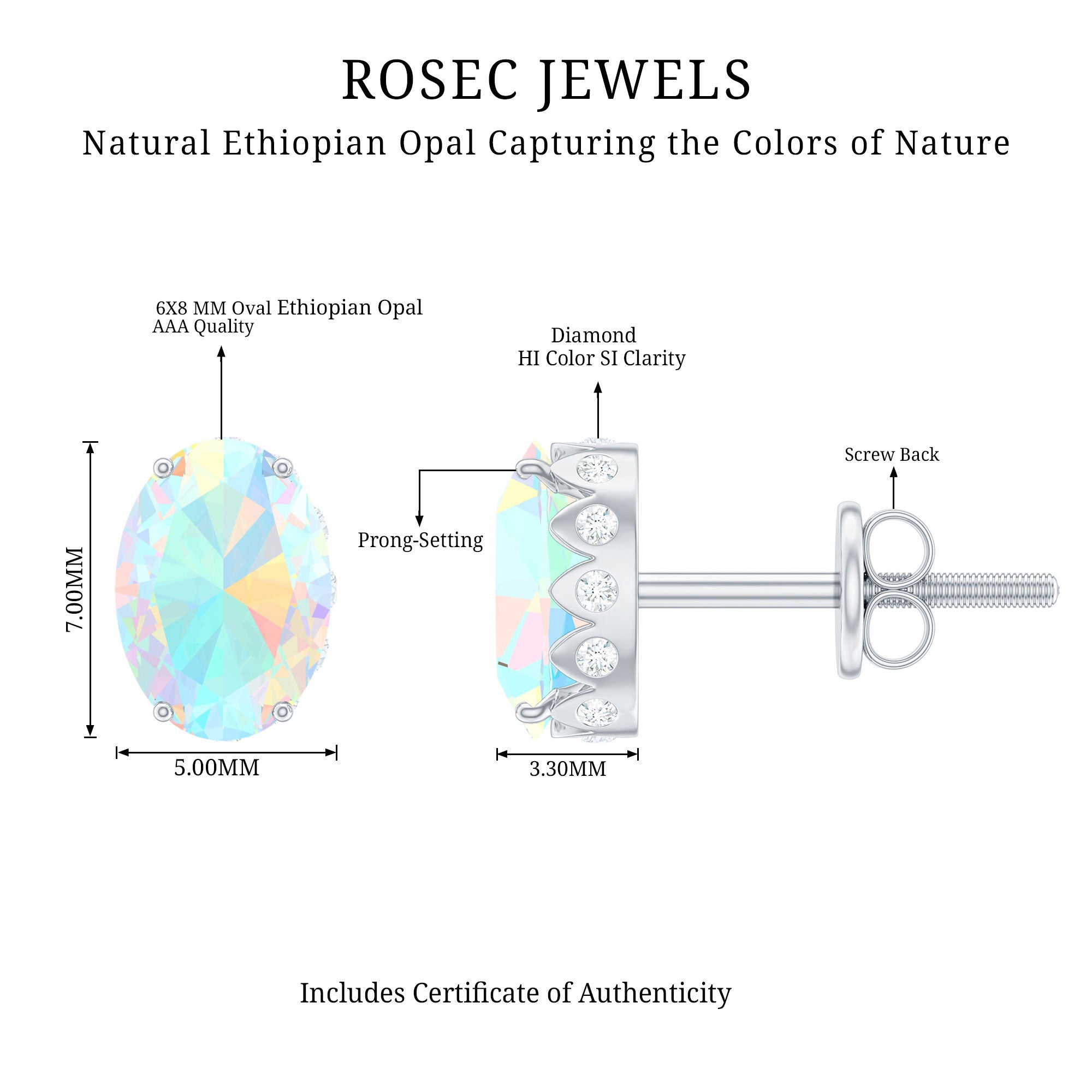 She is your soul and heart express what you feel about her while presenting these rainbow-radiating Ethiopian Opal Stud Earrings. The Oval Shape Ethiopian Opal sits as Solitaire in Prong Setting with Diamond studded beautifully on these Opal Earrings. Giving an enchanting appeal to these Solitaire Studs with a great combination of Opal and Diamond. Make your collection even more brighter with these everyday fit Solitaire Earrings.