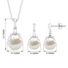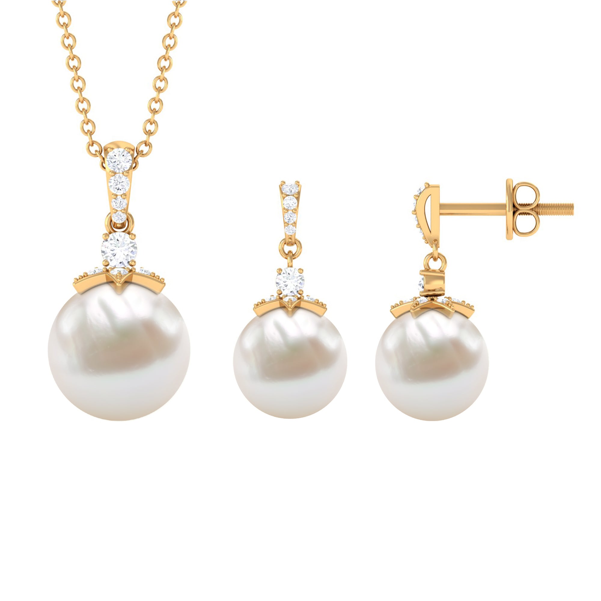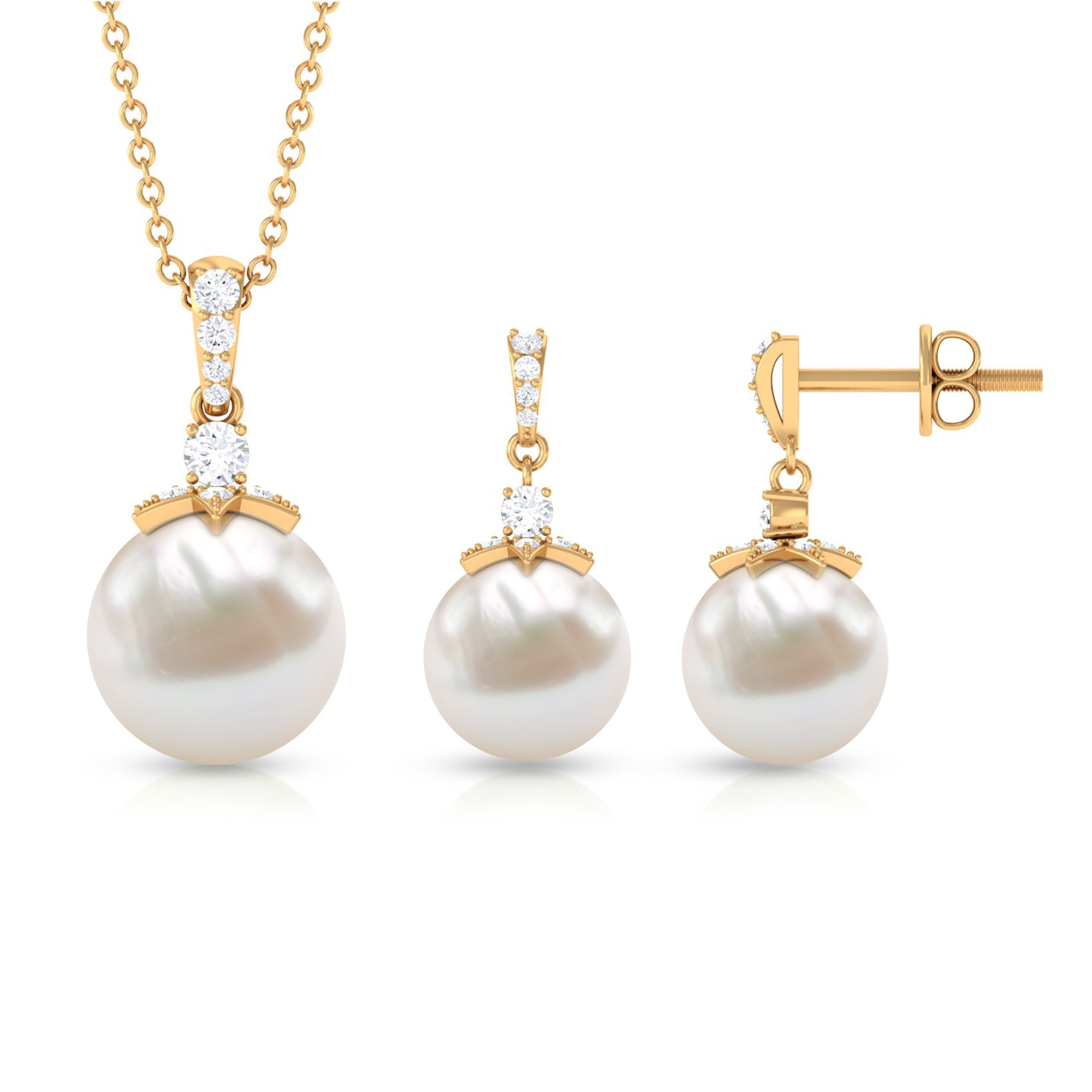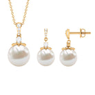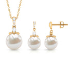Real Freshwater Pearl and Diamond Drop Pendant and Earrings Set