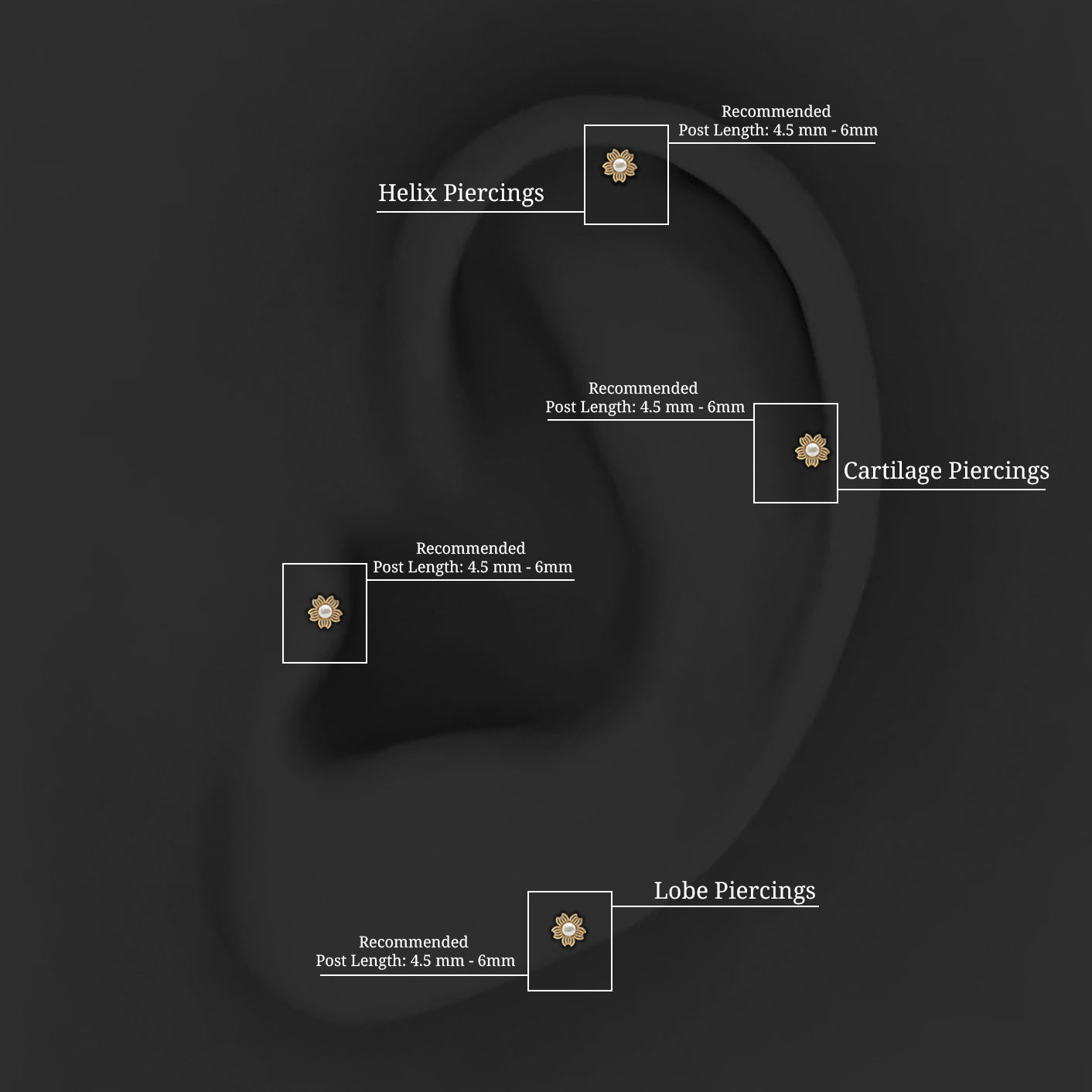 Ta-da! Upgrade your ear stack with our oh-so-dainty and unique Pearl Solitaire Flower Earring! Embellished with petite Round Freshwater Pearl in the center, its minimal look allows you to stack it with your other floral ear jewelry collection. This dainty stunner comes equipped with a flat back, ensuring no pokes or jabs disrupt your quick naps or beauty sleep extravaganzas. The Pearl Piercing Earring is designed to be your go-to for an active lifestyle, offering worry-free glamour during workouts, travel, and all your daily adventures. Let this elegant Pearl Earring add a dash of sophistication to your everyday style.