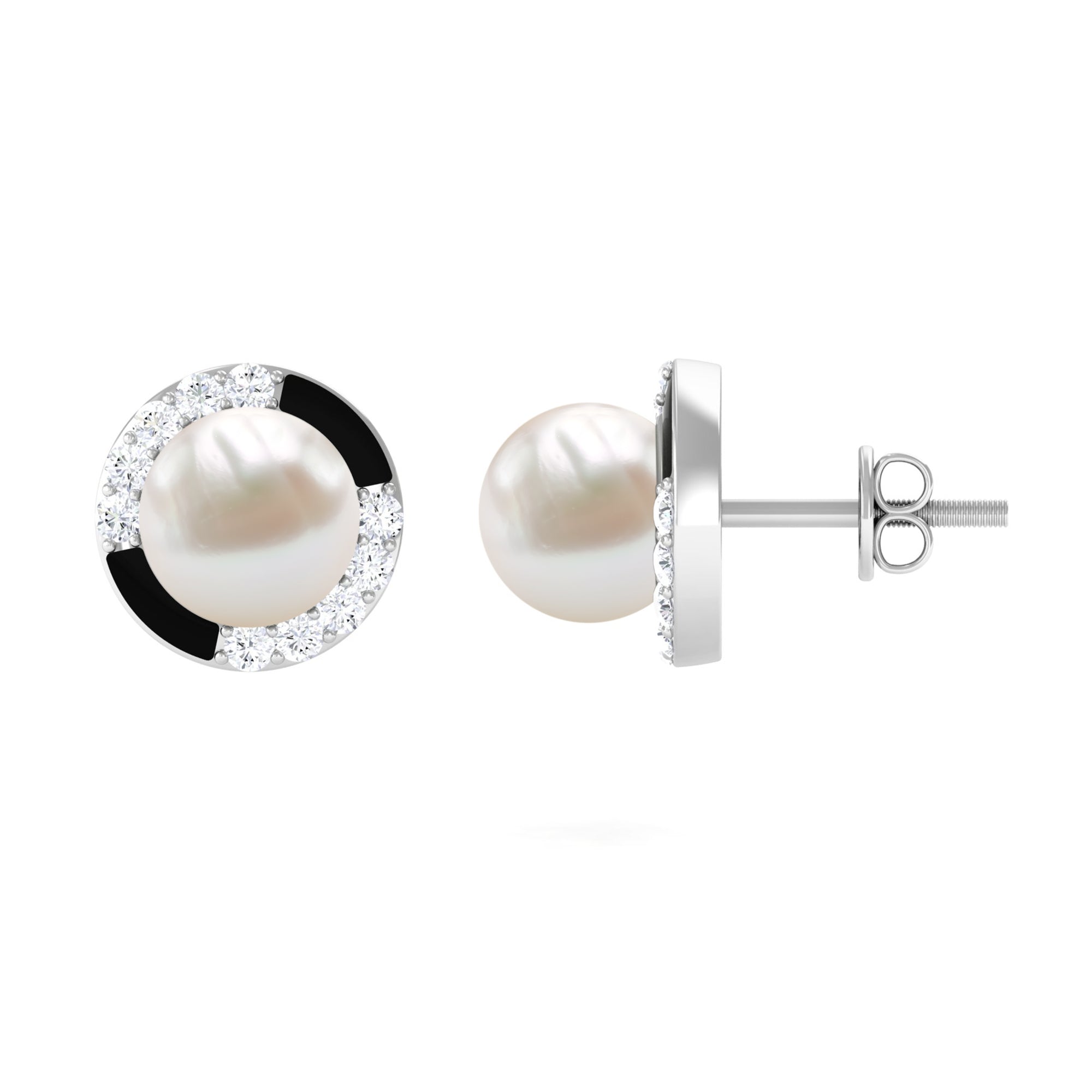 Classic Freshwater Pearl Stud Earrings with Diamond