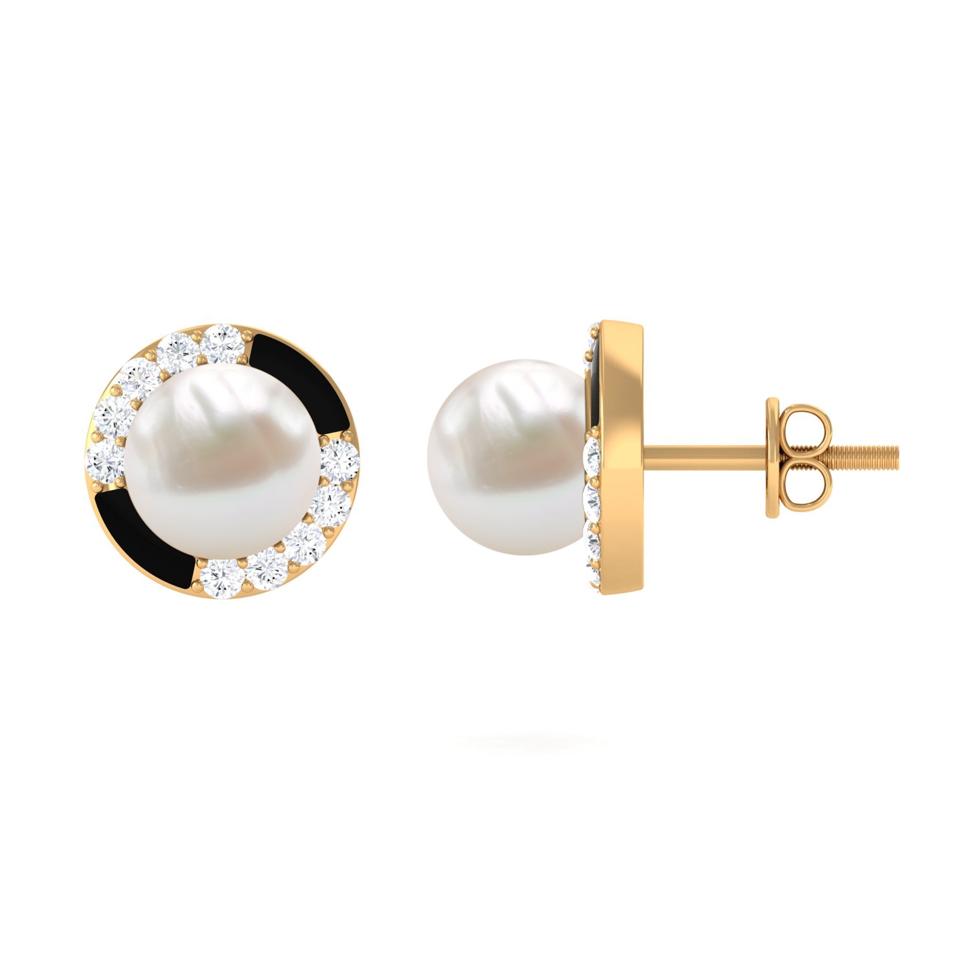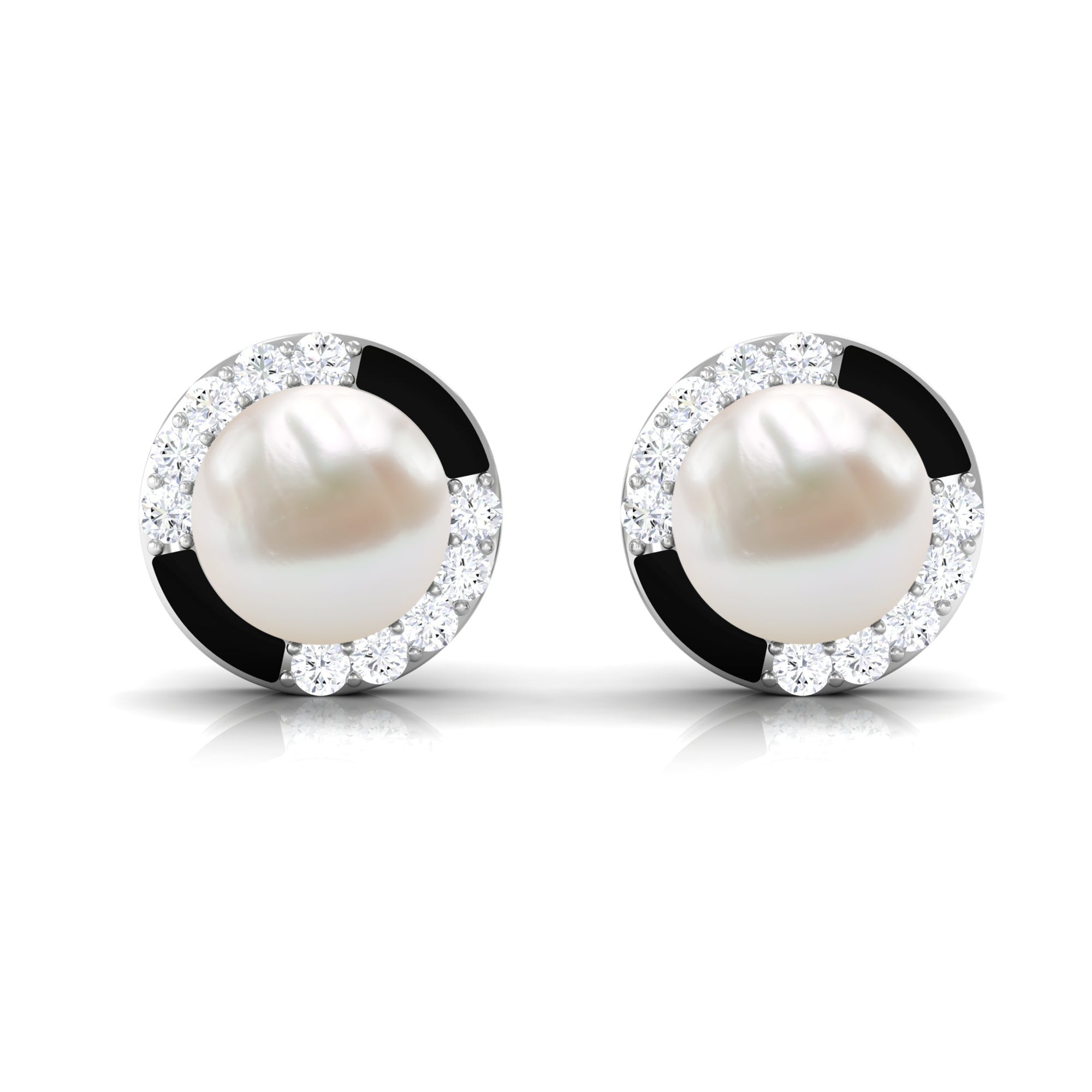 Make a stunning statement with these Freshwater Pearl Earrings, elevated with sparkling Diamond stones and Black Enamel for a modern twist. Each luminous 7 mm Freshwater Pearl is perfectly complemented by sparkling Diamond stones set against a chic Black Enamel, creating a look that feels timeless yet modern. The Screw Back Closure ensures a secure and comfortable fit, letting you wear them with confidence from busy days to elegant evenings. These Pearl Diamond Earrings are ideal for women who love versatile pieces that can transition effortlessly from day to night. The soft glow of the White Pearls adds sophistication, while the Diamond stones and Black Enamel bring a contemporary edge that makes them stand out. Whether paired with a tailored office outfit, a chic casual look or a sophisticated cocktail dress, they instantly elevate any ensemble. Packaged in a stylish jewelry box, these Pearl Stud Earrings are ready to gift for birthdays, anniversaries or special celebrations, or to add a refined touch to your own collection.