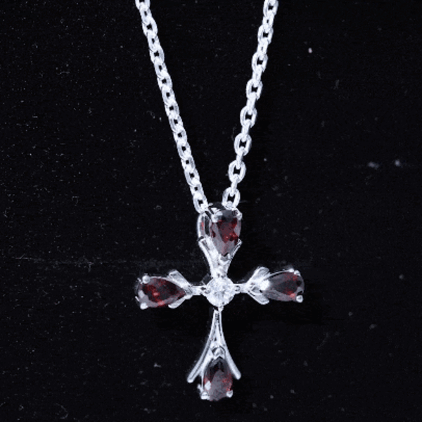 Real Garnet Designer Cross Necklace with Silver Chain