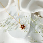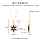 Real Garnet Flower Necklace Yellow Gold Plated Silver Pendant for Women