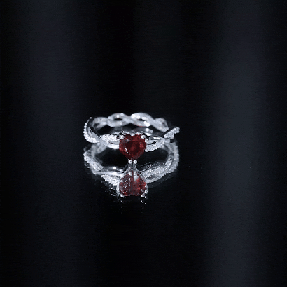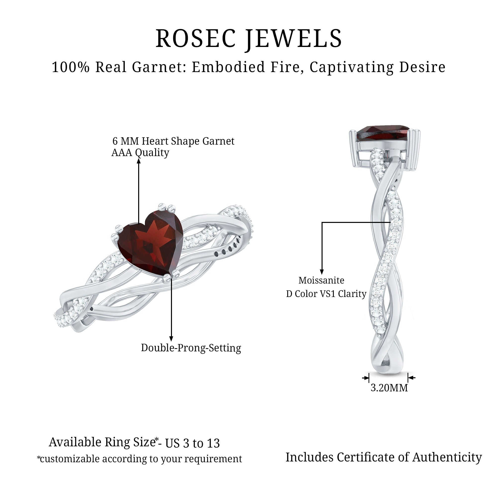 Real Garnet Heart Engagement Ring with Moissanite Braided Shank