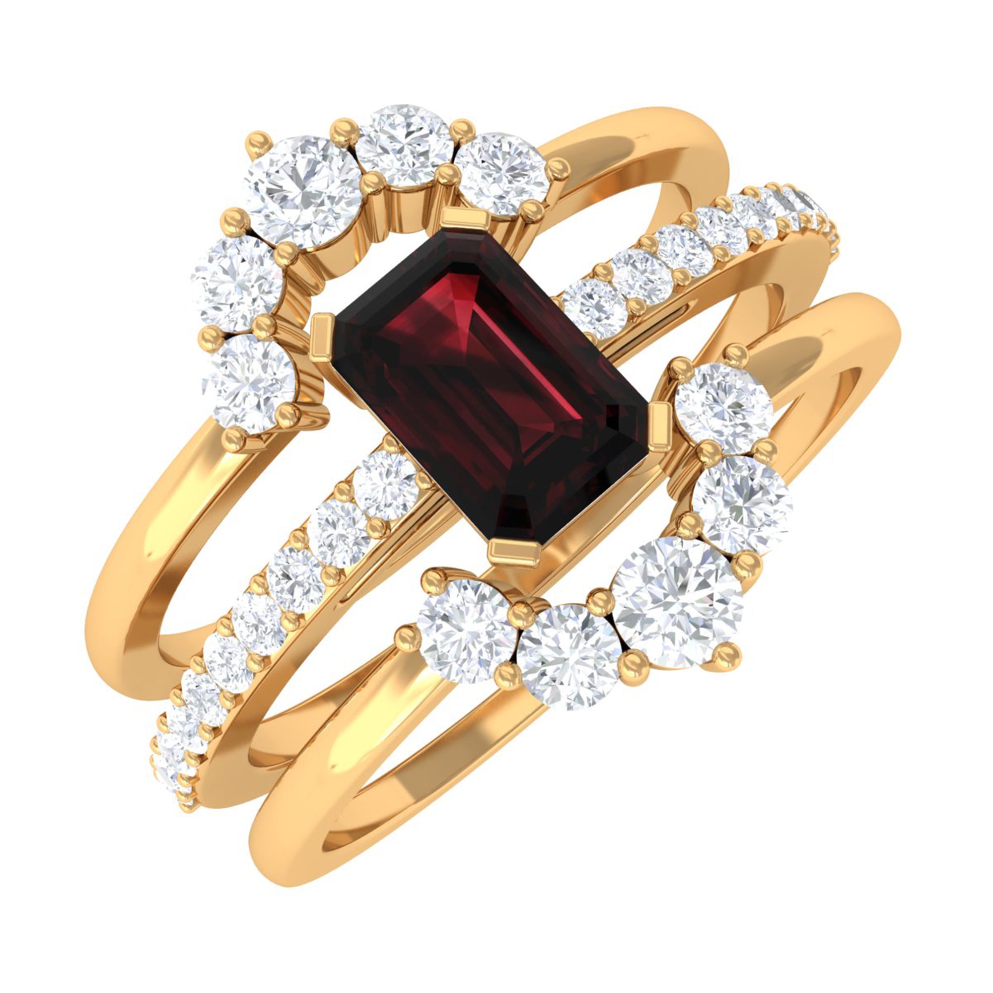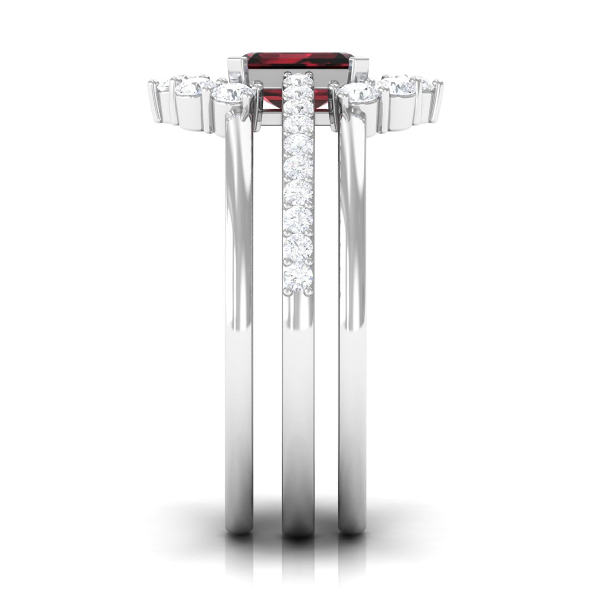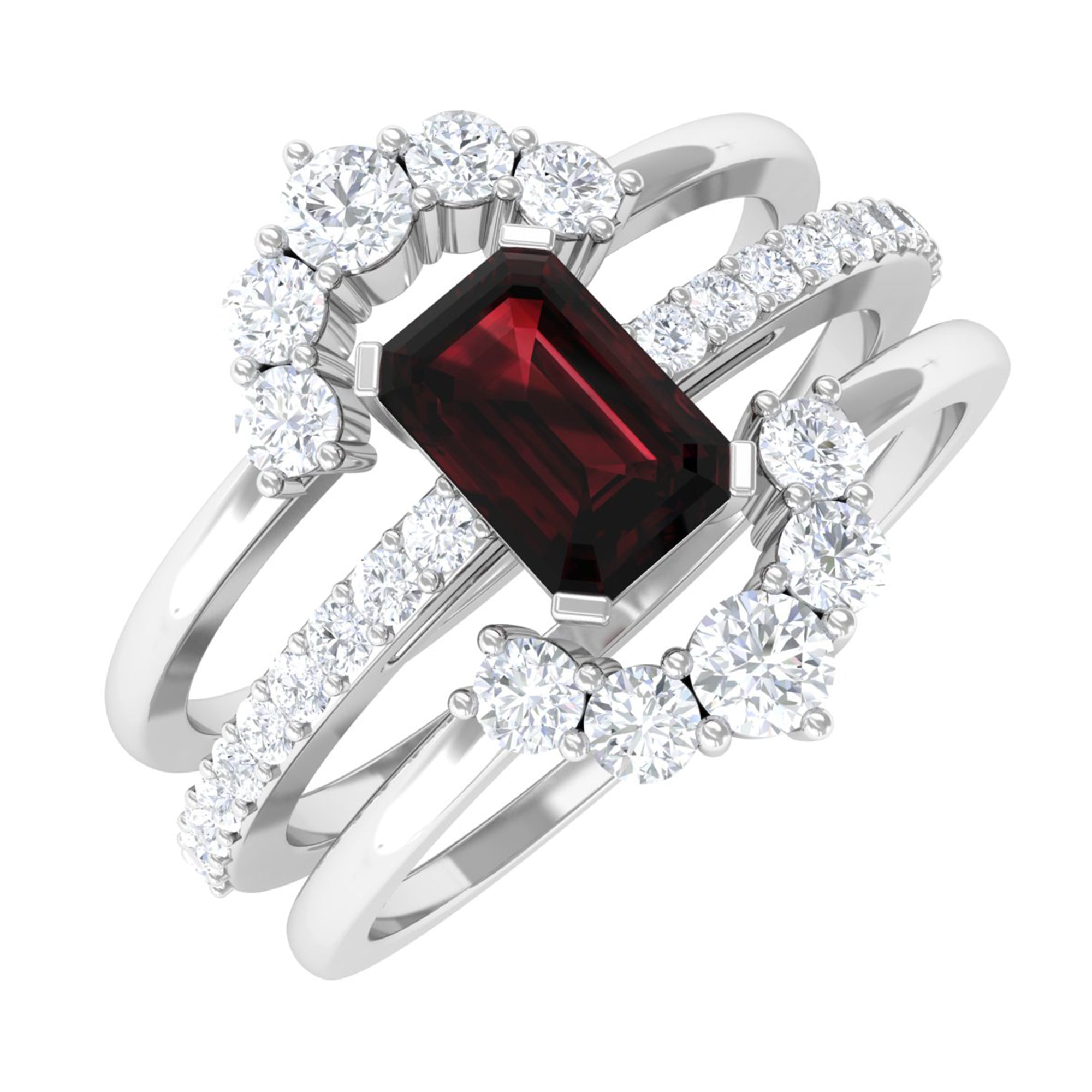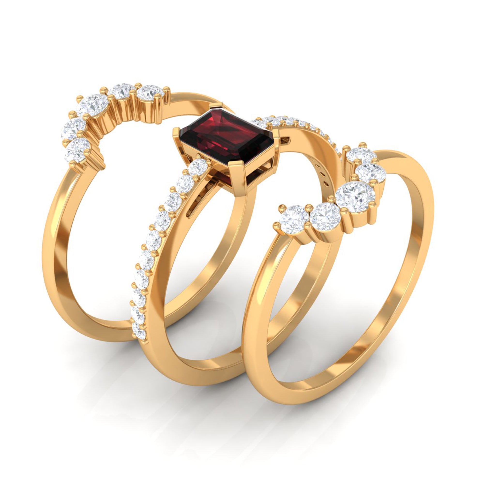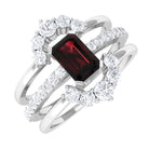 Natural Emerald Cut Garnet Diamond Trio Wedding Ring Set