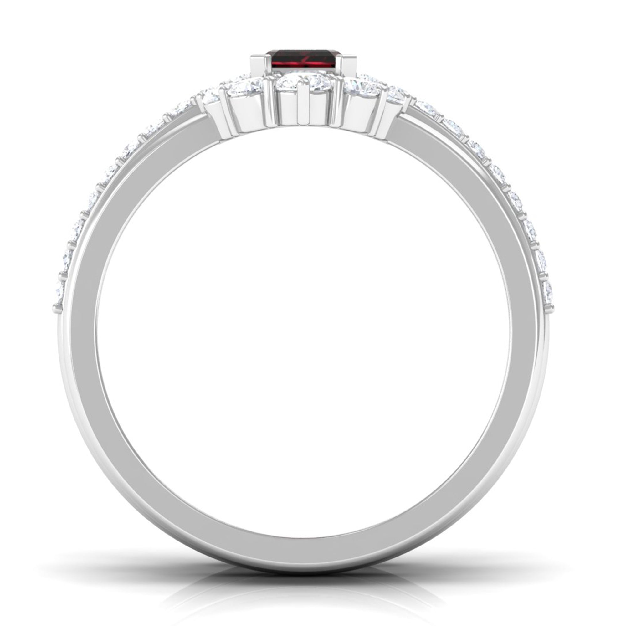 Make your special day truly unforgettable with this Trio Wedding Ring Set, beautifully crafted to symbolize a love that grows stronger with every moment. At the heart of this stunning trio is an engagement ring featuring a luminous 4X6 mm Emerald Cut Garnet, paired with sparkling Diamond Side Stones that add an elegant glow. Completing the set are two matching Curved Enhancer Rings, each adorned with Round Shape Diamond stones. Together, they create a layered, graceful look that shines from every angle, offering the perfect blend of brilliance and timeless romance. Designed for comfort and beauty, this Emerald Cut Wedding Ring Set makes a heartfelt choice for engagements, vow renewals or anniversary celebrations. Presented in a signature jewelry box and available in a range of sizes, this Garnet Wedding Ring Set is ready to be gifted as a meaningful token of eternal love. Whether worn as a complete trio for a striking bridal moment or styled separately for everyday elegance, this Wedding Bridal Ring Set brings a touch of magic to every glance.