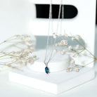 Real London Blue Topaz Marquise Necklace With Silver Chain
