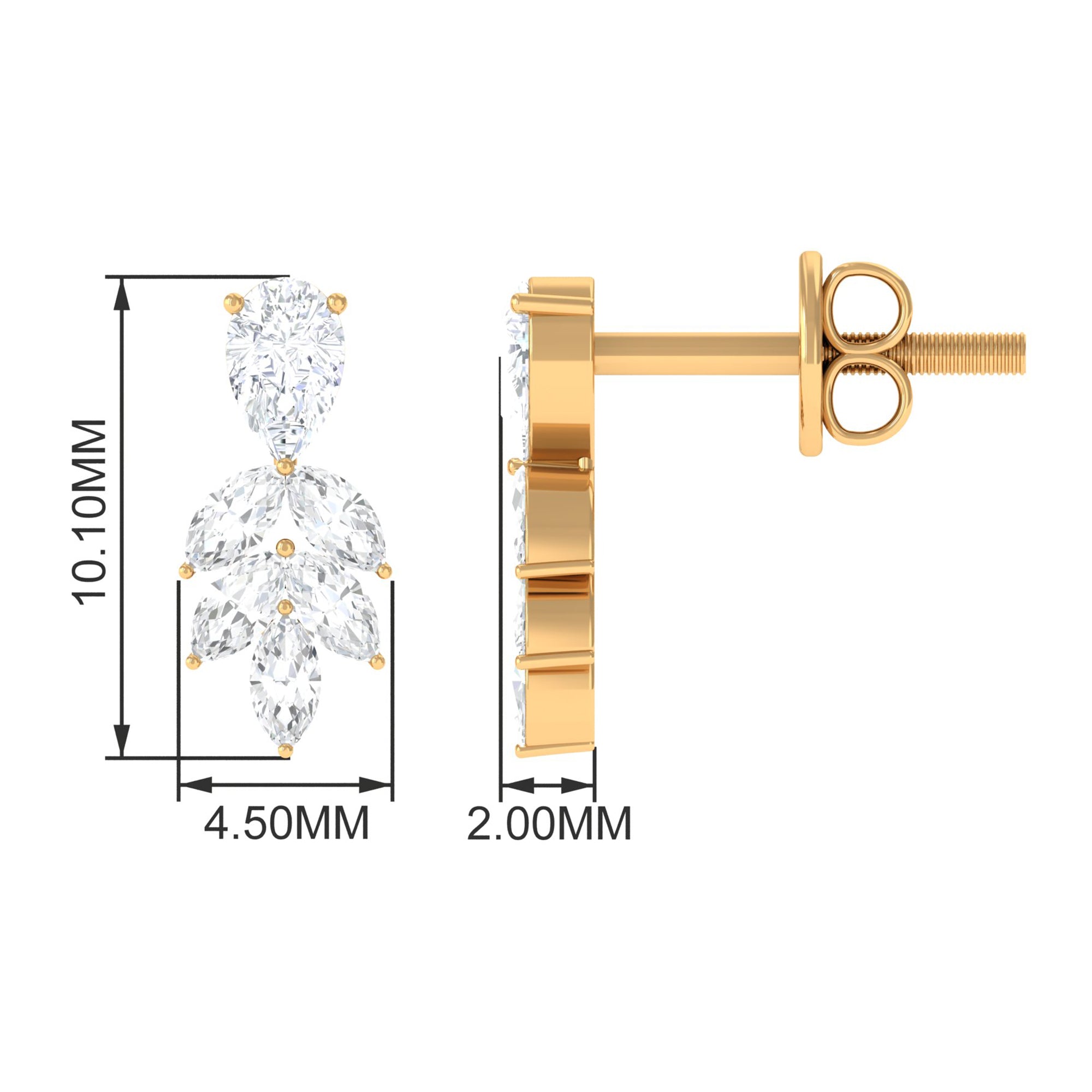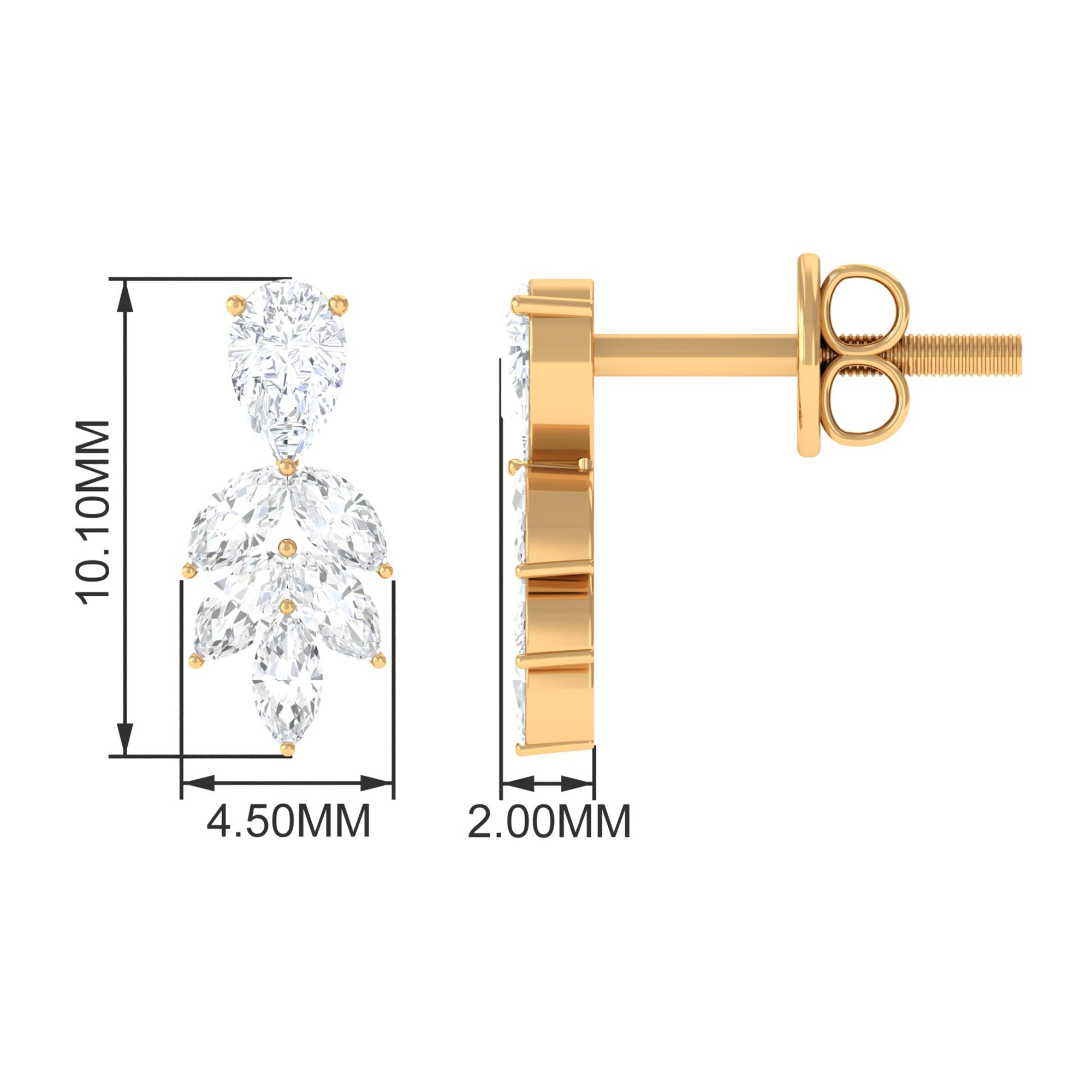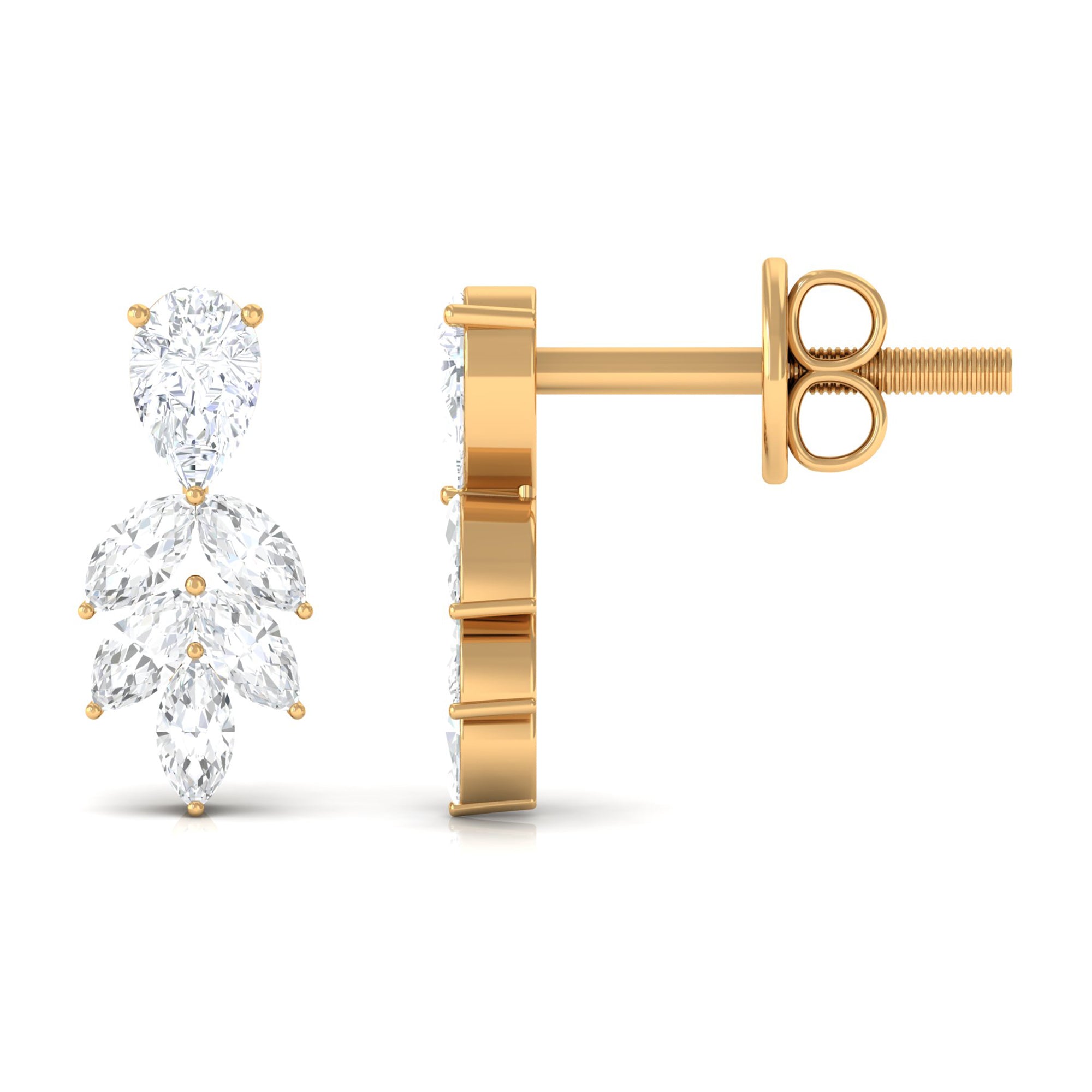 Turn heads with these Diamond Stud Earrings, a perfect blend of elegance and modern sophistication. Each Earring showcases a unique combination of Pear and Marquise Shape Diamond stones, designed to capture light from every angle and create a dazzling sparkle that draws attention without overpowering your look. The secure Screw Back Closure ensures comfort and peace of mind, making them ideal for long days at the office, elegant evenings out or special occasions that deserve a touch of glamour. Delivered in a signature jewelry box, these Diamond Earrings are ready to gift, making them an ideal choice for birthdays, anniversaries, holidays or as a meaningful gesture for someone special in your life. Timeless and gracefully designed, these Diamond Earrings for Women transform everyday moments into memorable ones. Let these Real Diamond Earrings be the sparkling detail that elevates your look and celebrates the beauty of elegance in every moment.