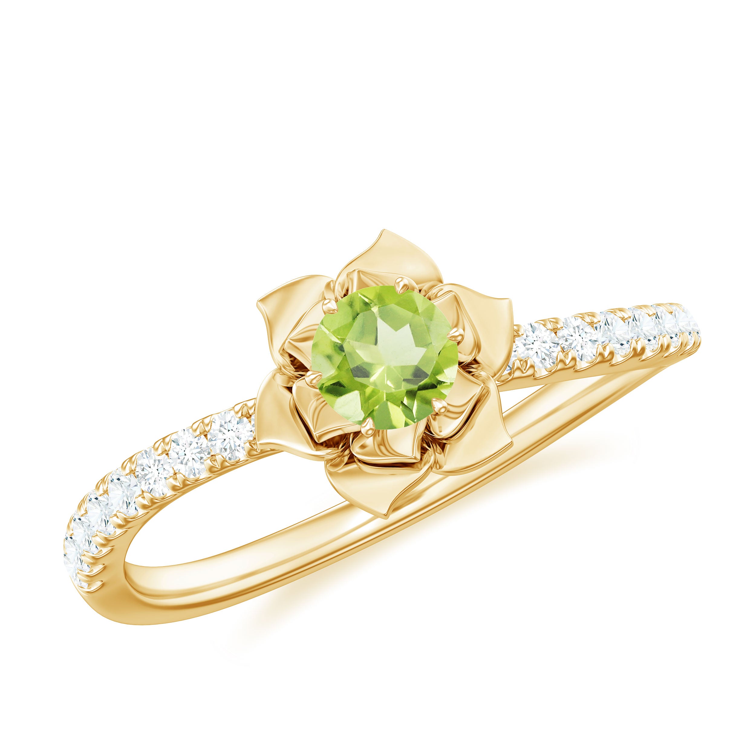 Nature Inspired Half Carat Peridot Flower Engagement Ring with Diamond