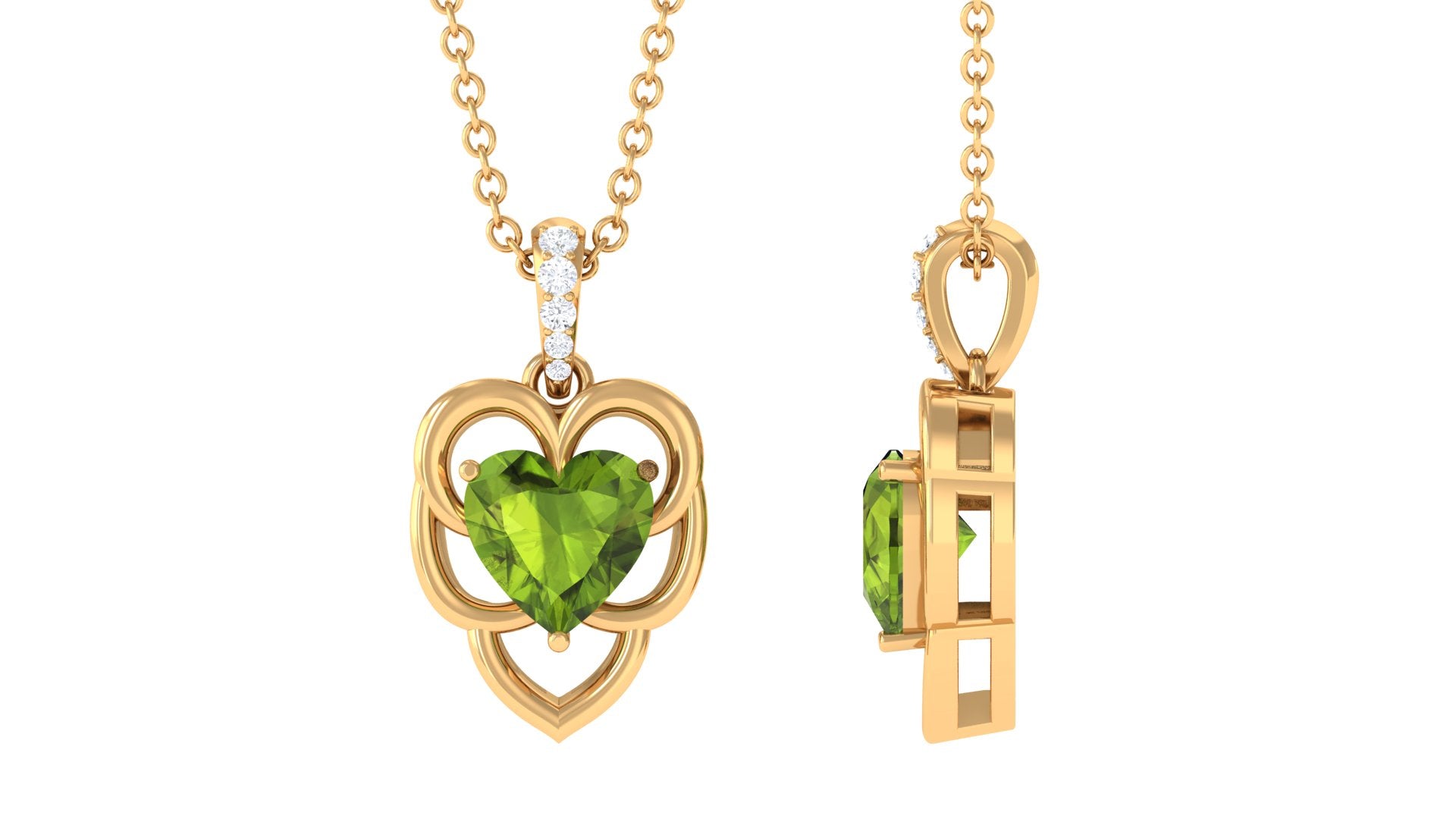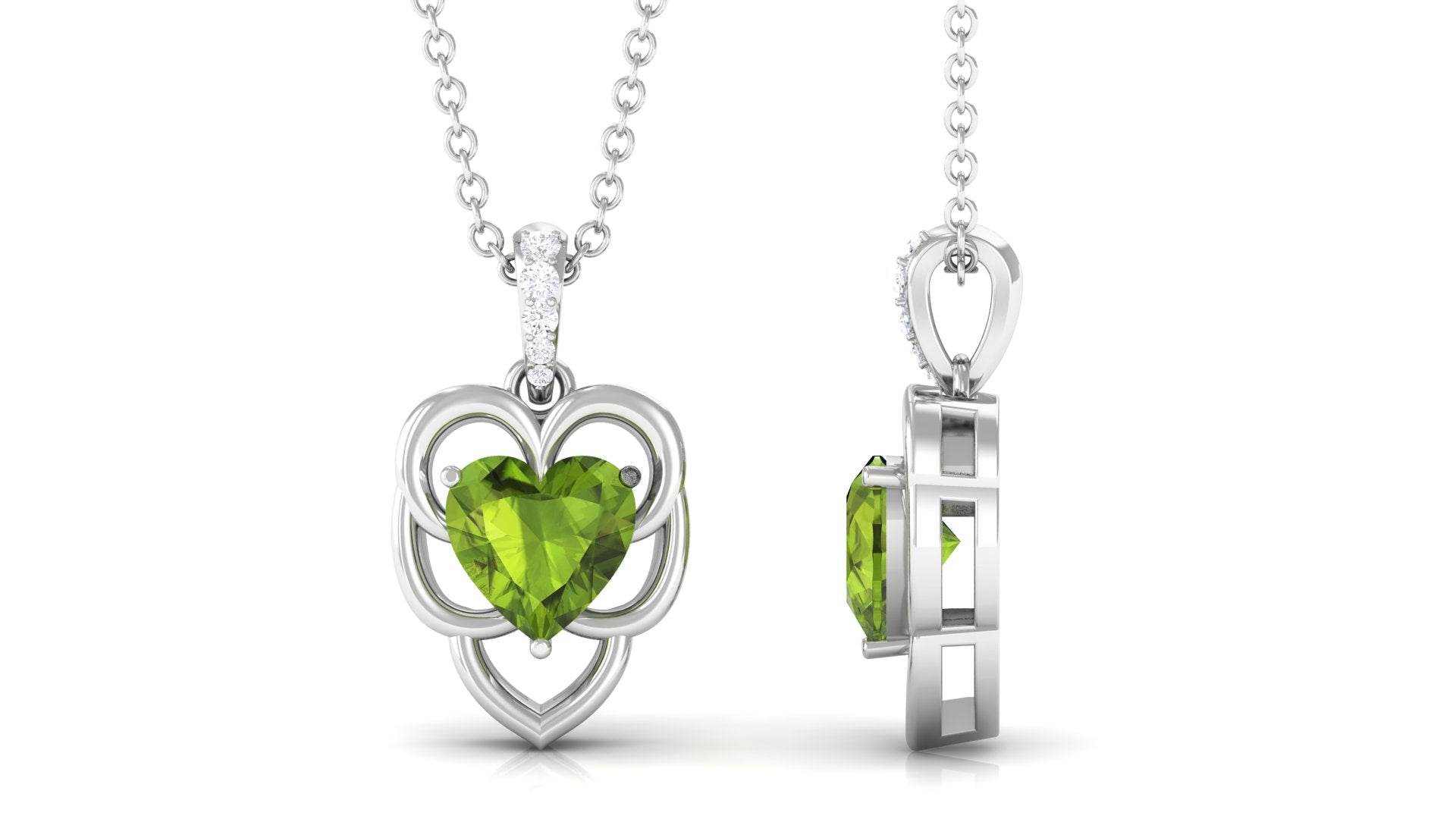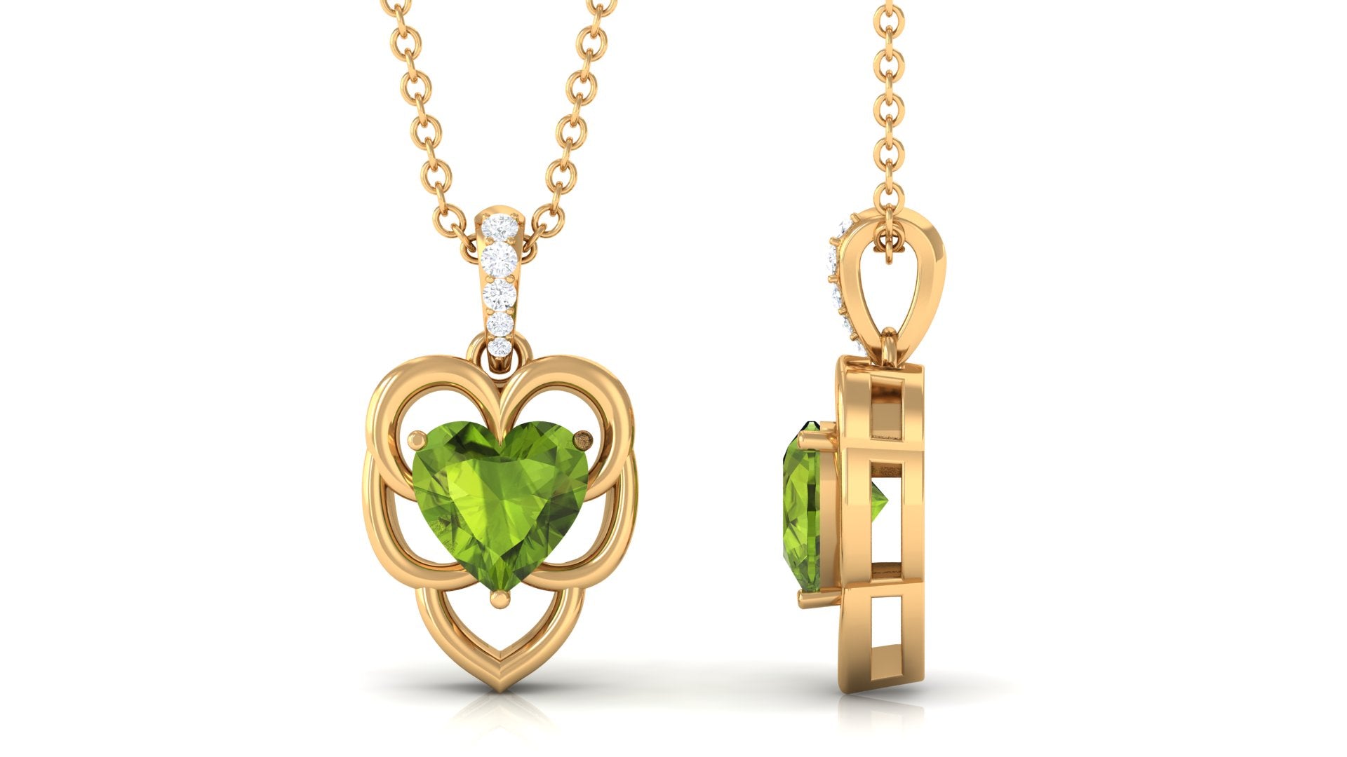 Real Peridot Heart Pendant with Diamond Accent Bail