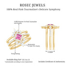 Real Pink tourmaline and Moissanite Trio Wedding Ring Set