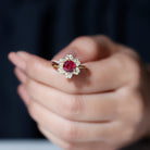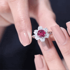 Real Pink Tourmaline Flower Halo Ring with Diamond