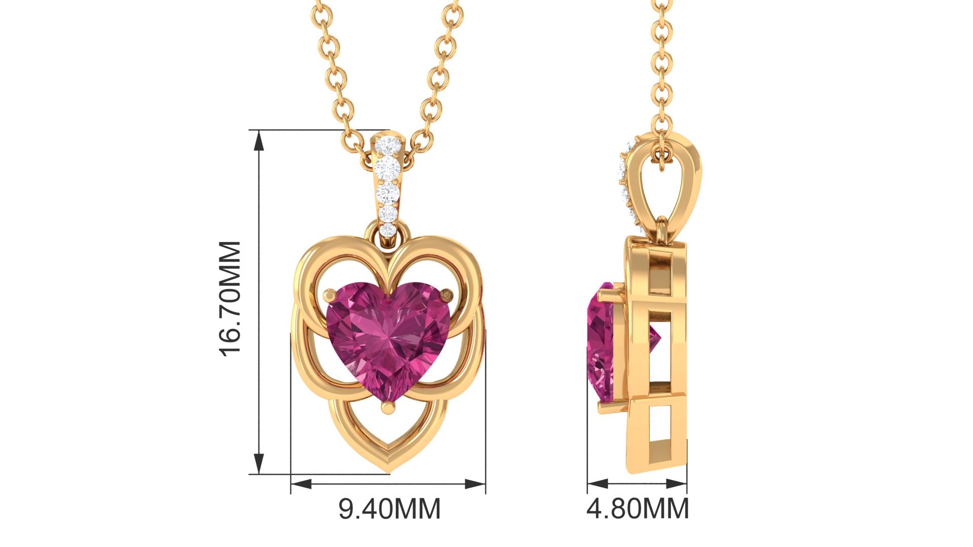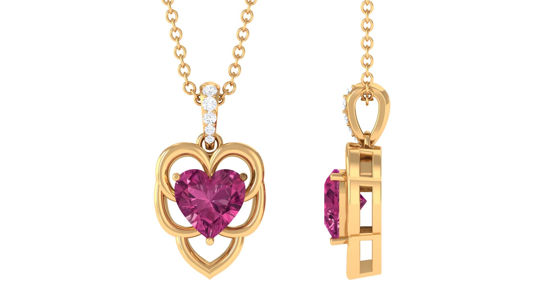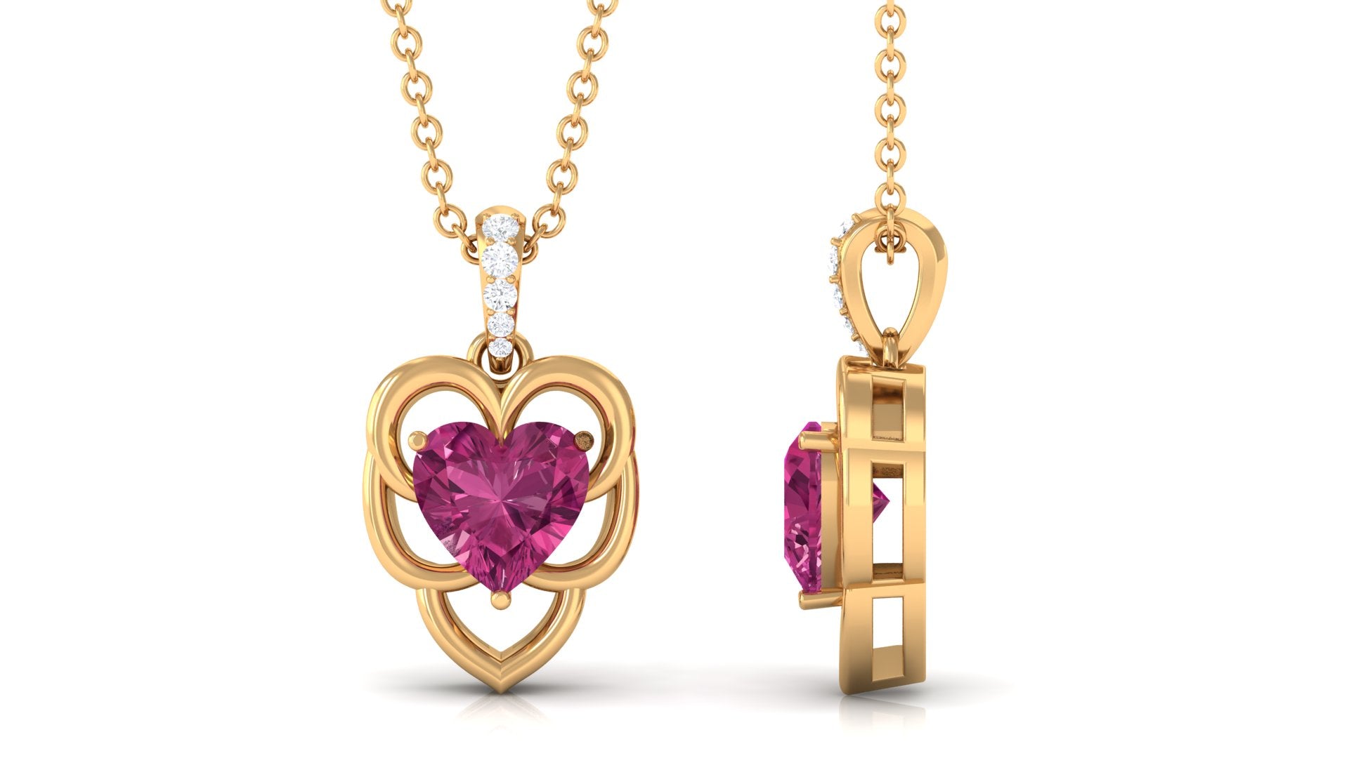 Representing timeless love and eternal togetherness is this heart pendant that features a pink tourmaline in the center set on a metal motif. The delightful hue of the pink tourmaline is accentuated by the unending sparkle of Diamond that embellishes the bale. Exuding a touch of romance, the solitaire pendant makes a great anniversary present for your spouse. Wear it long or short considering your personal style or preference.