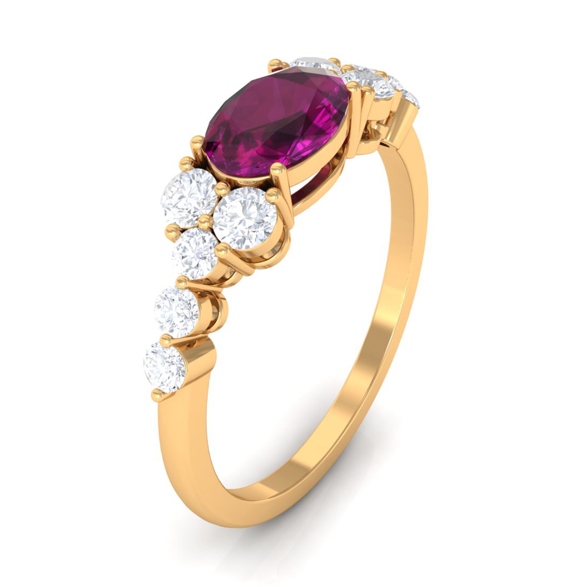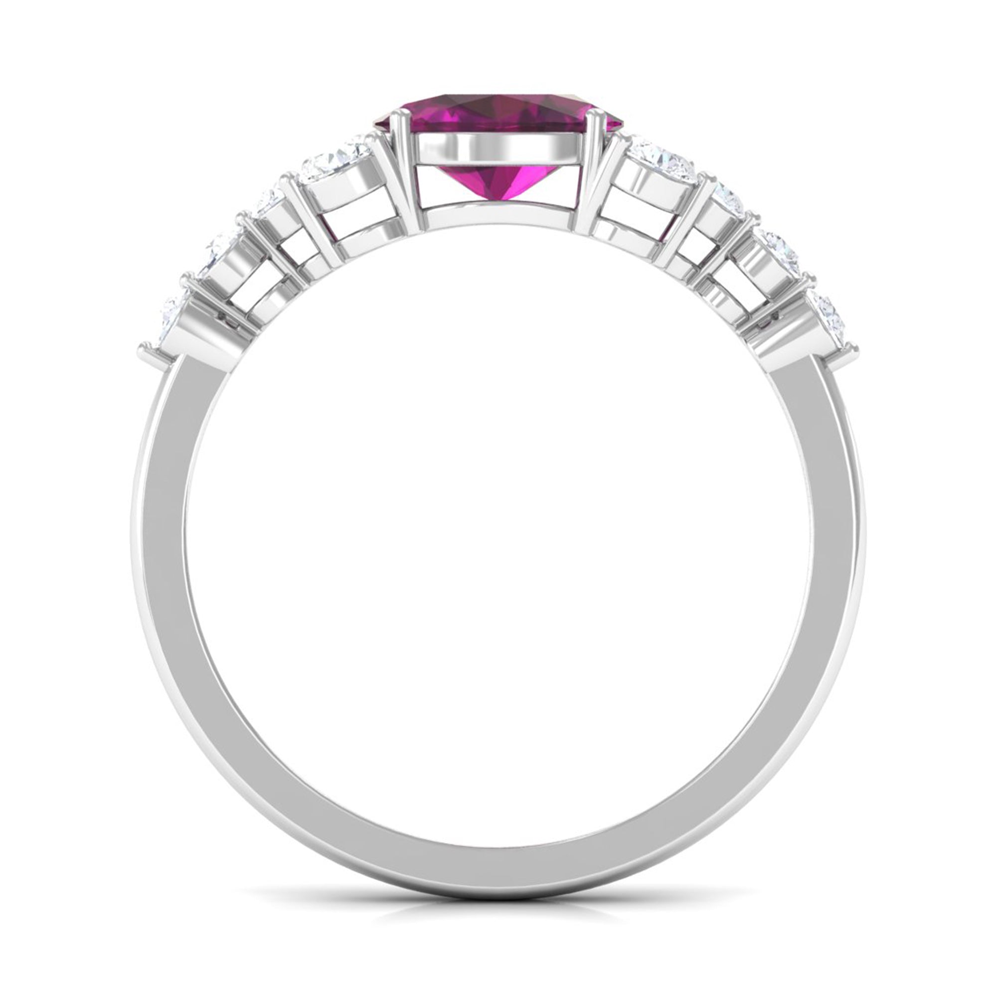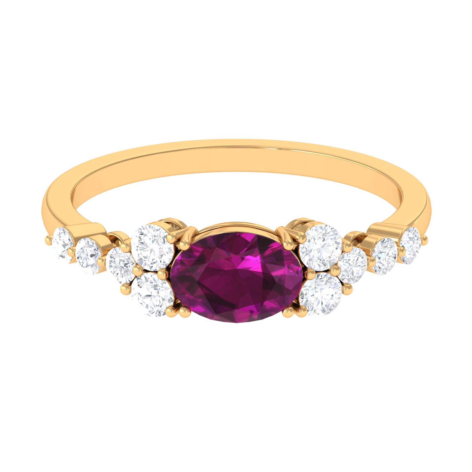 Real Rhodolite Solitaire East West Ring with Diamond Stones