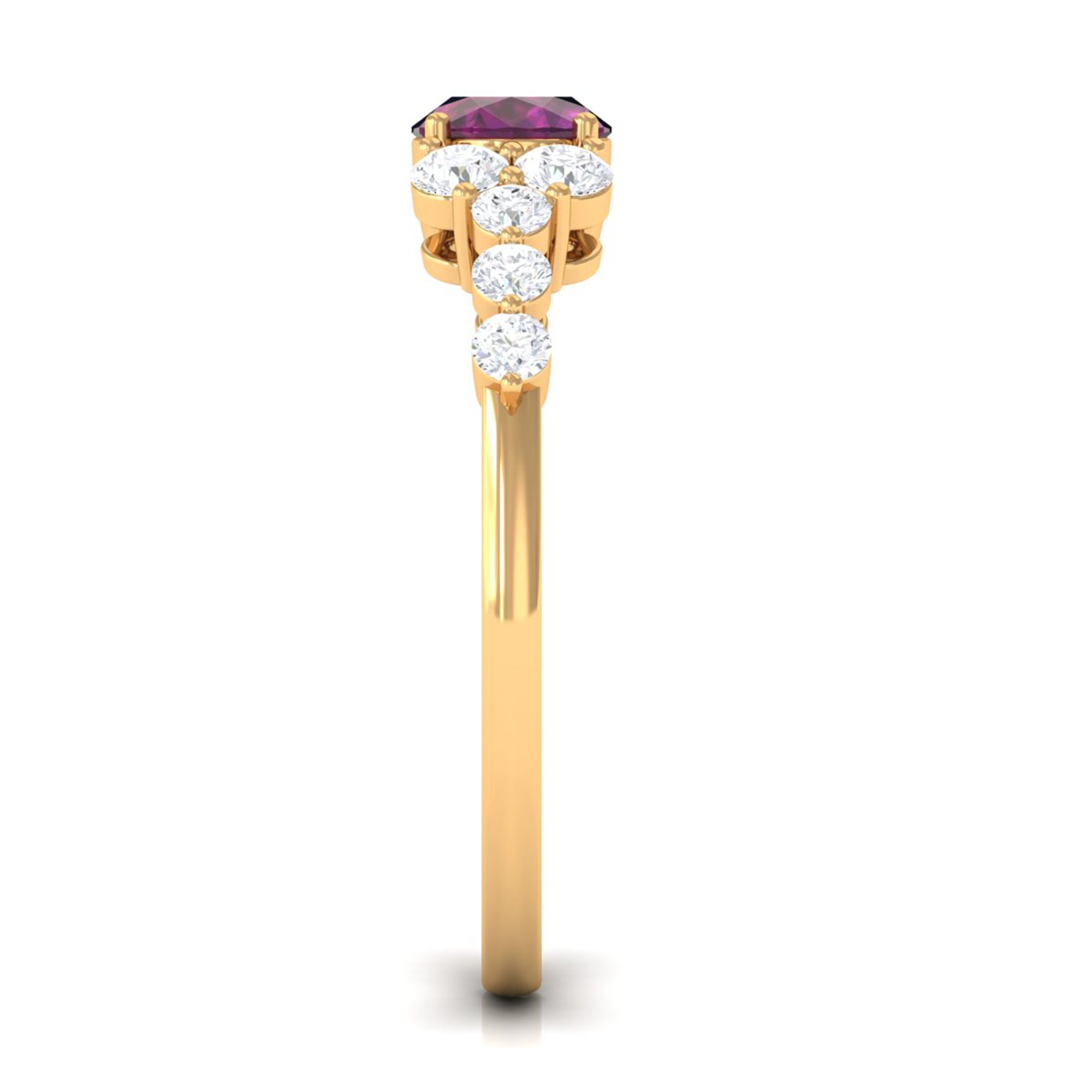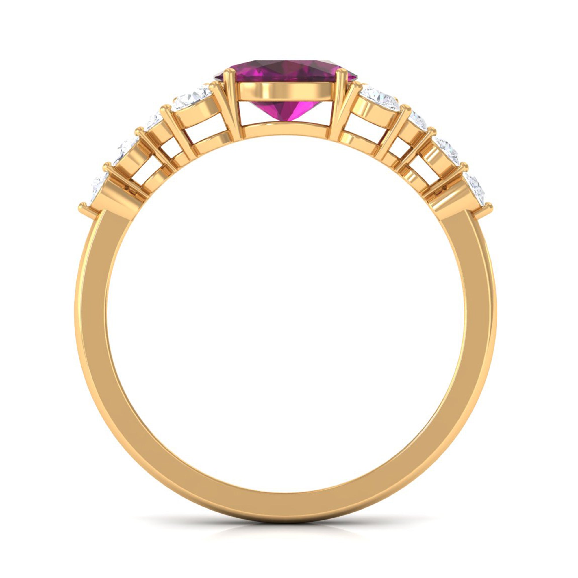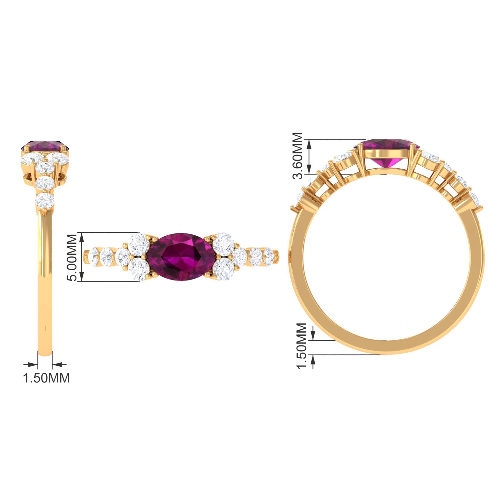 Real Rhodolite Solitaire East West Ring with Diamond Stones