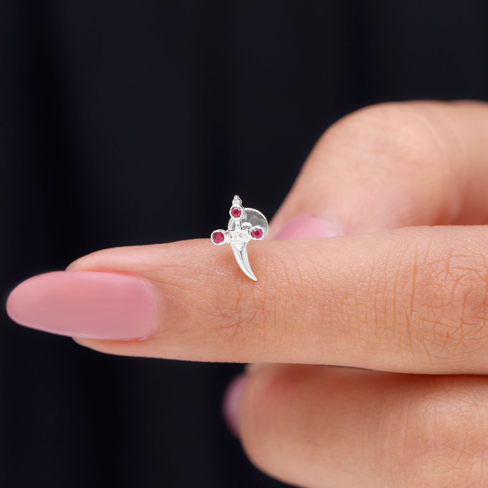 Add a trendy touch to your style with this Sword Earring, featuring sparkling Round Cut Ruby and Diamond. This Cartilage Earring is a perfect accessory for your Helix, Conch, Rook, or Tragus Piercing, and is great for everyday wear. Make a fashion statement with this cute and stylish Body Jewelry.