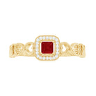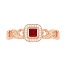 Capture the essence of everlasting memories with the exquisite Infinity Heart Promise Ring. This stunning ring showcases a princess-cut ruby, delicately held in a prong setting and accompanied by shimmering Diamond stones. This designer piece is a captivating and indispensable addition to any jewelry aficionados collection.