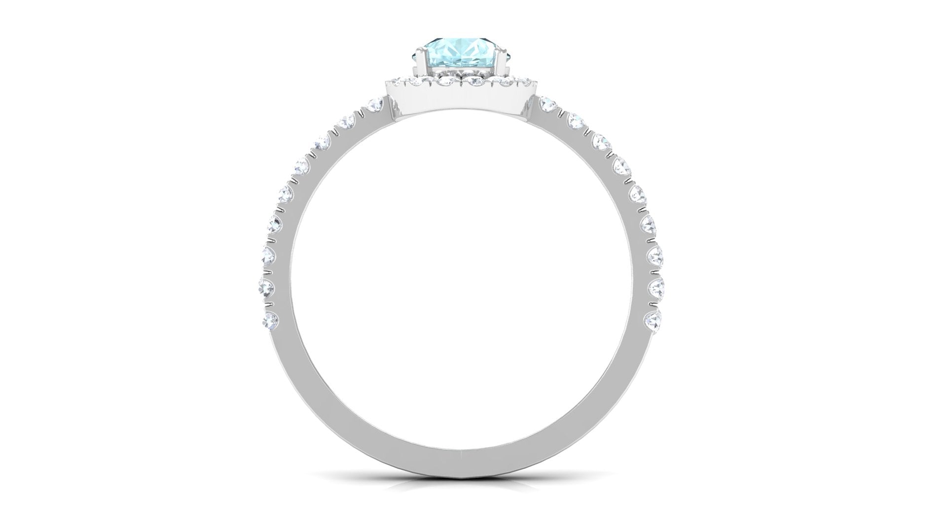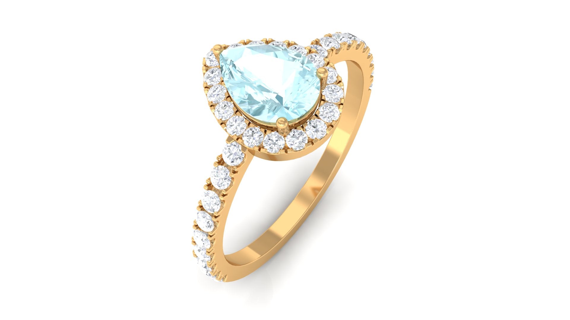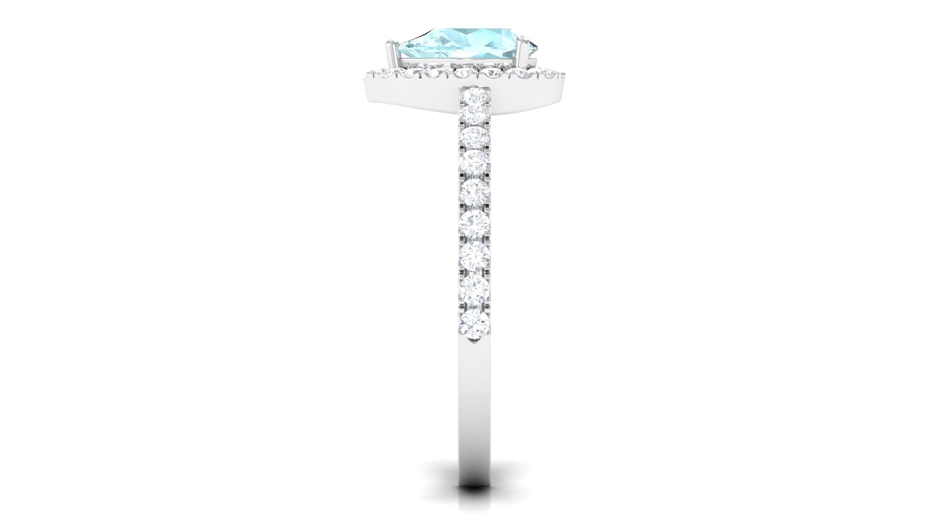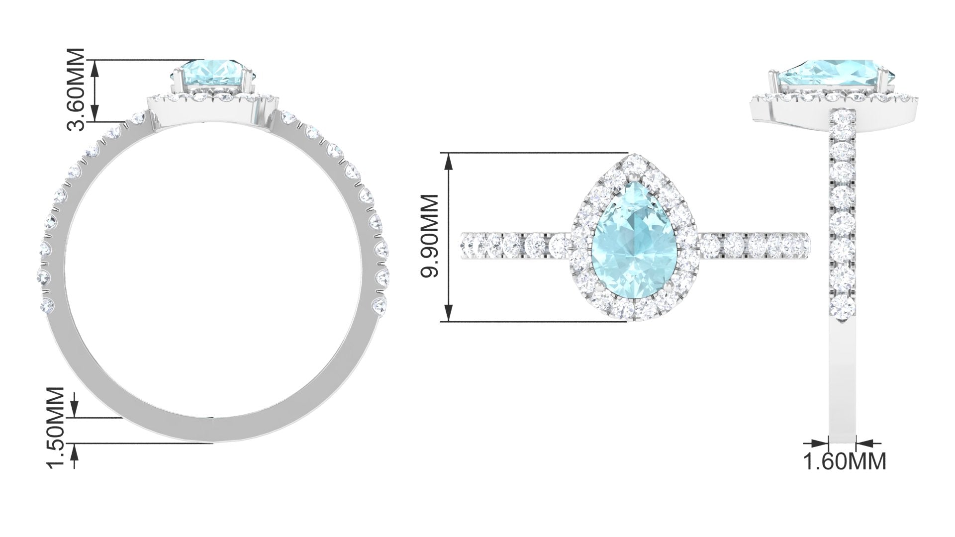 Real Sky Blue Topaz Teardrop Ring with Diamond Halo