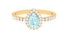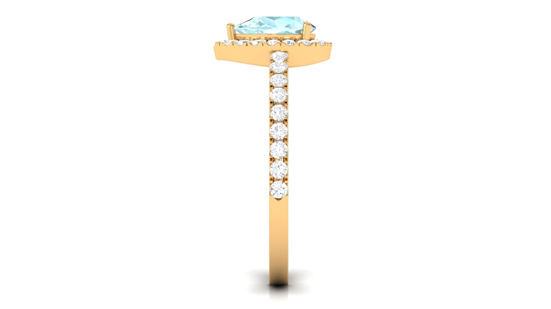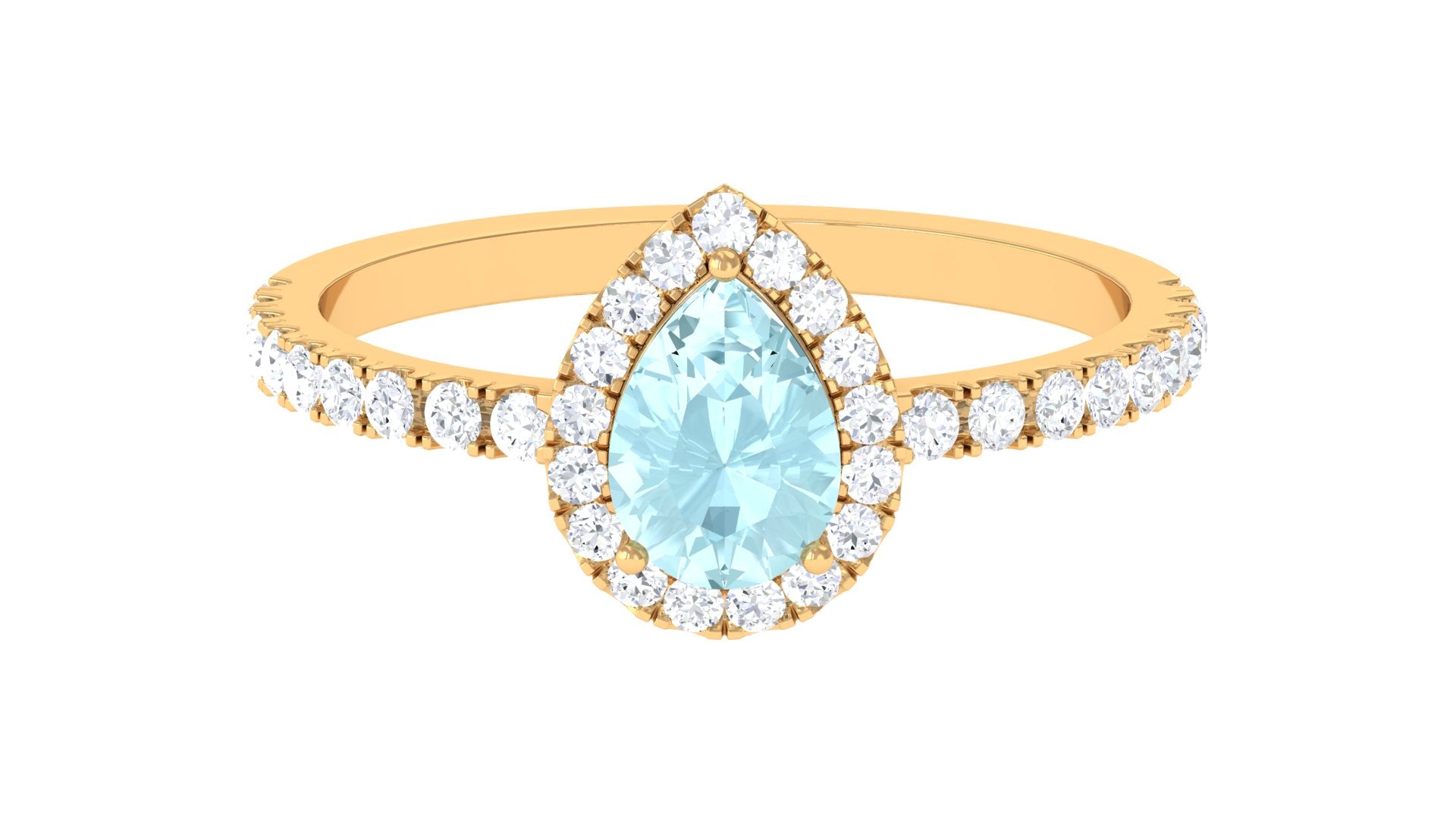 Embrace elegance with a genuine sky blue topaz teardrop ring accented by a mesmerizing Diamond halo, a perfect combination of beauty and grace.